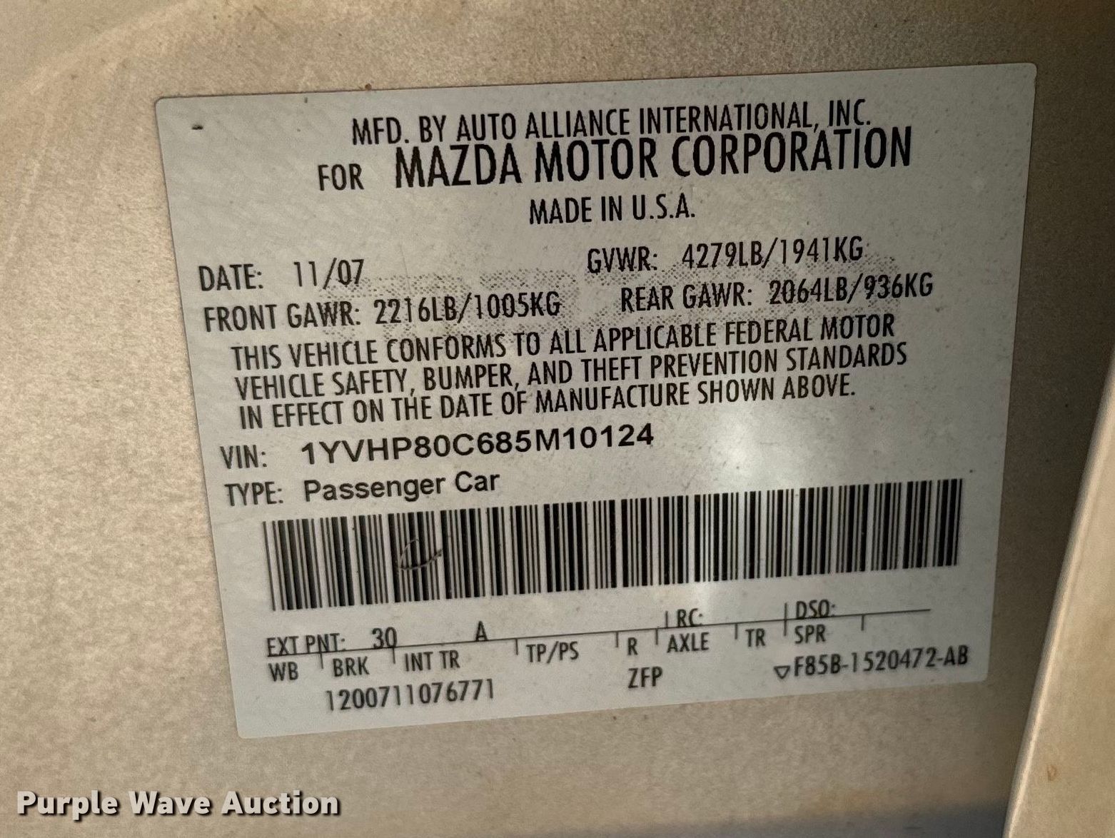 Purple Wave is selling a used Passenger Vehicle in Texas. This item is a 2008 Mazda Mazda 6 with the following: Miles: 239,449 on odometer, VIN: 1YVHP80C685M10124