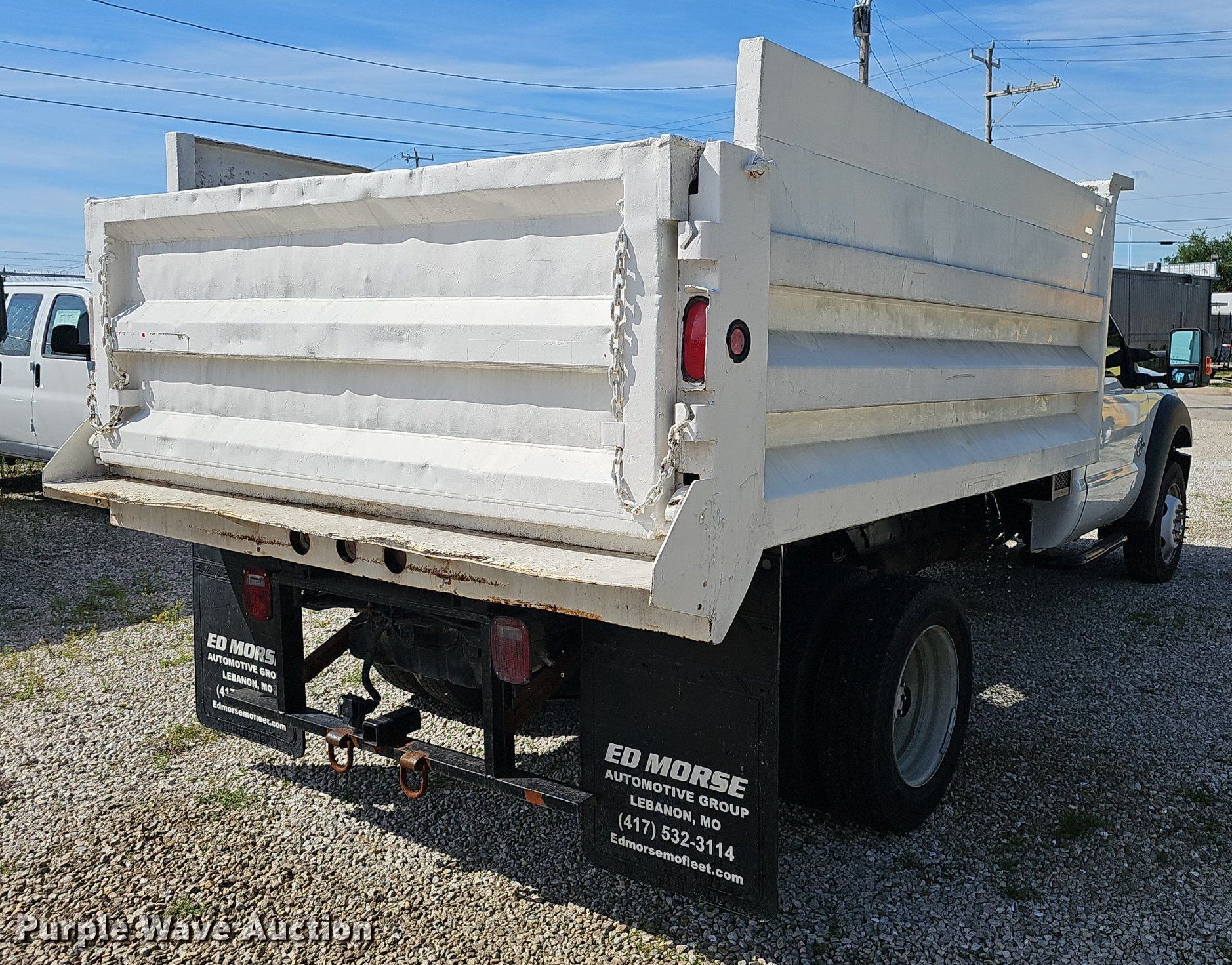 2014 Ford F550 Super Duty dump truck. Miles: 130,118 on odometer, VIN: 1FDUF5GT6EEA18134. Engine Displacement: 6.7L V8 OHV, Cylinders: 8, Fuel type: Diesel. Transmission Automatic. Chassis Axles: Single, Suspension: Spring, Brakes: Hydraulic. Interior AC, Heat, Heated mirrors, Power windows, Power locks, Cruise control. Features Dump bed 10' 2" L x 96" W, Side height: 28", Side board height: 15", Bed type: Steel, Ram: Single, End gate: Manual. Tires Size: 225/70R19.5. Missouri title. Seller is a Missouri licensed motor vehicle dealer. Title will be assigned and distributed by the dealer. Please contact the seller for distribution questions. Ed Morse Chevy Ford. Lebanon, MO 65536