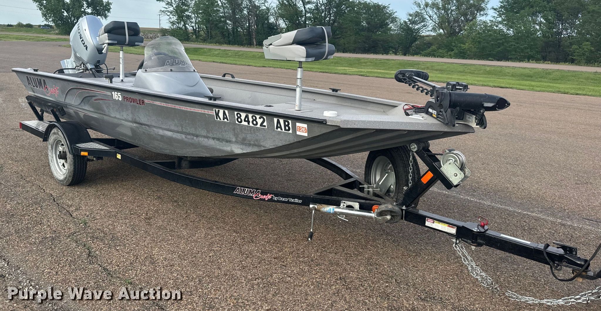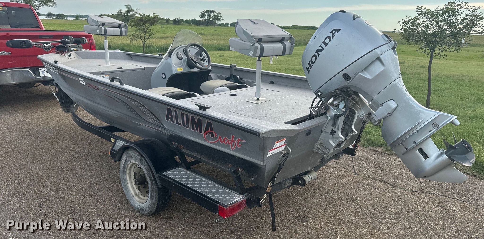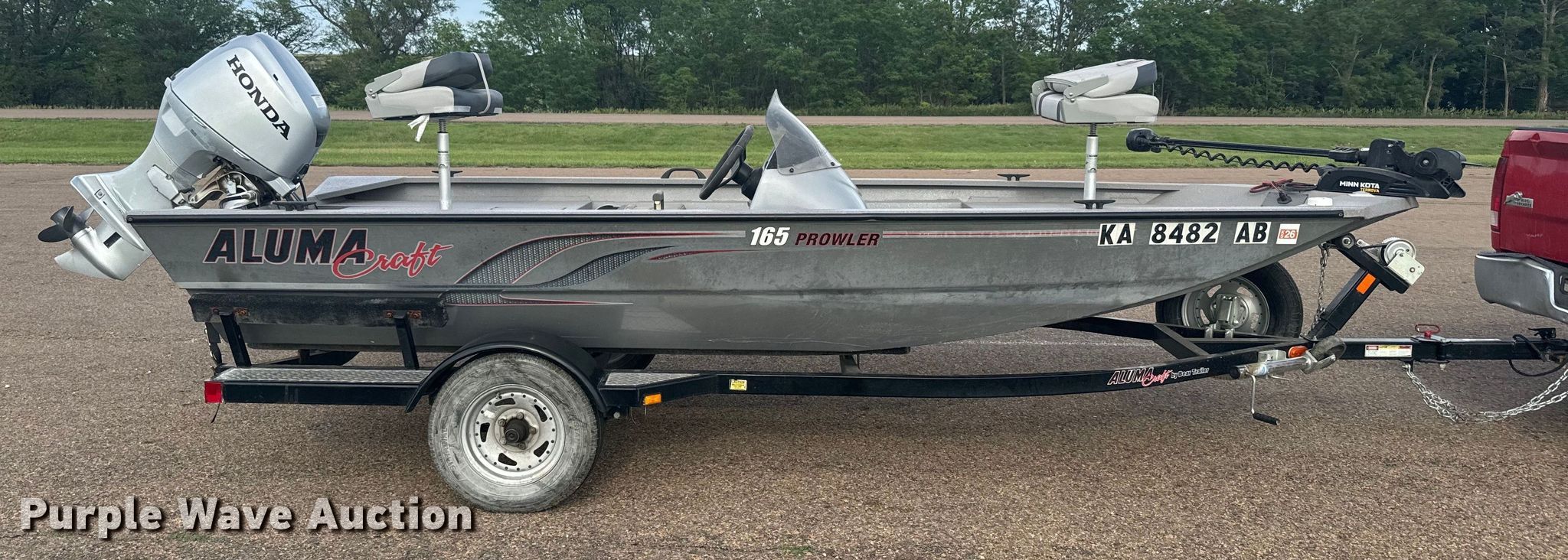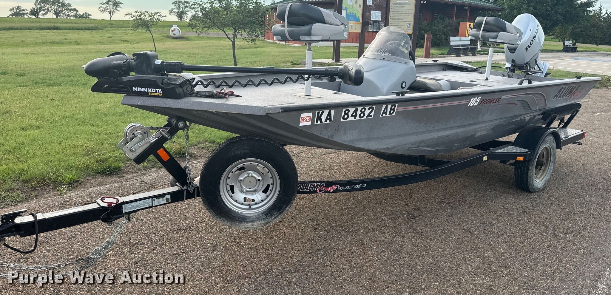 2016 Aluma Craft 165 Prowler boat. Hours: Unknown, Length: 16' 3", Hull ID: ACBW7782F616. Engine Engine type: Outboard, Honda, Fuel type: Gas, HP: 40, Outdrive Propeller: Aluminum. Operators station Capacity Person: 4, 510 lbs. Features Trolling motor: Minn Kota Terrova I-pilot. Trailer 2016 Bear Trailers, VIN: 41YAB1811G1065369, GVWR: 2,000 lbs, Ball hitch size: 2", Axles: Single, Tire size: ST175/80R13. Boat: Idaho title. Trailer: Transfer of ownership of the boat trailer will be a bill of sale. Glen Elder, KS 67446