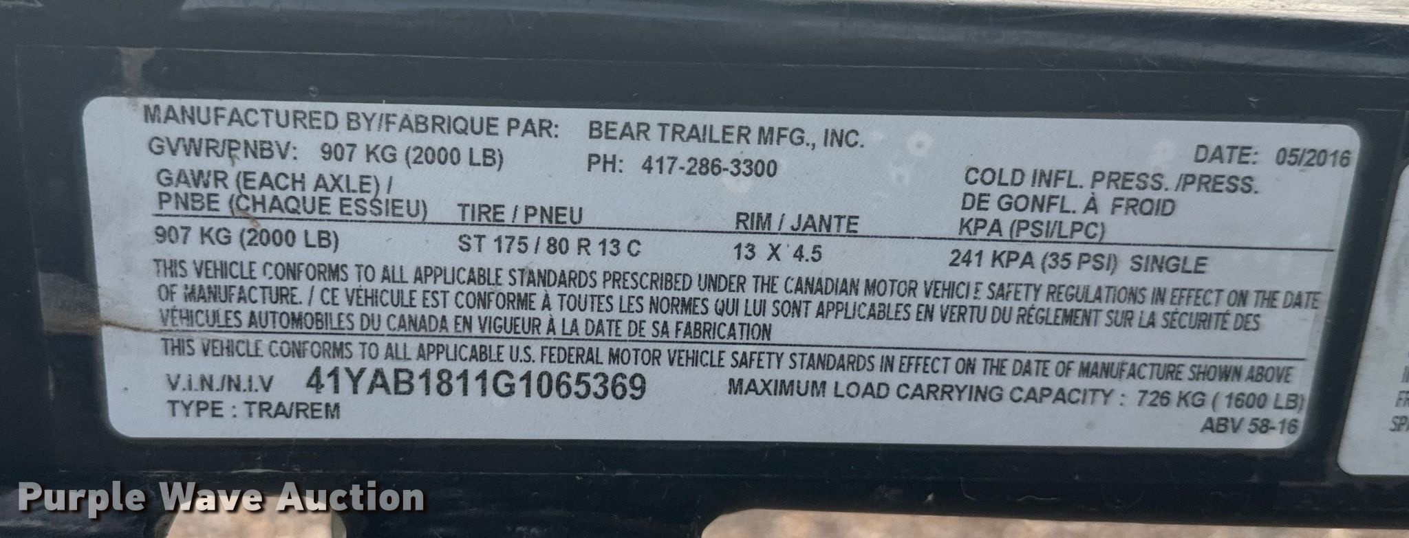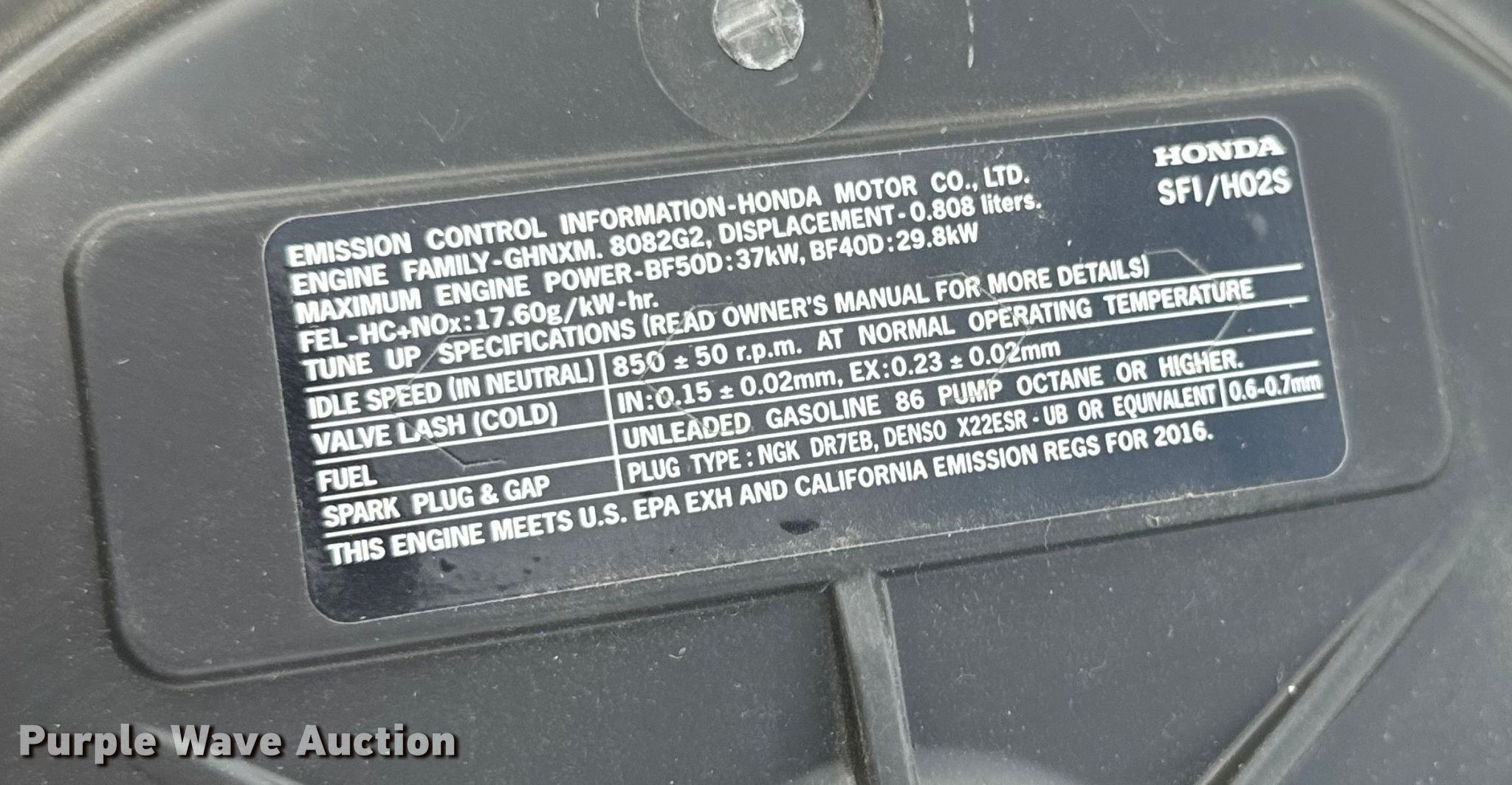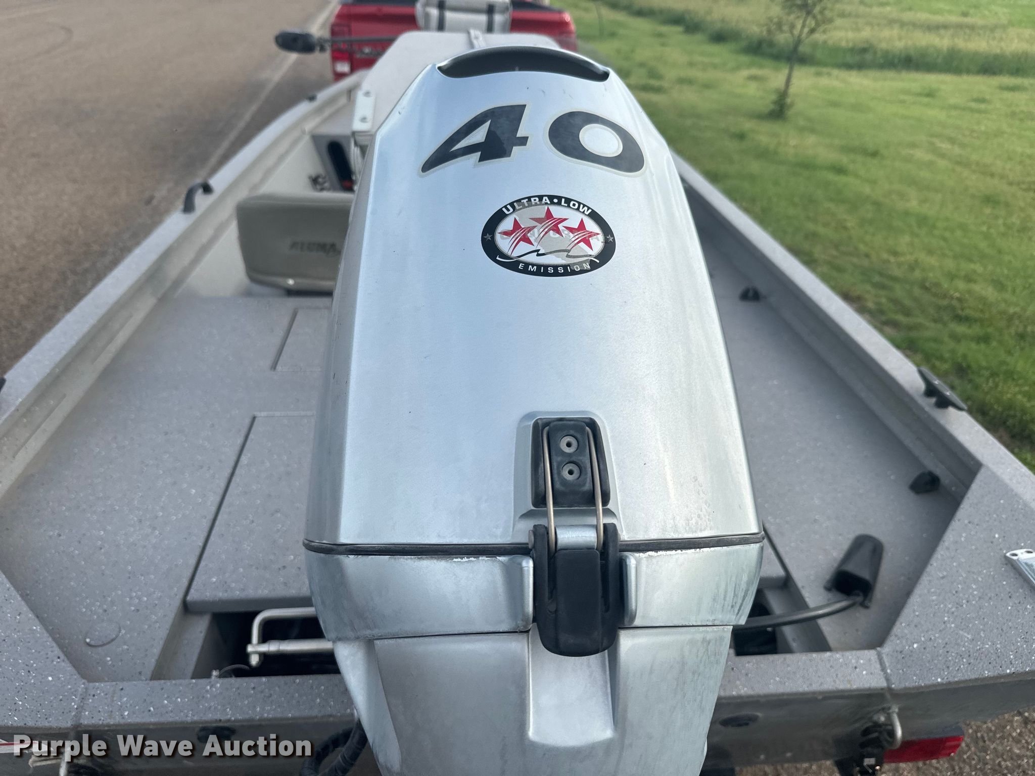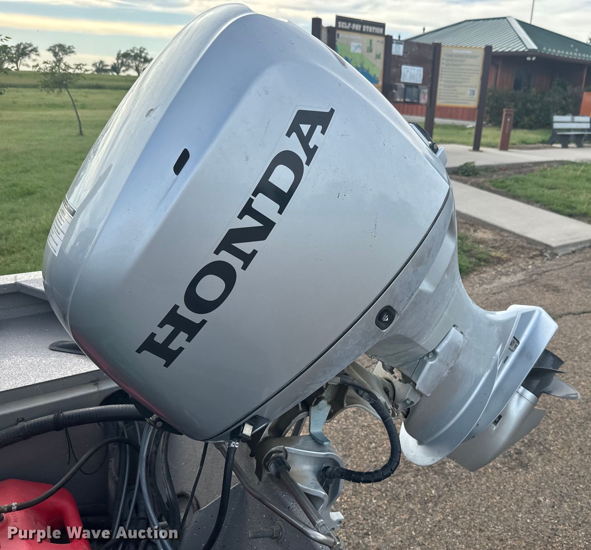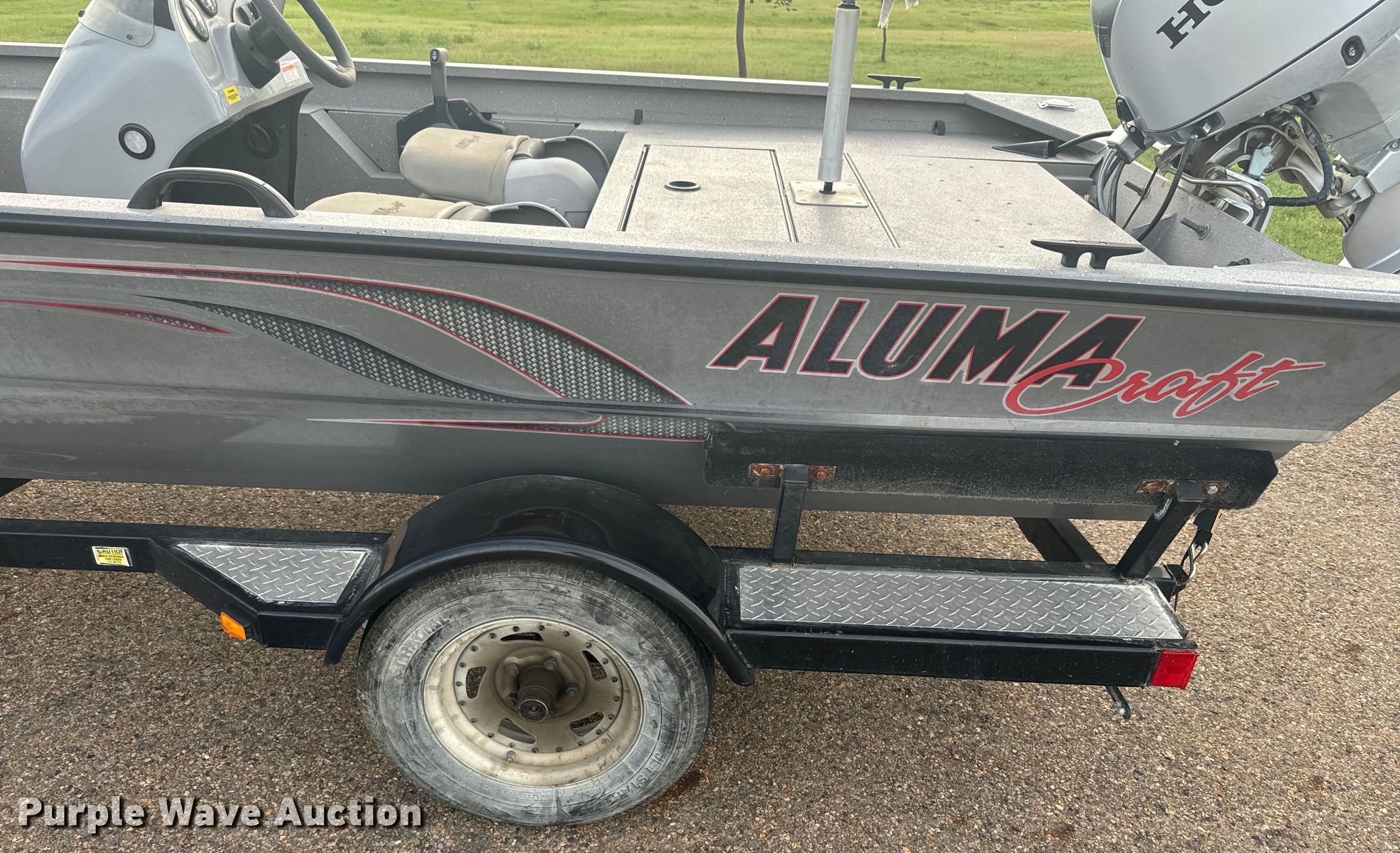 2016 Aluma Craft 165 Prowler boat. Hours: Unknown, Length: 16' 3", Hull ID: ACBW7782F616. Engine Engine type: Outboard, Honda, Fuel type: Gas, HP: 40, Outdrive Propeller: Aluminum. Operators station Capacity Person: 4, 510 lbs. Features Trolling motor: Minn Kota Terrova I-pilot. Trailer 2016 Bear Trailers, VIN: 41YAB1811G1065369, GVWR: 2,000 lbs, Ball hitch size: 2", Axles: Single, Tire size: ST175/80R13. Boat: Idaho title. Trailer: Transfer of ownership of the boat trailer will be a bill of sale. Glen Elder, KS 67446