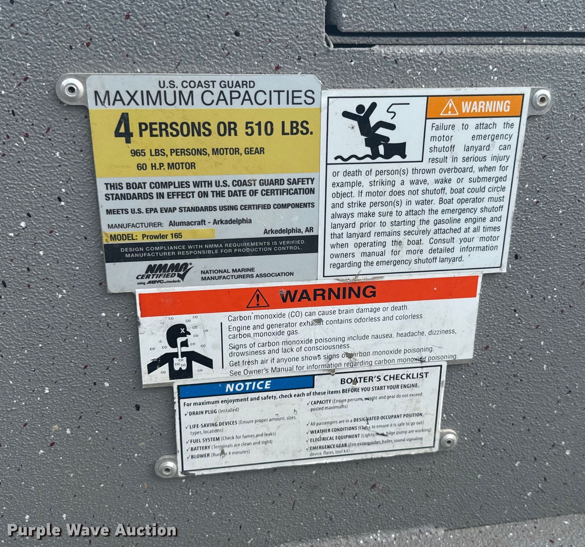 Purple Wave is selling a used Boat in Kansas. This item is a 2016 Aluma Craft 165 Prowler boat with the following: Hours: Unknown, Length: 16' 3", Hull ID: ACBW7782F616