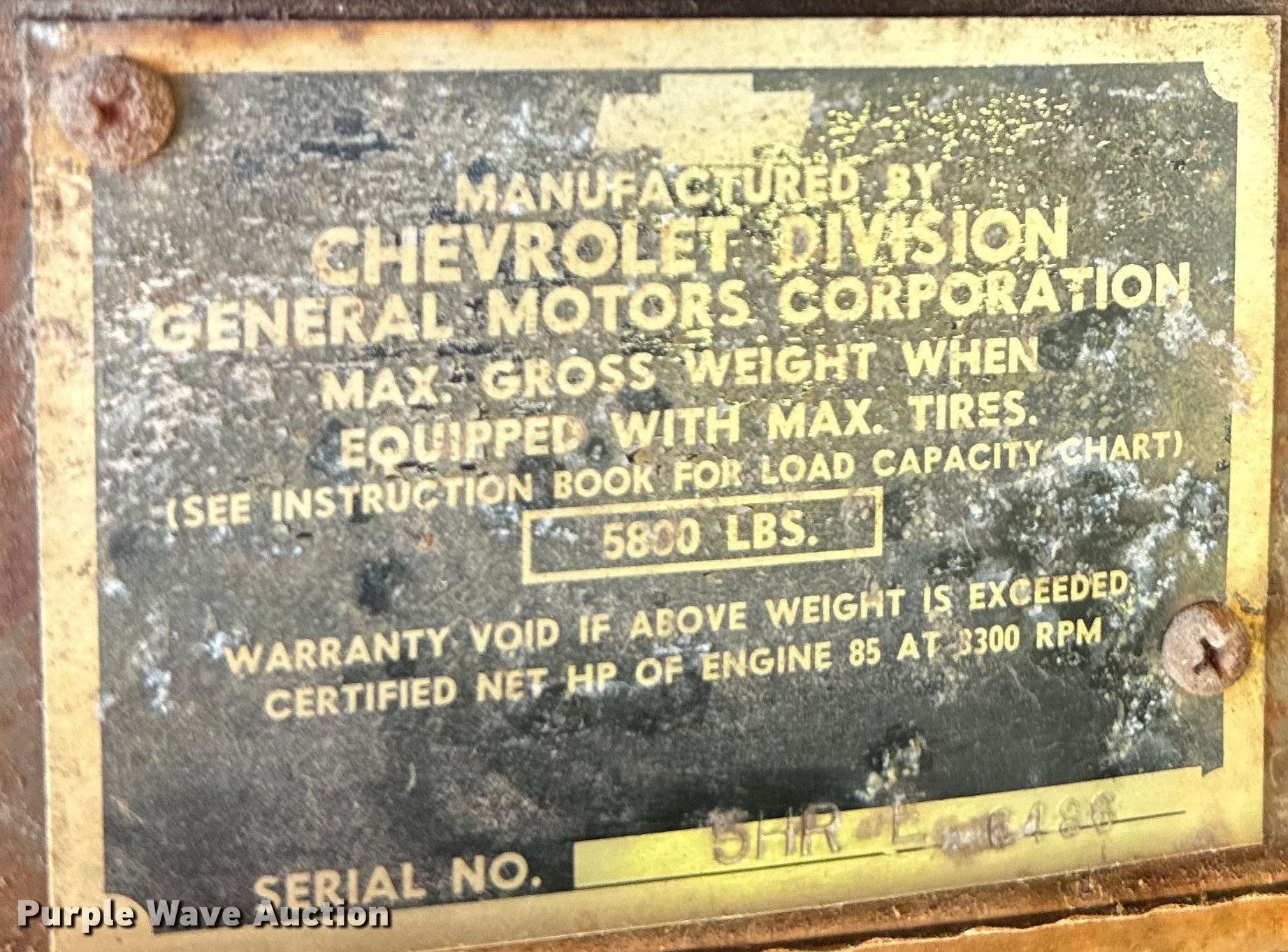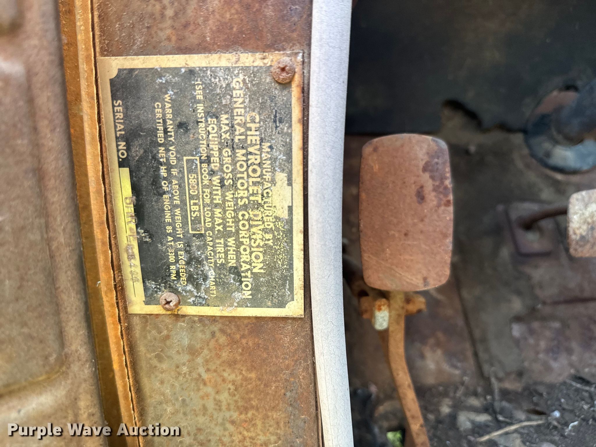Purple Wave is selling a used 3/4 or 1 Ton Pickup or Van in Kansas. This item is a 1950 Chevrolet 3600 pickup truck with the following: VIN: 5HRL6486