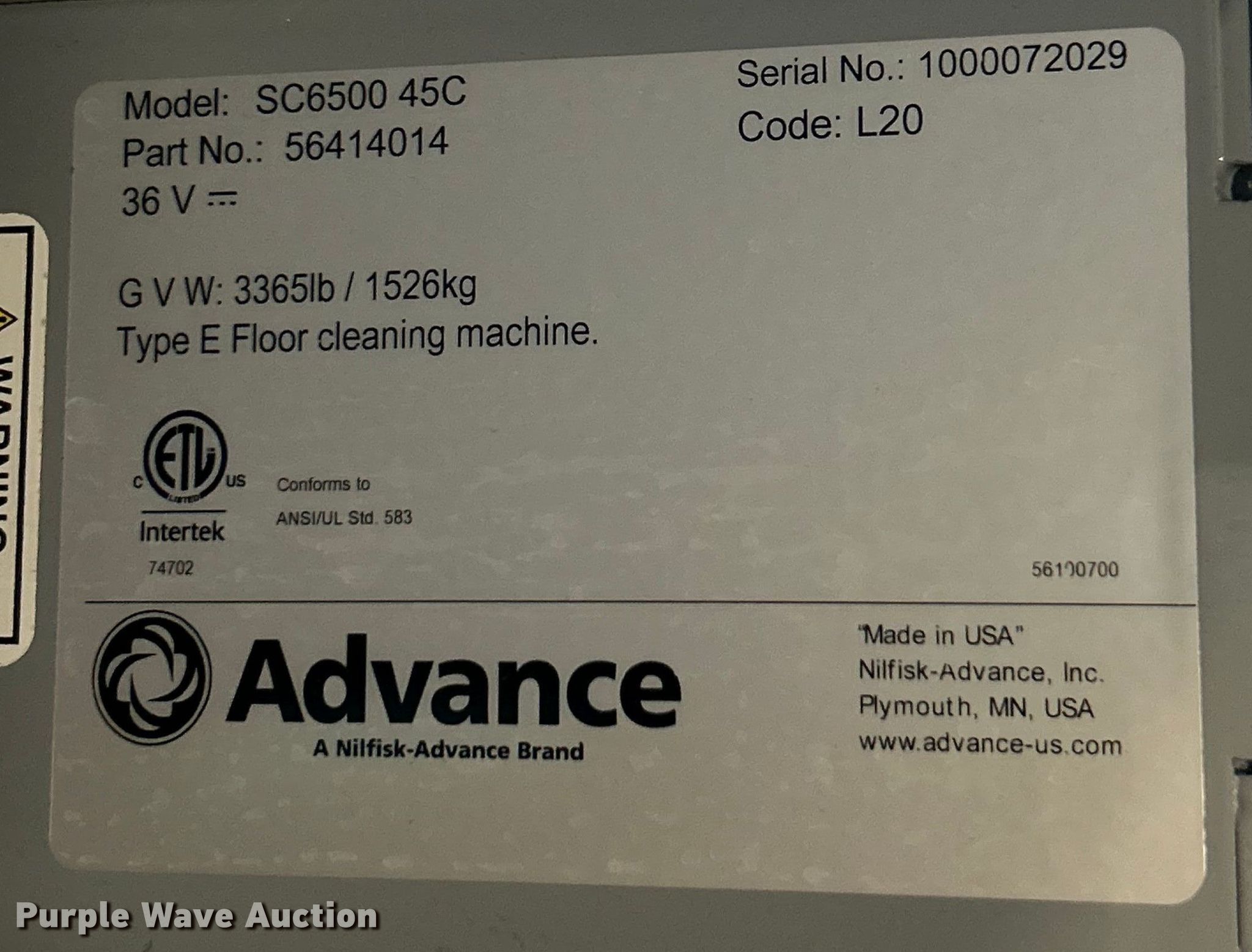 Advance SC6500 45C floor scrubber | SOLD! July 10 Vehicles and Equipment Auction