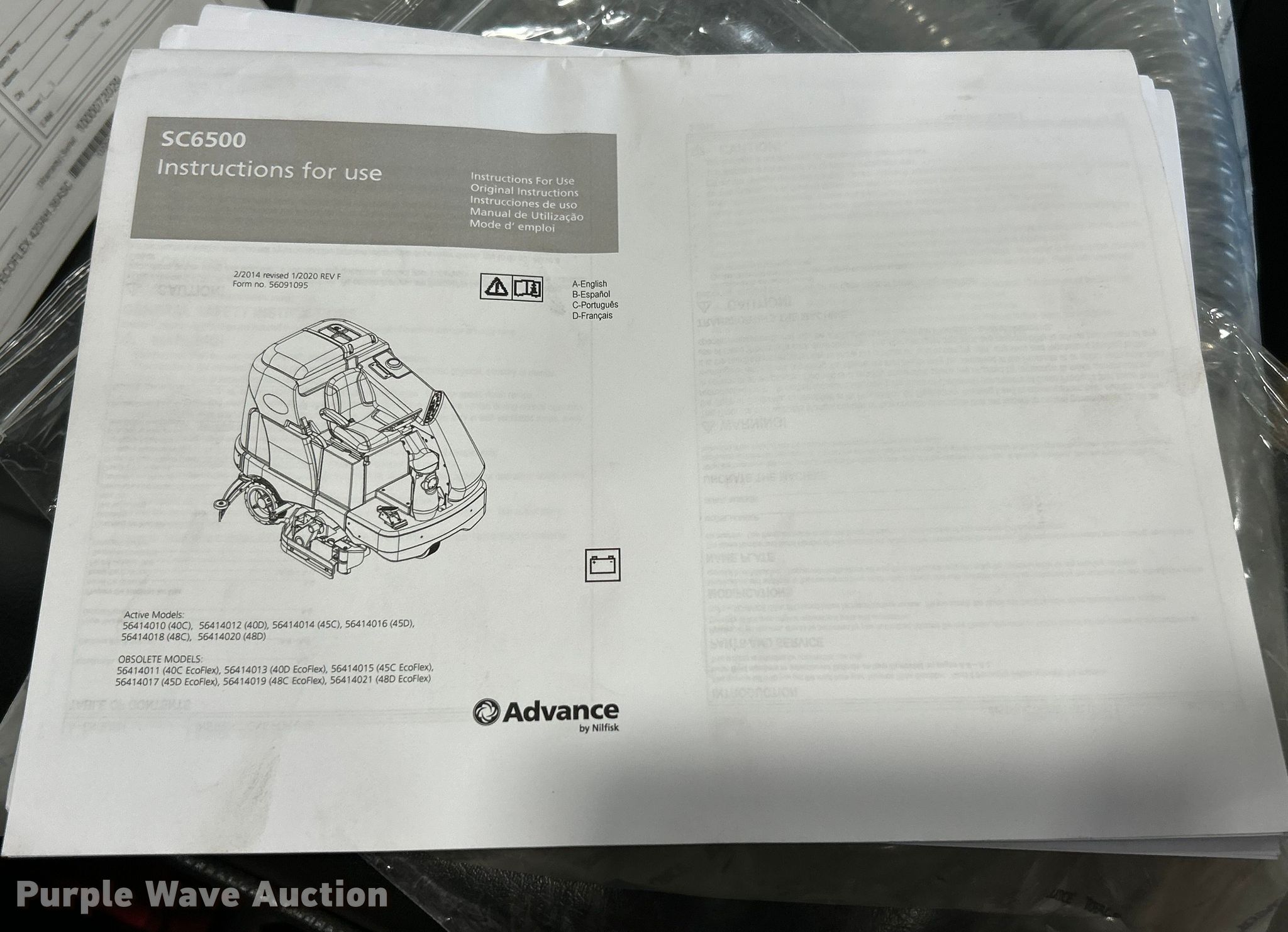 Advance SC6500 45C floor scrubber. Hours: 51 on meter, Width: 48", Volts: 36, Tires: Solid, Manual, Additional hose, Serial: 1000072029. Bridgeton, MO 63044