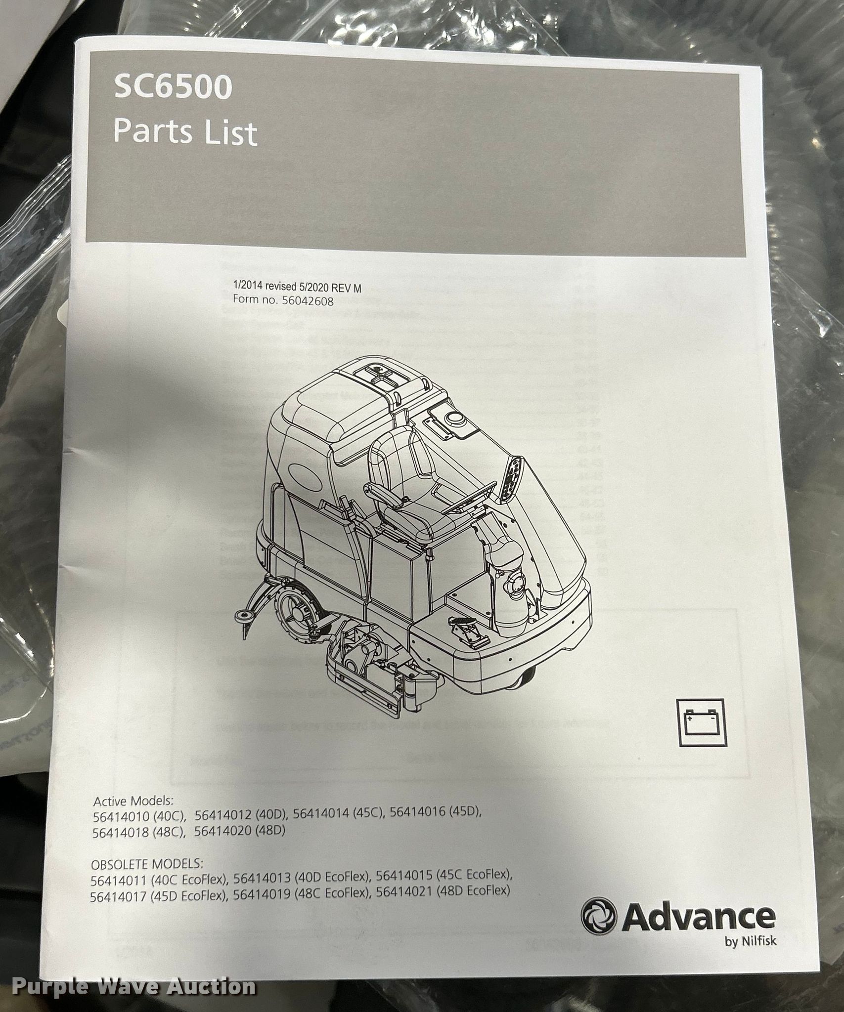 Purple Wave is selling a used All Other Household Items in Missouri. This item is a Advance SC6500 45C floor scrubber with the following: Hours: 51 on meter, Width: 48", Volts: 36, Tires: Solid, Manual, Additional hose, Serial: 1000072029