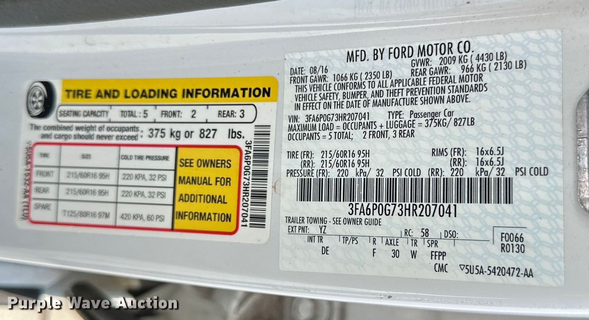 • VIN: 3FA6P0G73HR207041