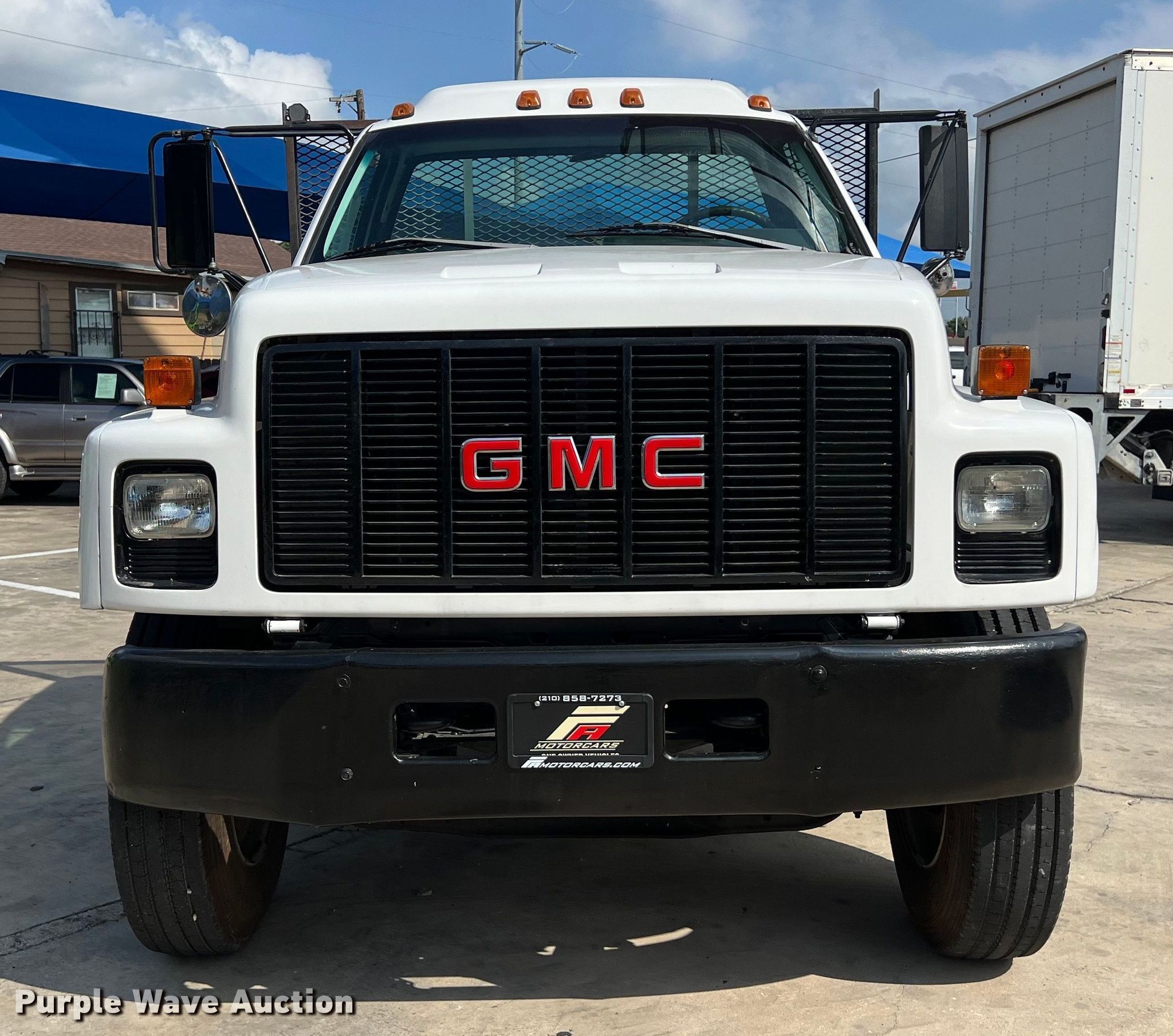 1996 GMC TopKick flatbed truck. Miles: 272,547 on odometer, VIN: 1GDMZH1J4TJ501647. Engine Caterpillar 3116, Serial: 9GK34982, Displacement: 6.6L, Cylinders: 6, Fuel type: Diesel, kW: 171.5. Transmission Manual, Speed: 6. Chassis Axles: Single, Suspension: Spring, Brakes: Air. Interior AC, Heat. Features Flatbed 15' 4" L x 8' W. Tires Size: 11R22.5. Notes Windshield chipped or cracked. Texas title. Seller is a Texas licensed motor vehicle dealer. The buyer may be required to pay sales tax and/or registration fees to the dealer prior to taking possession. Title will be assigned and distributed by the dealer. Please contact the seller for distribution questions. Title distribution may be delayed up to 30 days from verification of funds. FA Motorcars (DBA). 5400 Ih 10 W. San Antonio, TX 78201