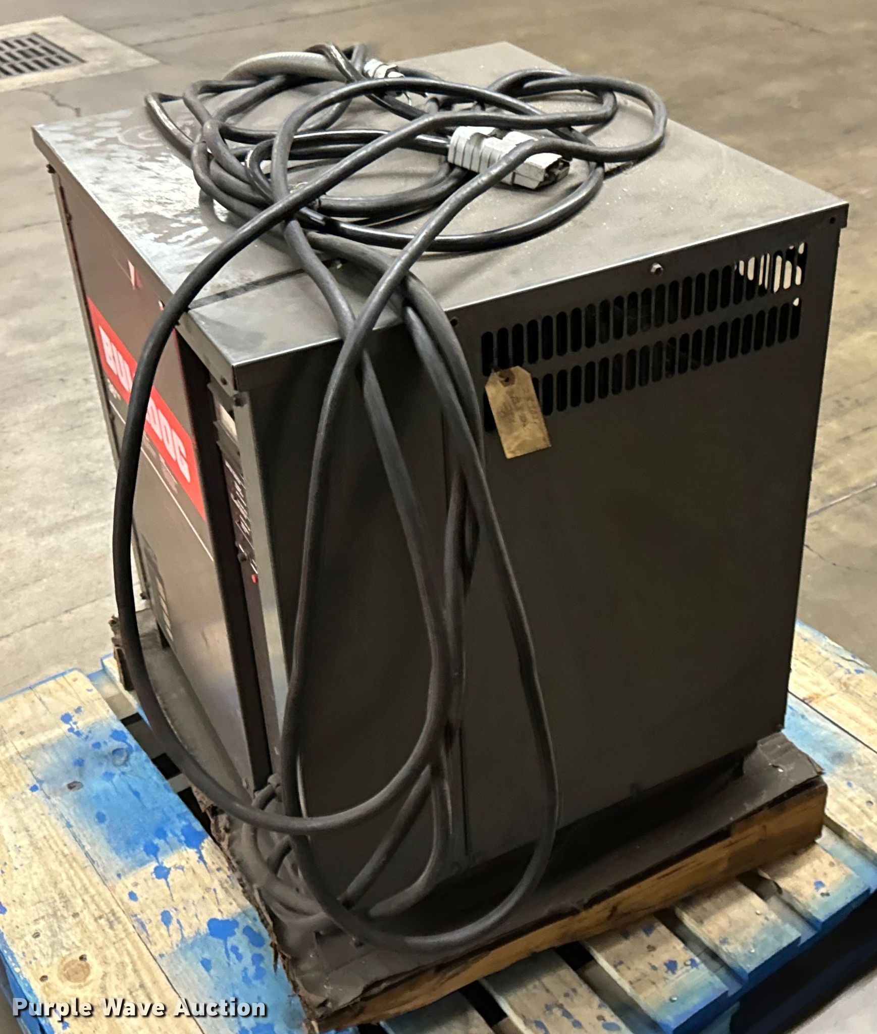 Toyota 7FBCU25 Forklift. Hours: Unknown. Electric Motor Volts: 36, Charger: Three phase. Transmission Powershift. Features Maximum lift capacity: 4,800 lbs, Maximum lift height: 131.5", Mast stages: 2, Side shift, Mast tilt, Fork length: 40", Bulldog 18M875C22 charger Volts: 36 208V/240V/480V.. Tires Front: 21x7x15, Rear: 16x6x10.5, Solid. Notes Batteries weak, Unknown operating condition of hour meter. Crown Distributors LLC. Salina, KS 67401