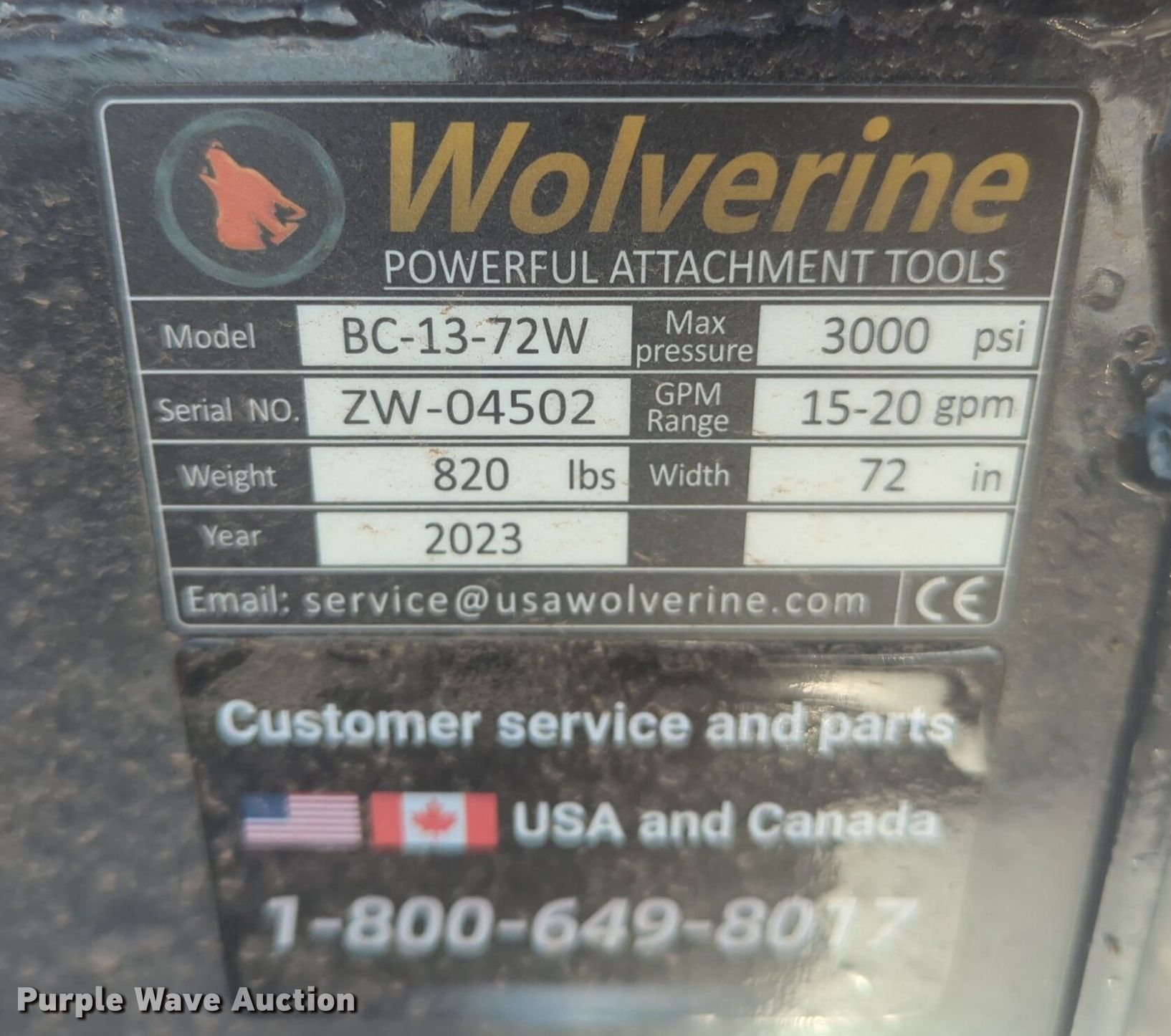 Purple Wave is selling a used Skid Steer Attach. in Oklahoma. This item is a 2023 Wolverine BC-13-72W skid steer rotary mower with the following: Serial: ZW-04502, Width: 72"