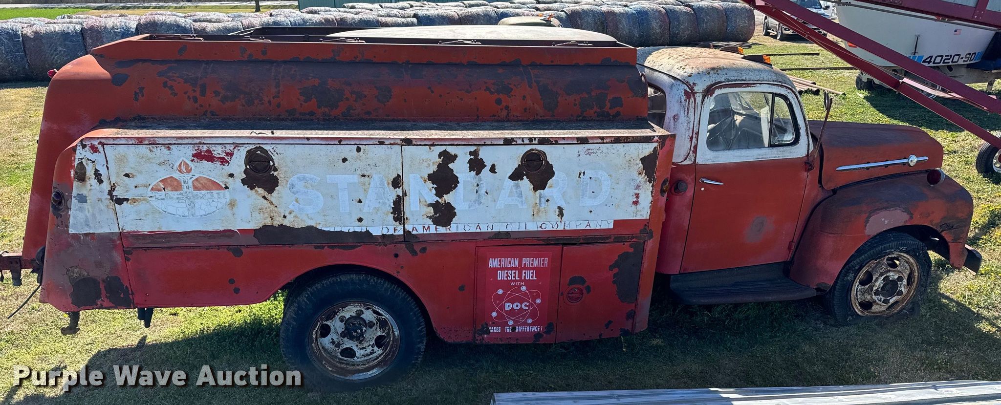 Purple Wave is selling a used Fuel Truck in Kansas. This item is a 1952 Ford F-6 fuel truck with the following: Miles: 57,184 on odometer, VIN: F6R2SP16201
