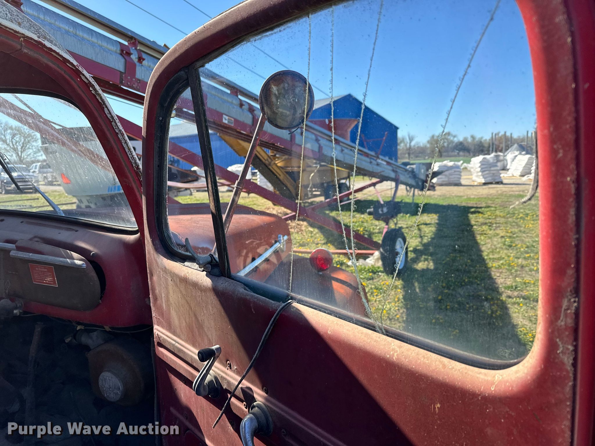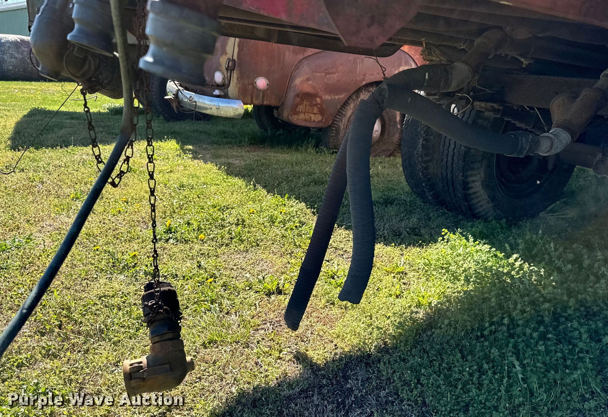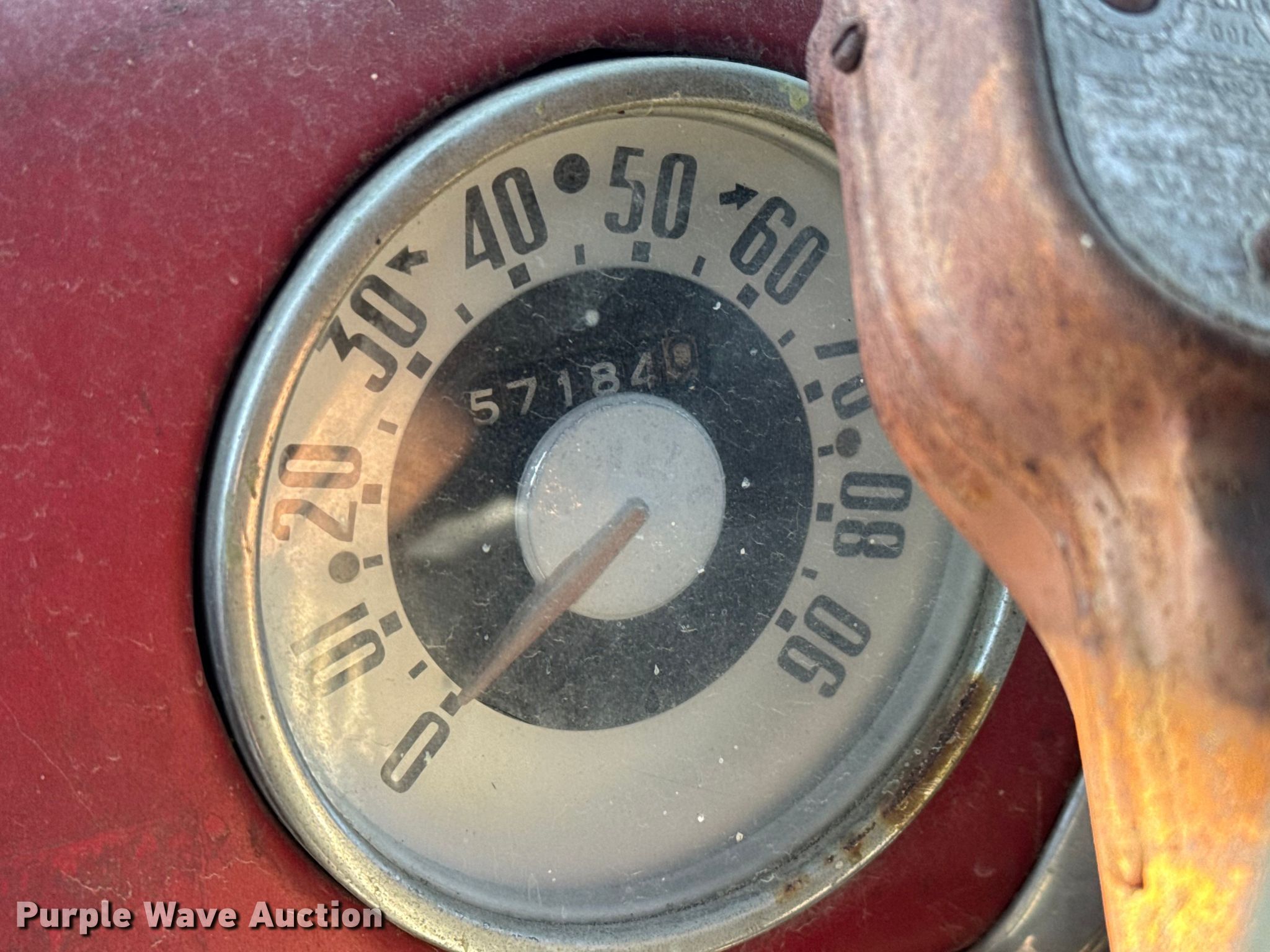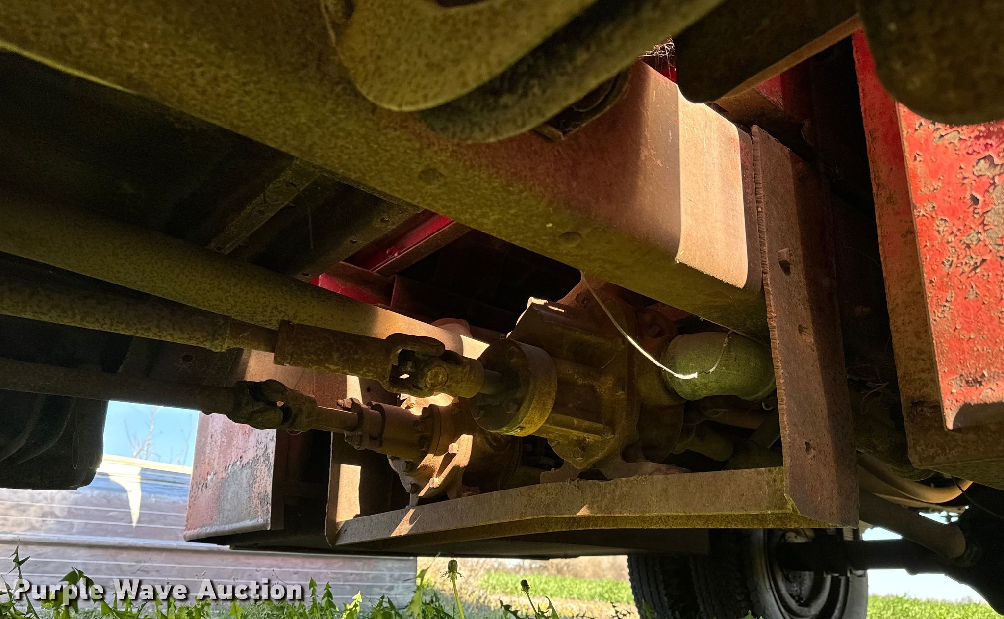 1952 Ford F-6 fuel truck. Miles: 57,184 on odometer, VIN: F6R2SP16201. Engine Cylinders: 8, Fuel type: Gas. Transmission Manual. Chassis Axles: Single, Suspension: Spring, Brakes: Hydraulic, PTO. Features Bed / tank 14' L x 90" W, Hose reels: 2, Nozzles, Metered pumps: 2 Make: Neptune.. Tires Size: 8.25-20. Notes Unit must be towed or hauled, Tires damaged, Tires flat, Glass missing, Glass cracked, Bed door issues, will not open, Non-operational unit. Kansas antique title. Halstead, KS 67056