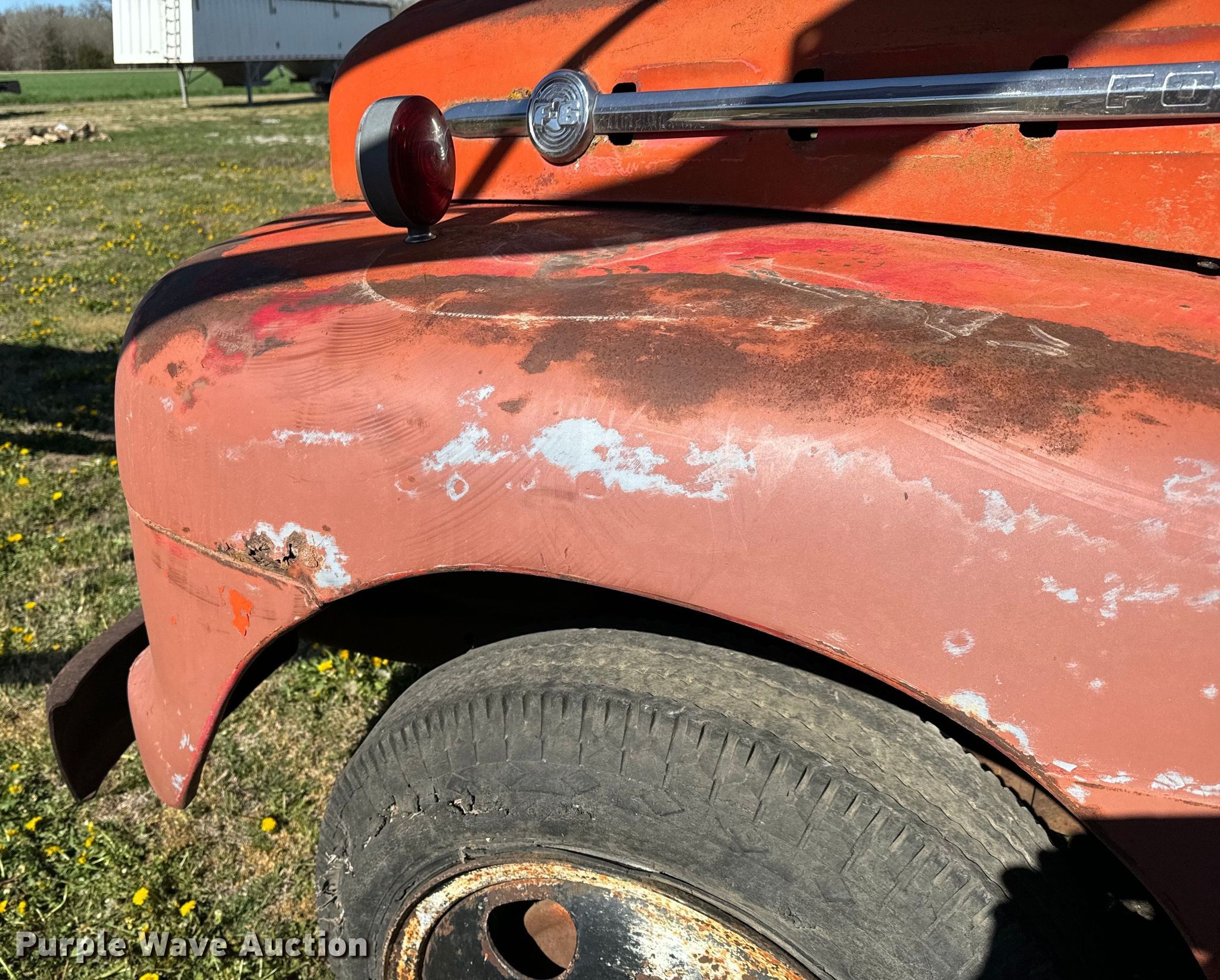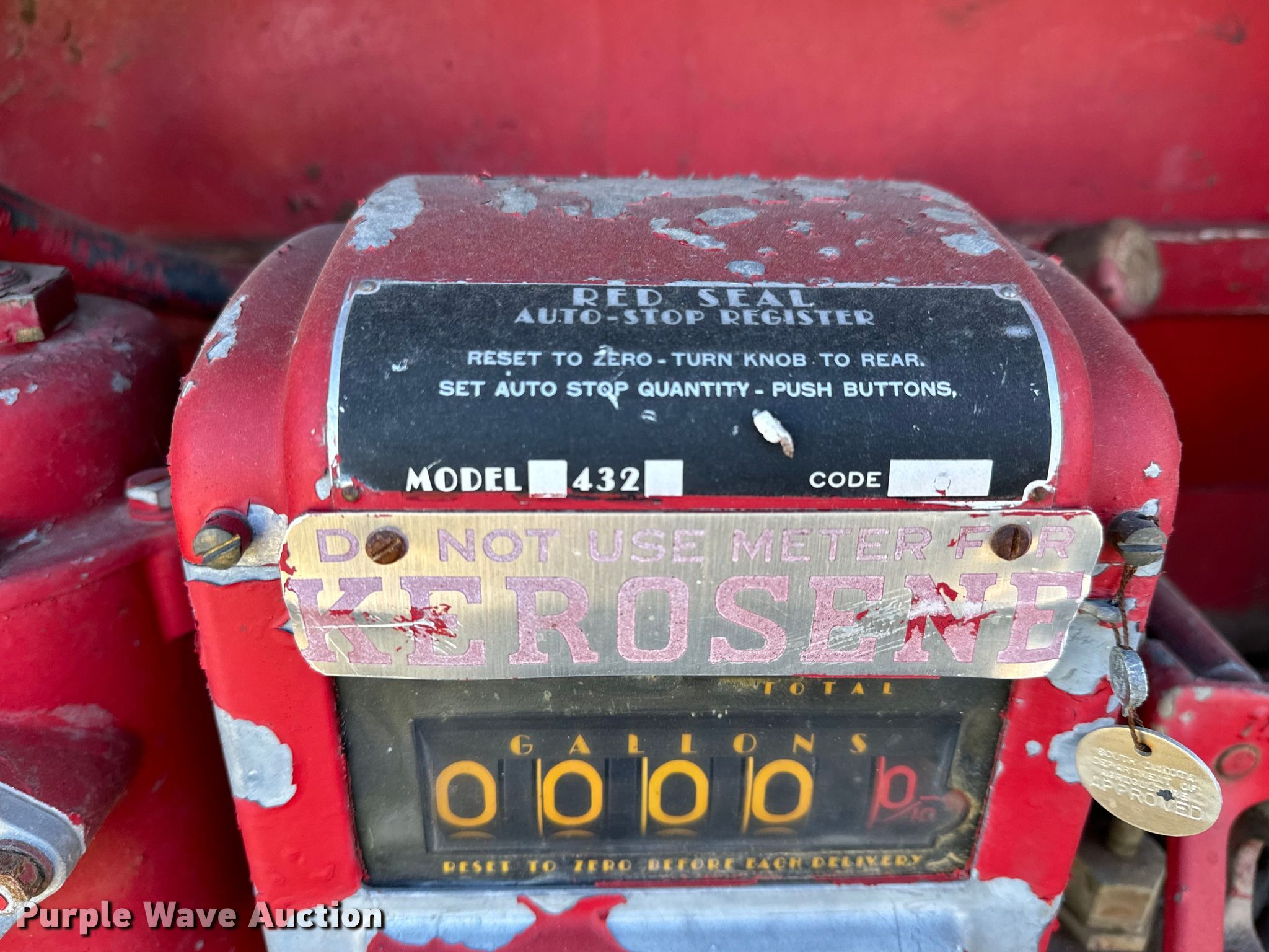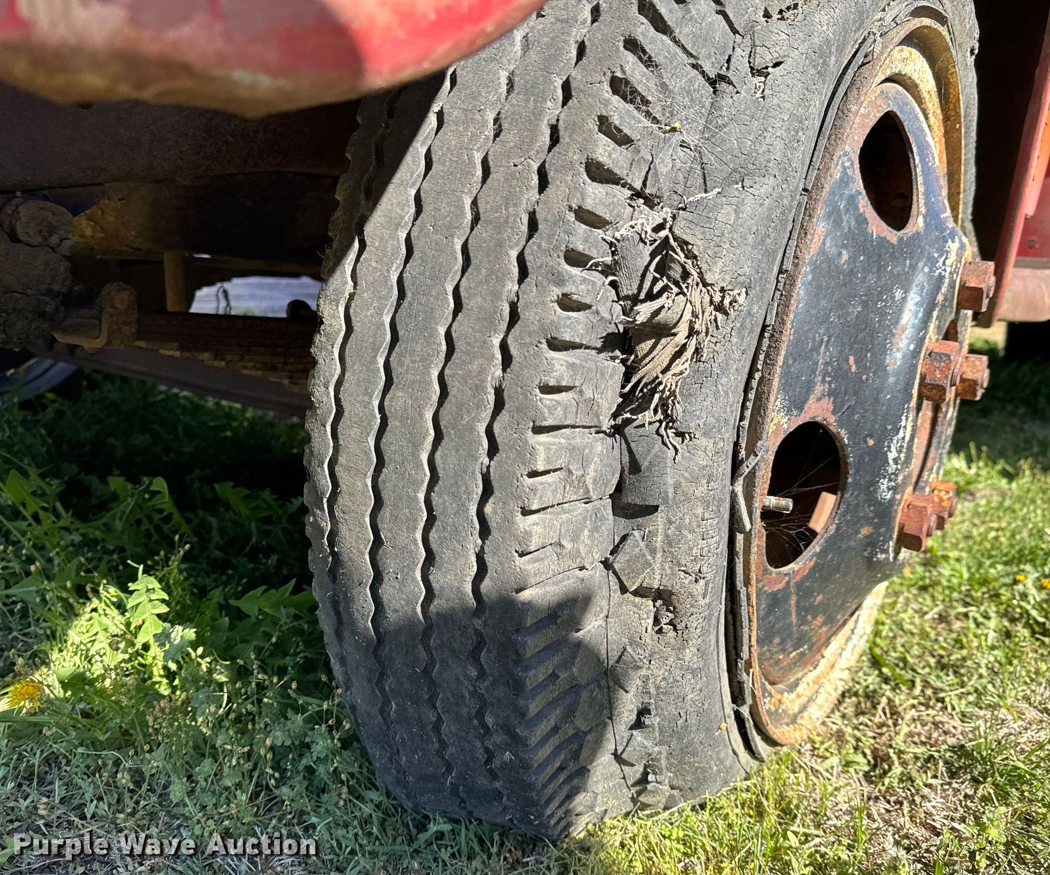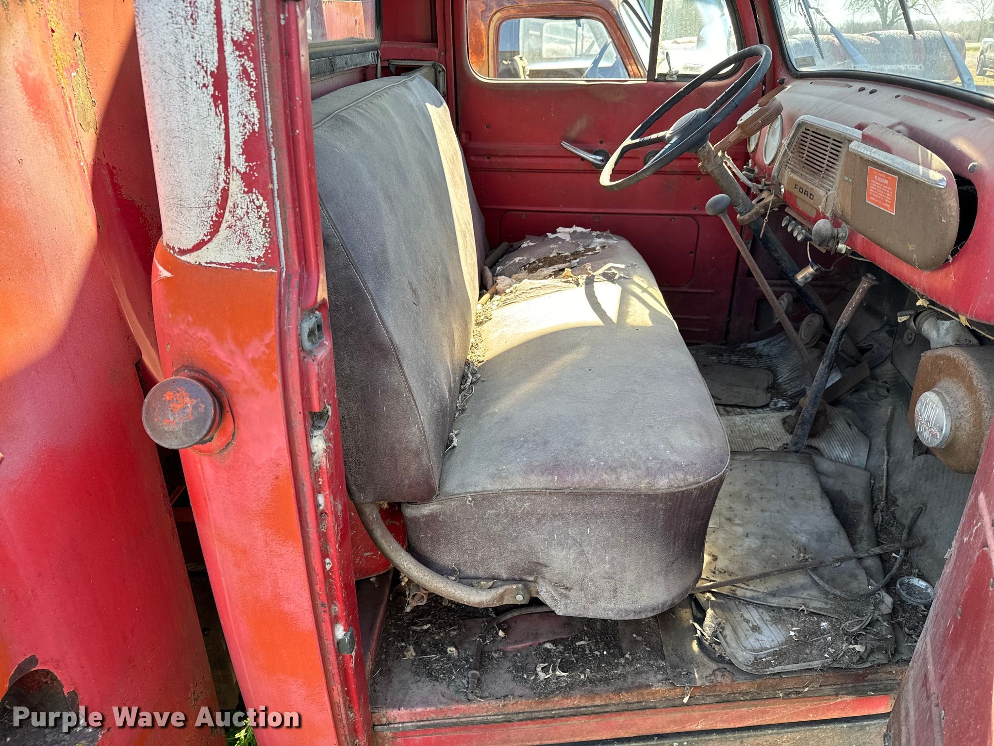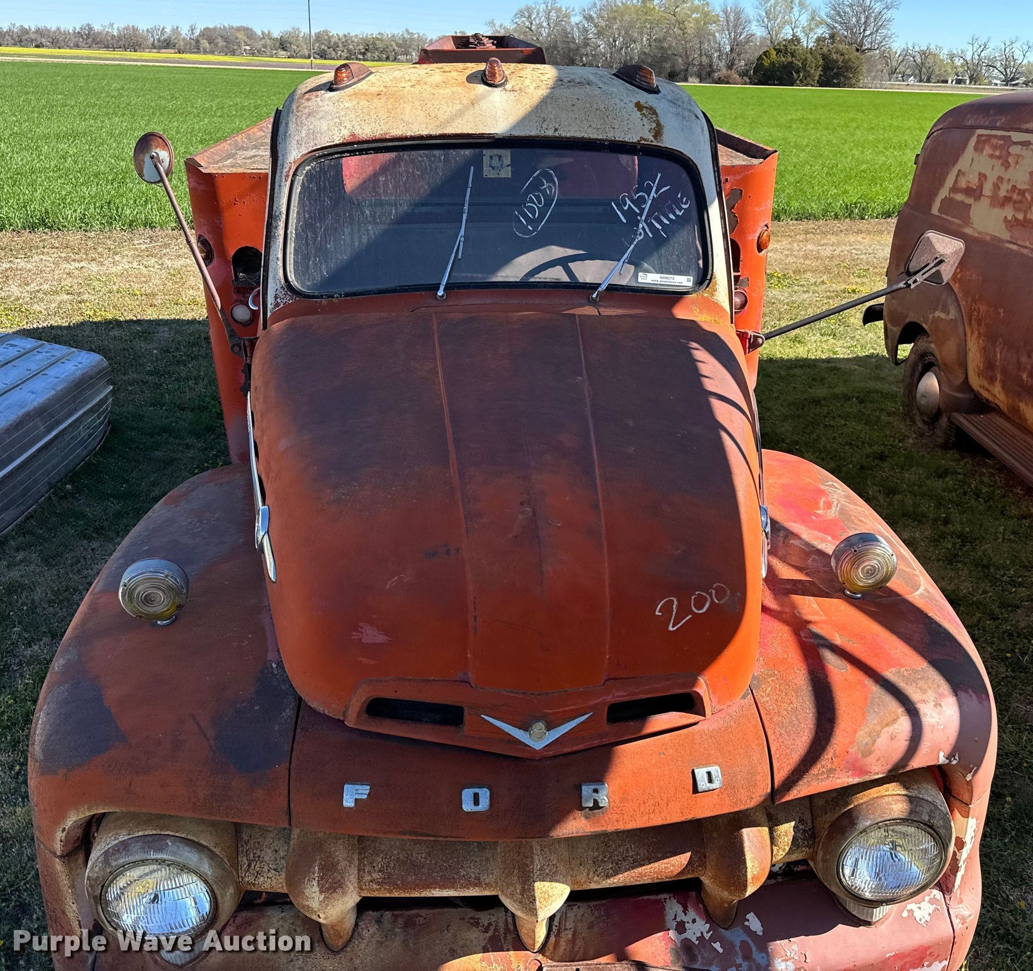 1952 Ford F-6 fuel truck. Miles: 57,184 on odometer, VIN: F6R2SP16201. Engine Cylinders: 8, Fuel type: Gas. Transmission Manual. Chassis Axles: Single, Suspension: Spring, Brakes: Hydraulic, PTO. Features Bed / tank 14' L x 90" W, Hose reels: 2, Nozzles, Metered pumps: 2 Make: Neptune.. Tires Size: 8.25-20. Notes Unit must be towed or hauled, Tires damaged, Tires flat, Glass missing, Glass cracked, Bed door issues, will not open, Non-operational unit. Kansas antique title. Halstead, KS 67056