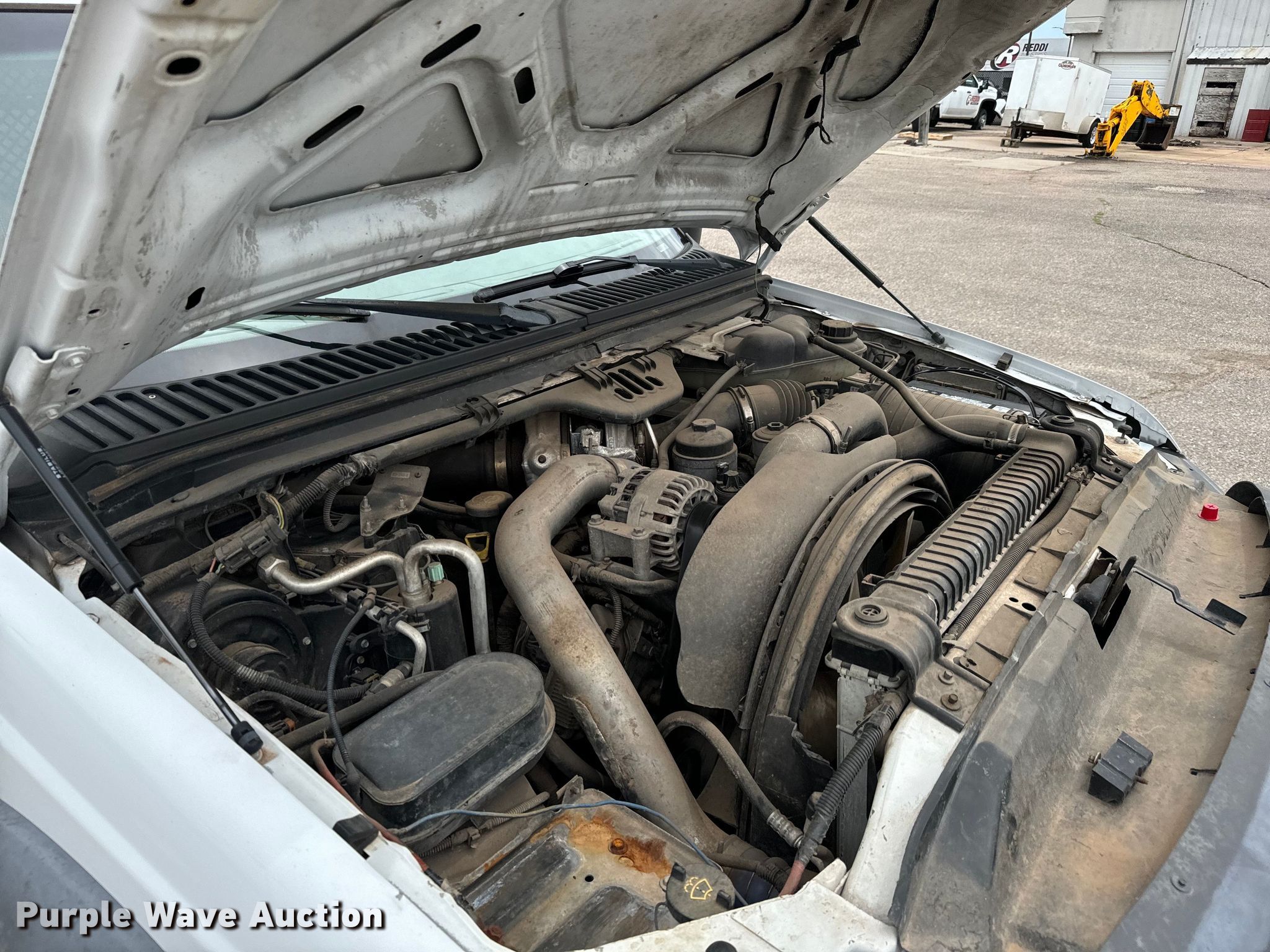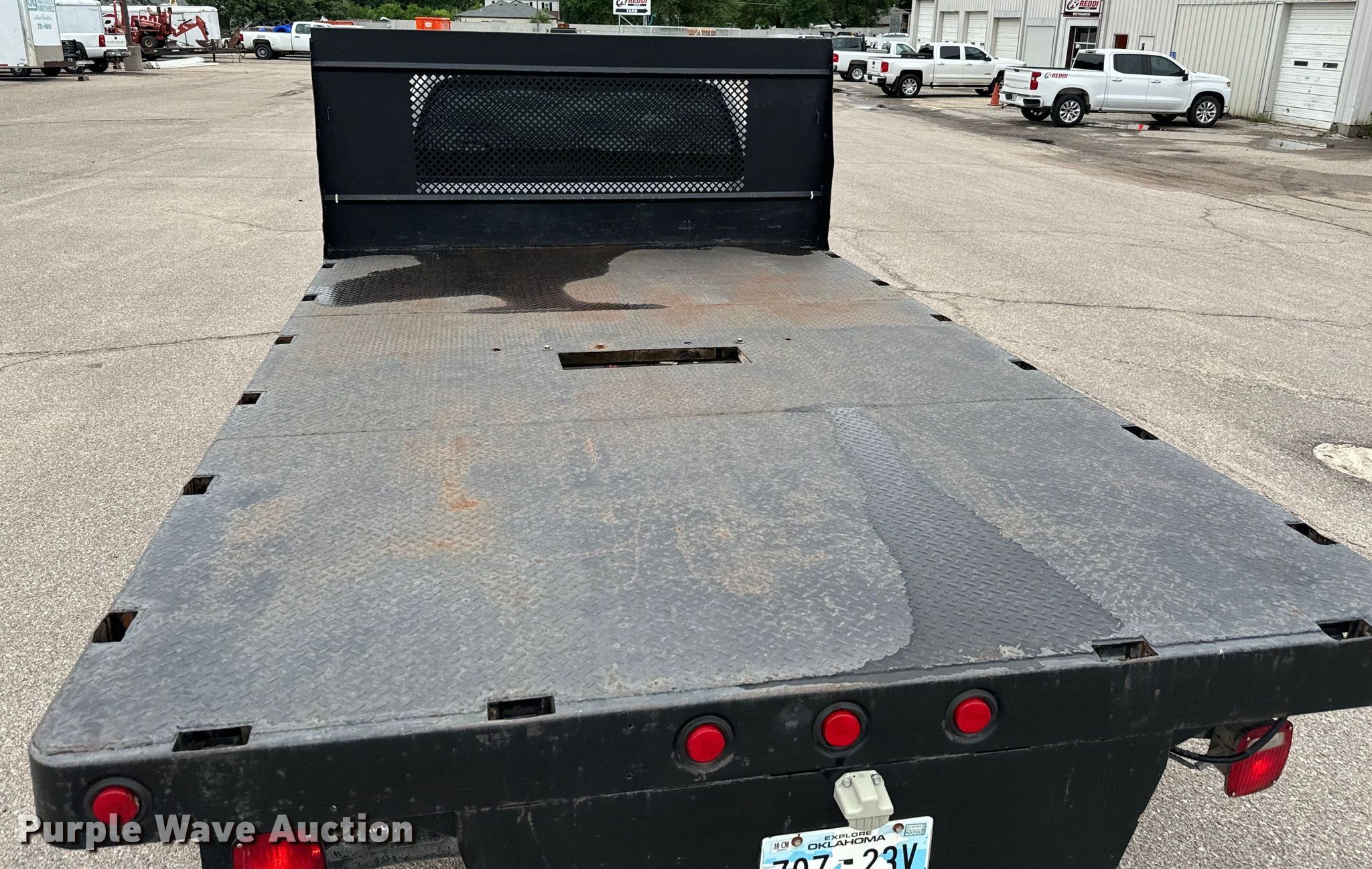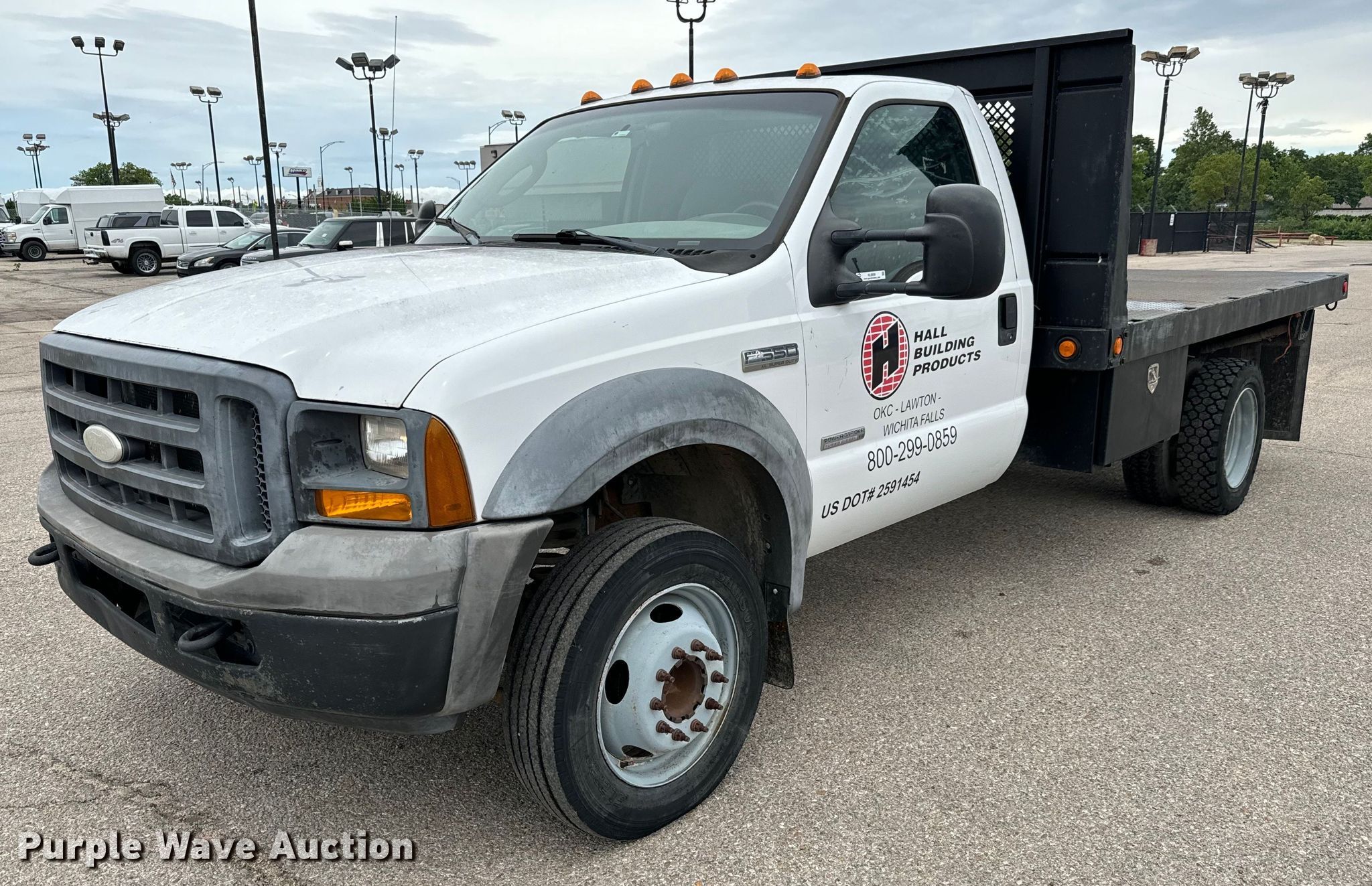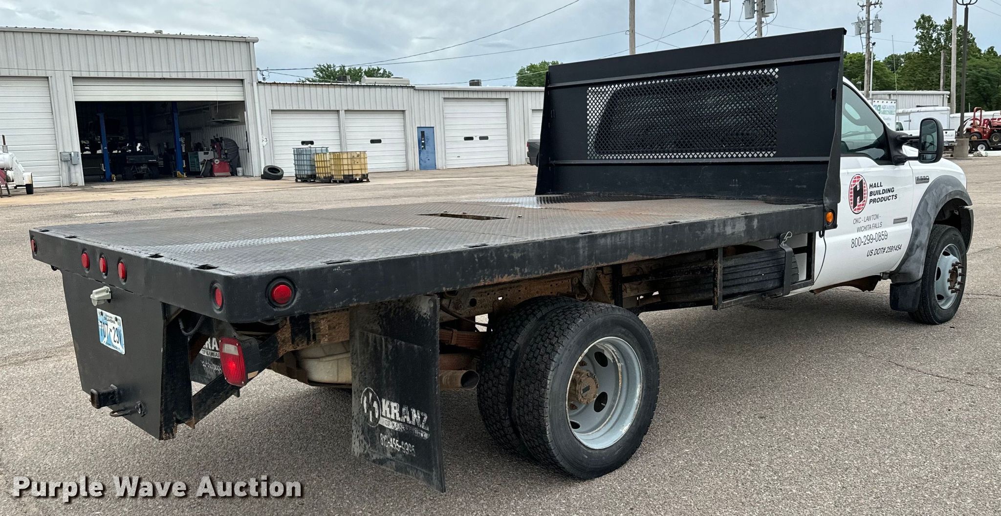 2005 Ford F550 flatbed truck. Miles: 159,602 on odometer, VIN: 1FDAF56PX5EC34558. Engine Displacement: 6.0L, Cylinders: 8, Fuel type: Diesel. Transmission Automatic. Chassis Axles: Single, Suspension: Spring, Brakes: Hydraulic. Interior AC, Heat, Cruise control, Auxiliary controls, Brake controller. Features Flatbed 12' 4" L x 96" W. Tires Size: 225/70R19.5. Notes Windshield chipped or cracked, Possible coolant issues , Batteries not included, Decals will be removed prior to auction. Oklahoma title. Title distribution may be delayed up to 14 days from verification of funds. Reddi Industries. Wichita, KS 67218