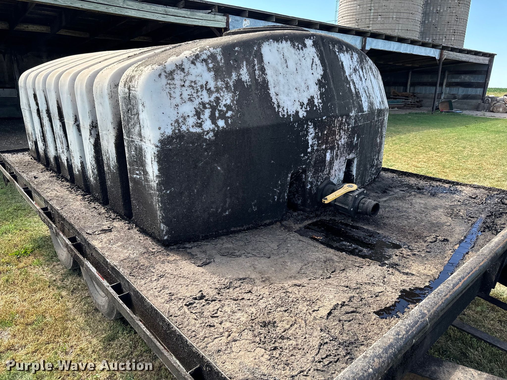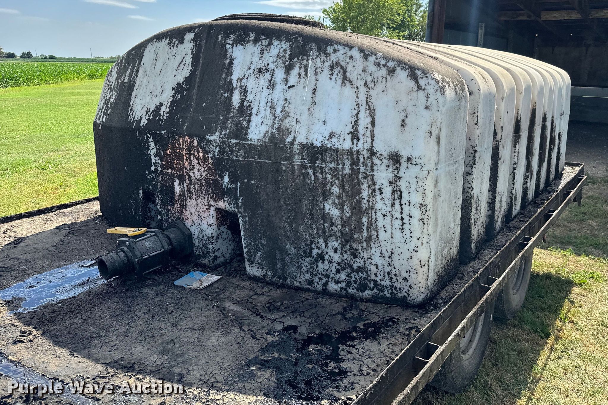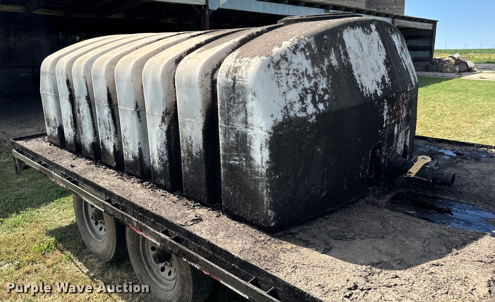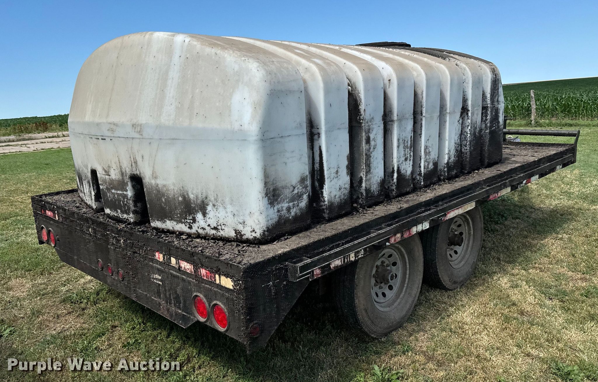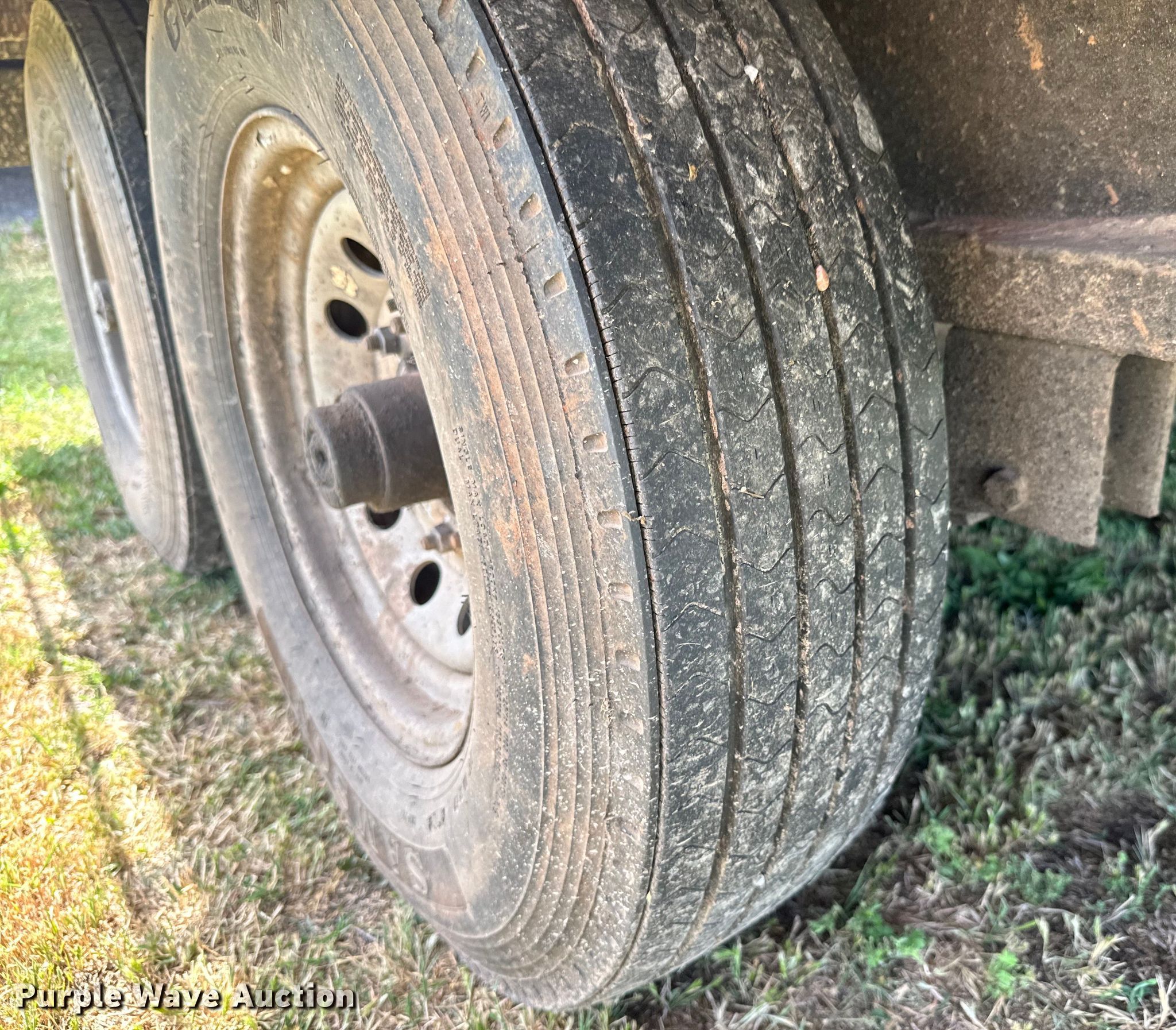 2013 Starlite 1410 I equipment trailer. VIN: 13YFS1428DC118211. Dimensions Overall: 19' 8" L x 102" W, Deck: 14' 2" L x 97" W, Deck height: 34". Features Deck type: Steel, Poly tank Capacity: 1,600 gallons. Chassis Ball hitch: 2 5/16", Landing gear: Single, Suspension: Spring, Brakes: Electric, Axles: Tandem, GVWR: 14,000 lbs. Tires Steel wheels, Size: 235/80R16. Transfer of ownership documentation will be a bill of sale. Perennial Companies. Goddard, KS 67052