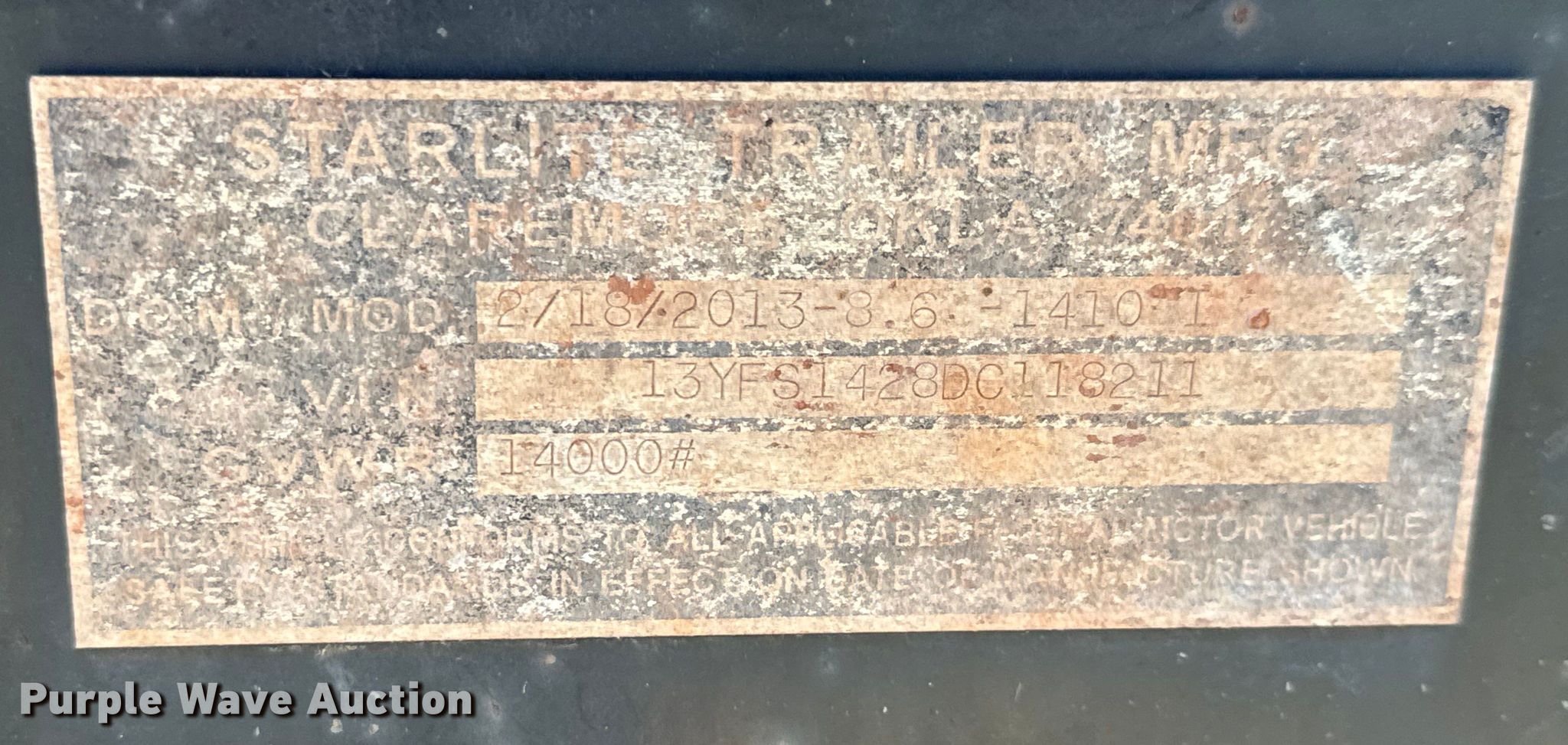 Purple Wave is selling a used Equip. Trailer in Kansas. This item is a 2013 Starlite 1410 I equipment trailer with the following: VIN: 13YFS1428DC118211