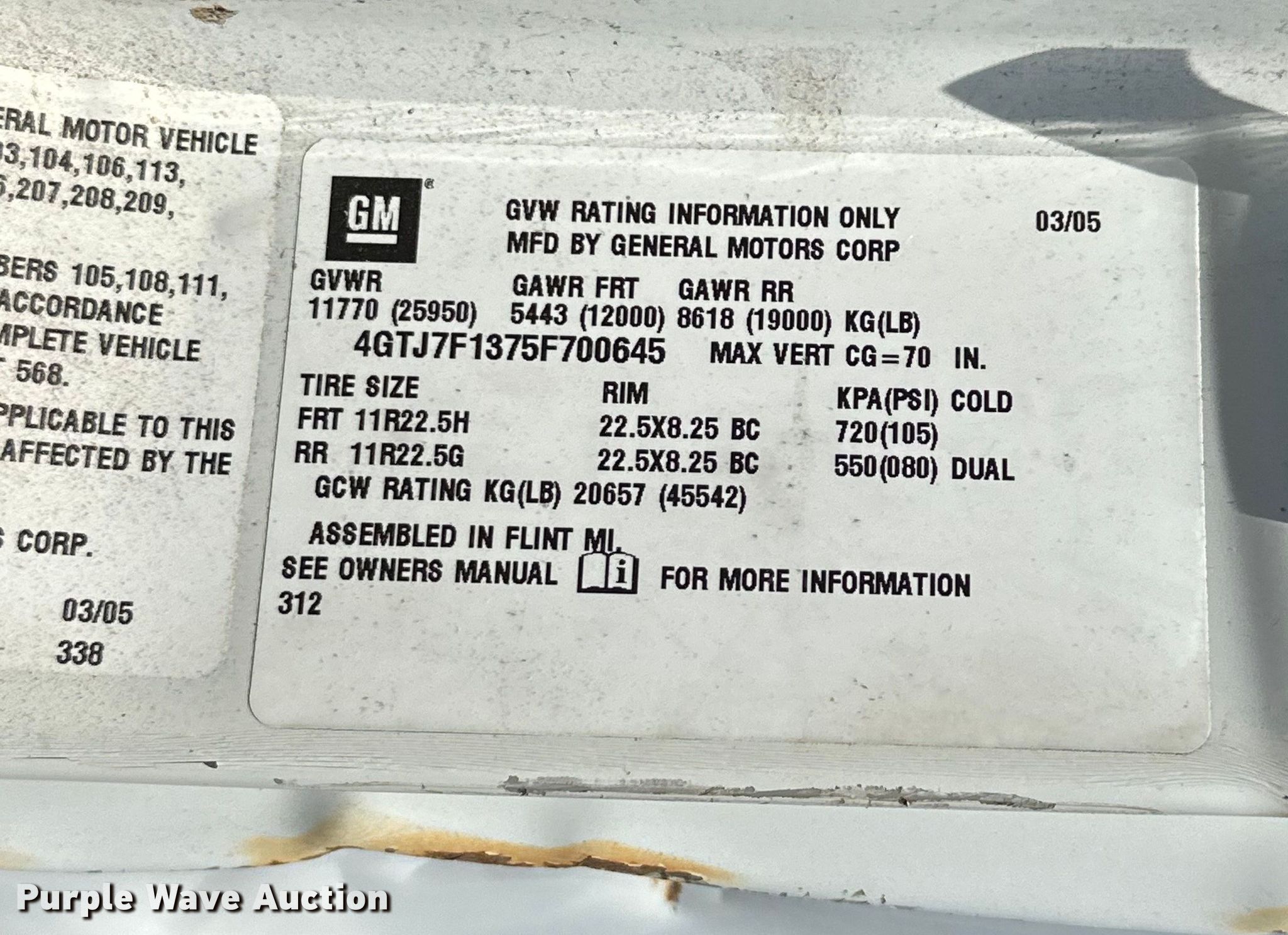 - VIN: 4GTJ7F1375F700645