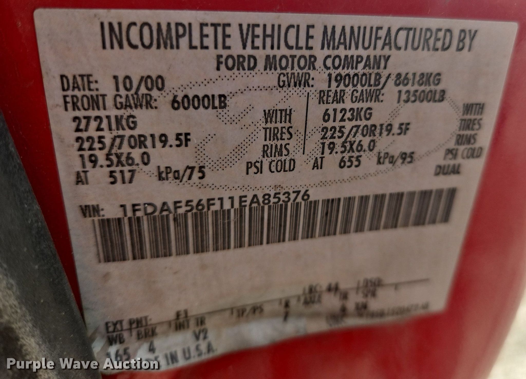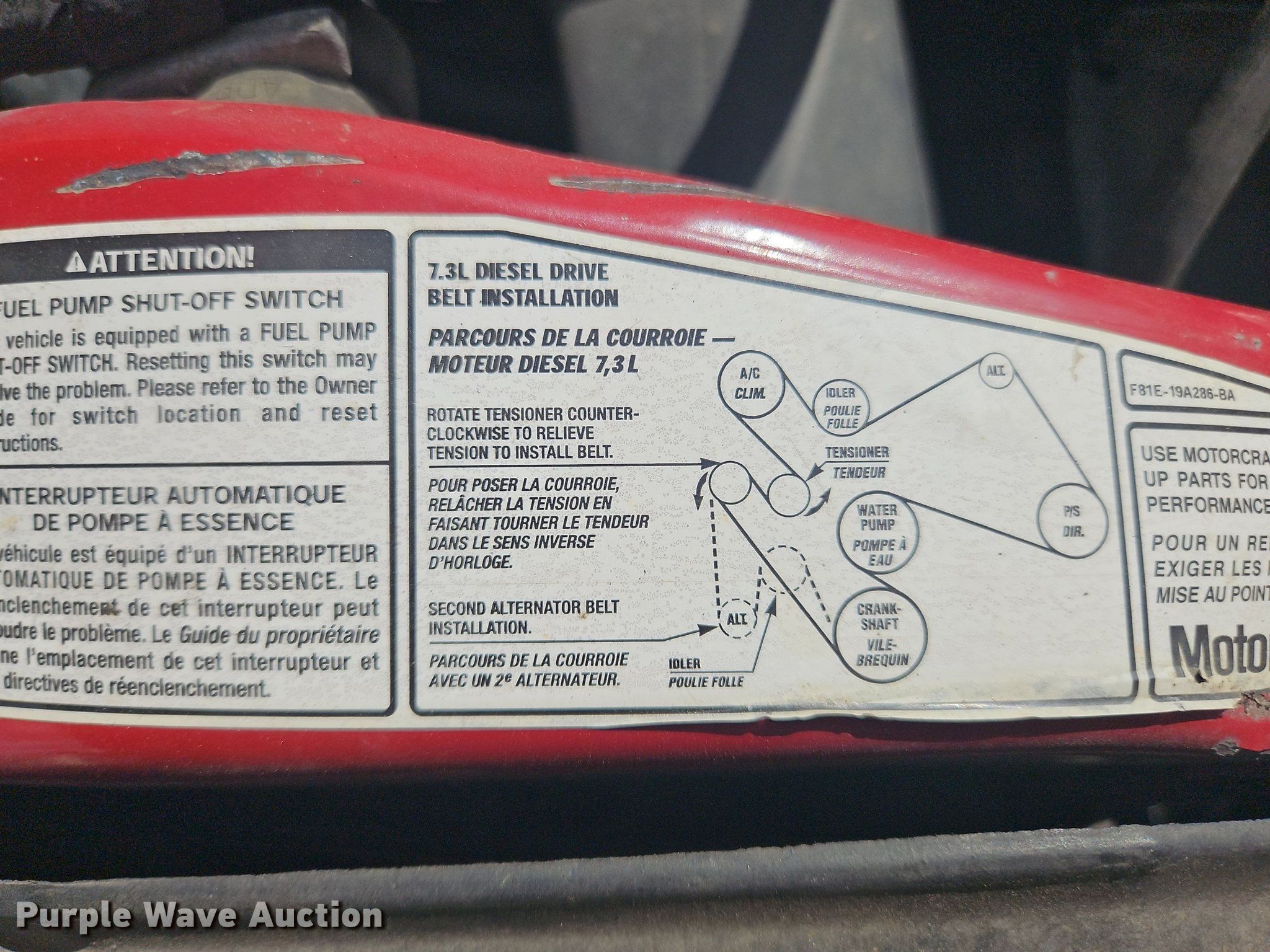 2001 Ford F550 Super Duty XL flatbed truck. Miles: 220,364 on odometer, VIN: 1FDAF56F11EA85376. Engine Displacement: 7.3L, Cylinders: 8, Fuel type: Diesel. Transmission Manual, Speed: 6. Interior AC, heat. Features Flatbed 13' 6" L x 8' W. Tires Size: 225/70R19.5. Notes Passenger door issues, does not latch, Batteries in toolbox not included. Pennsylvania title. Title distribution may be delayed up to 30 days from verification of funds. Wilbert Funeral Services. Blairsville, PA 15717