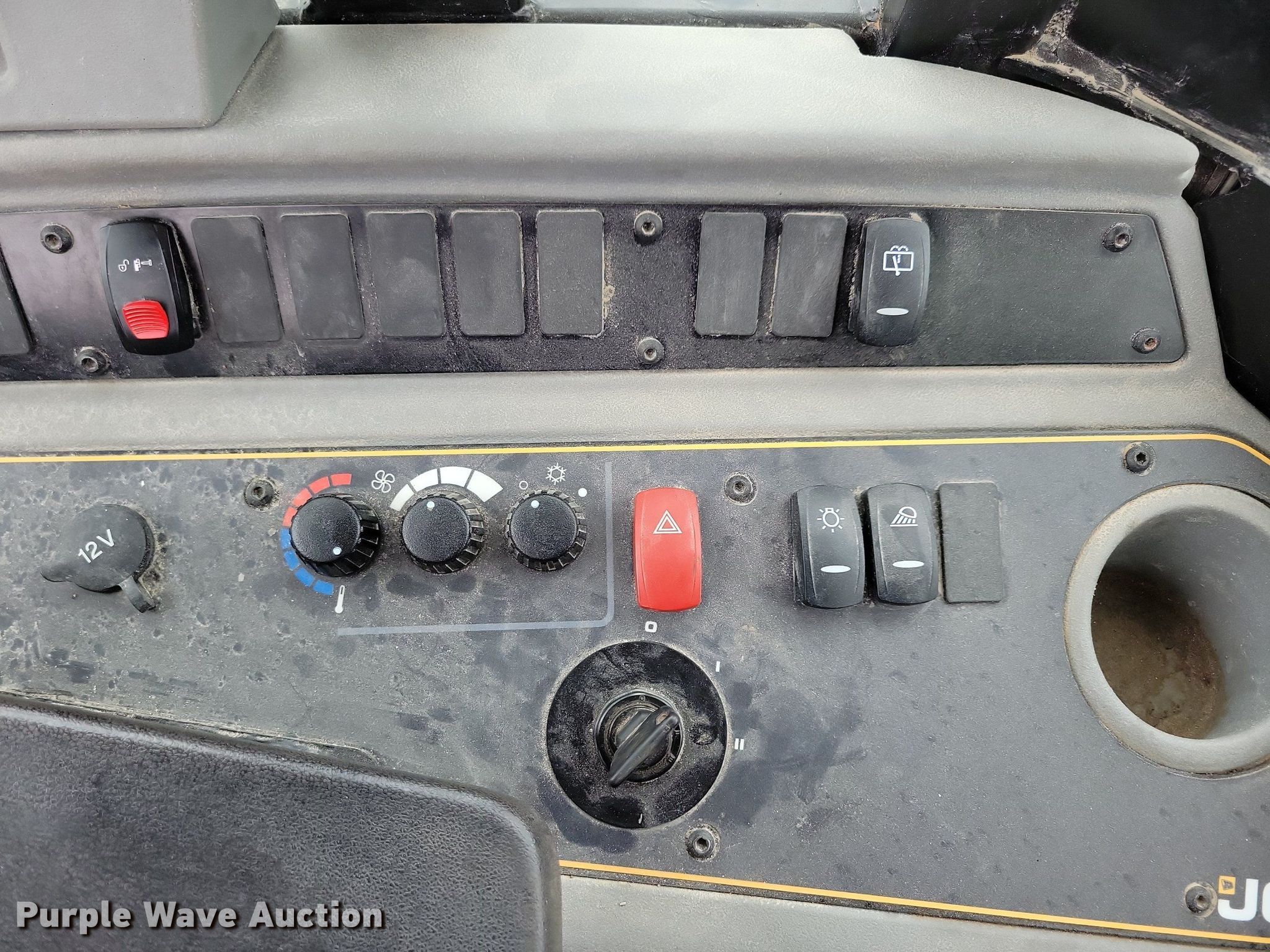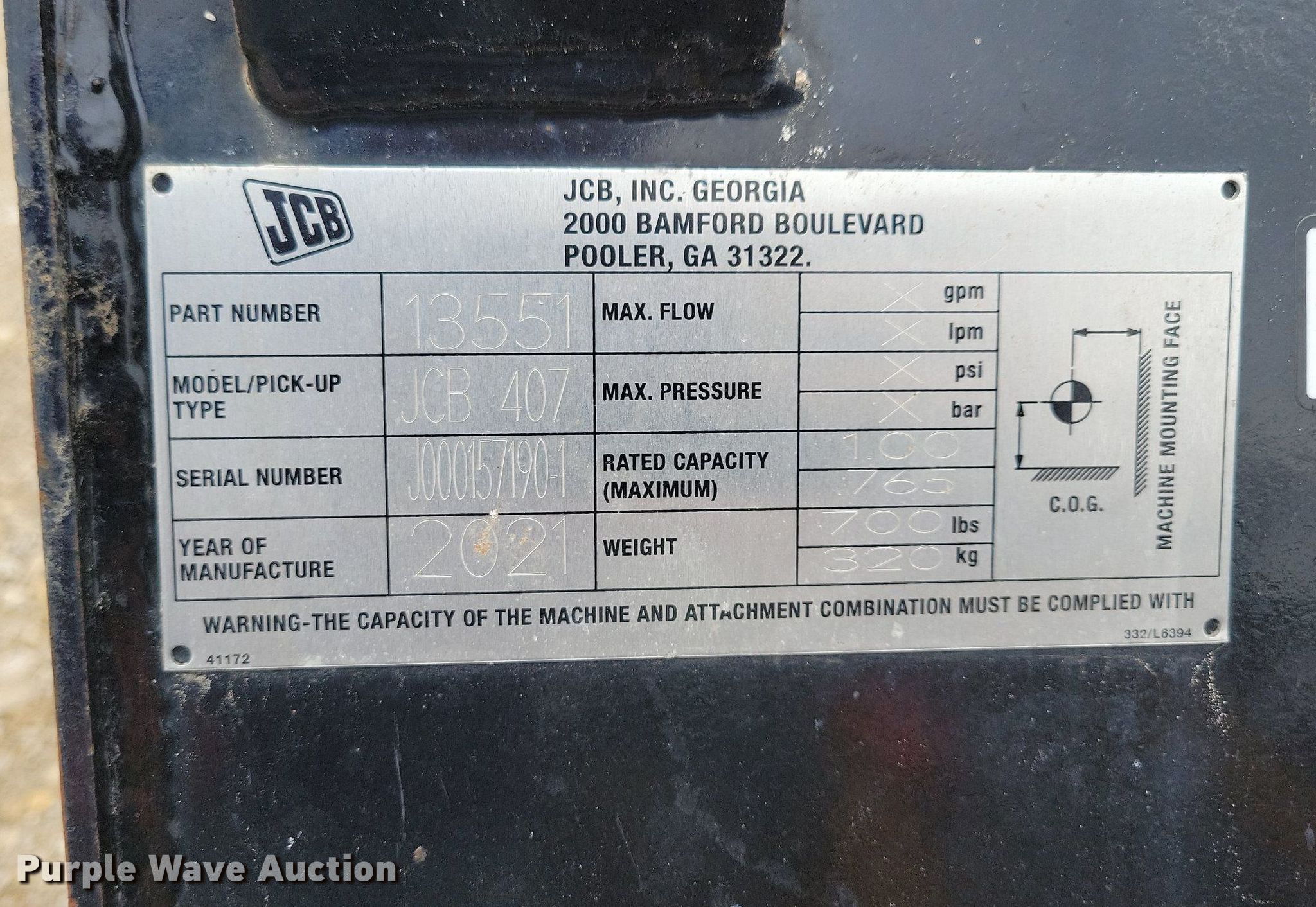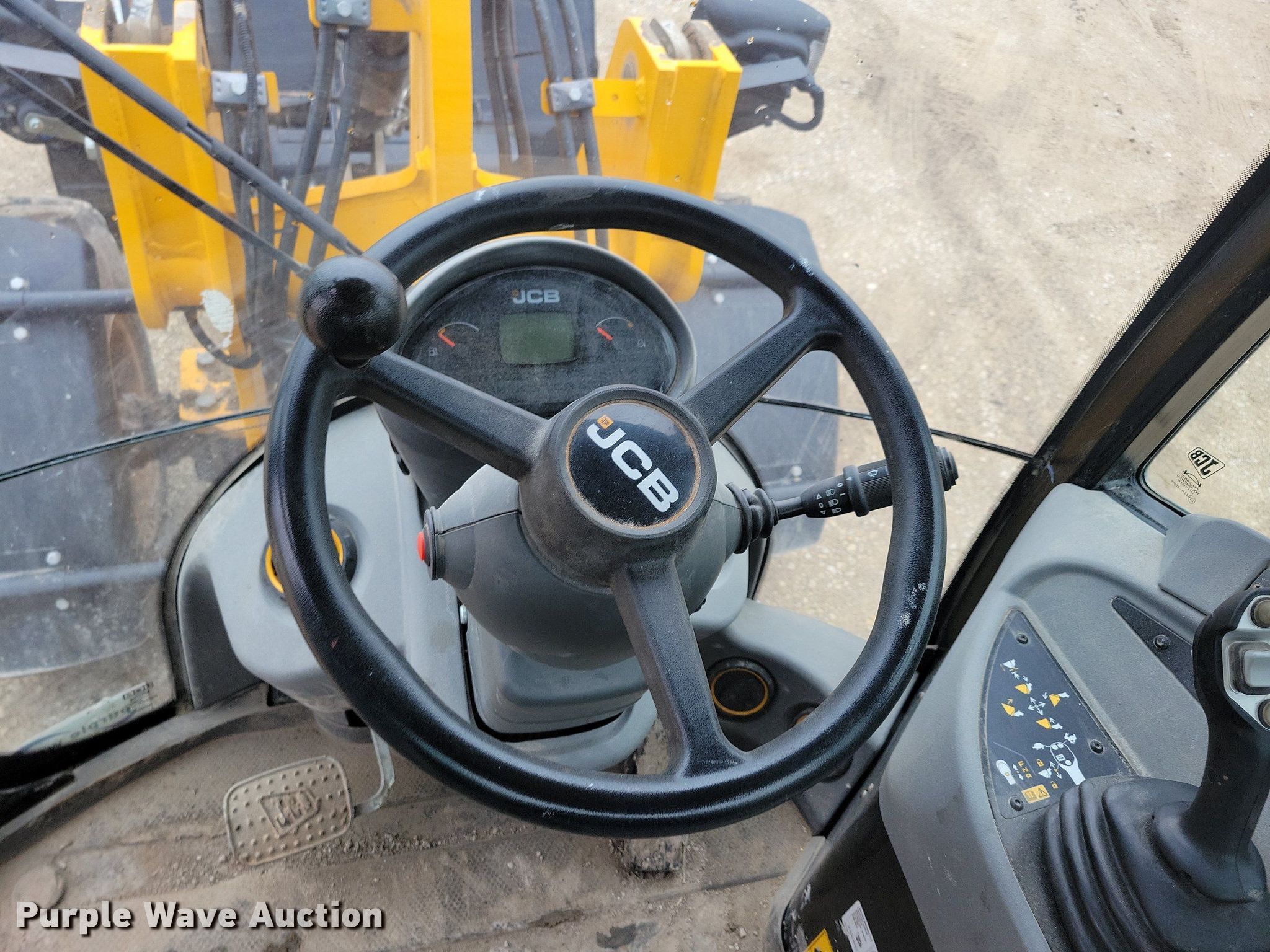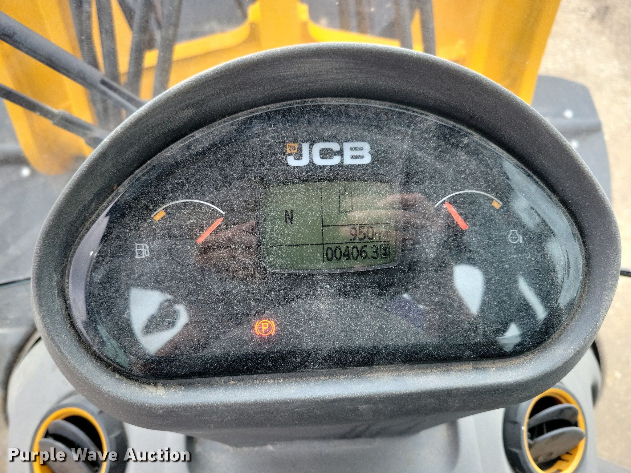 2022 JCB 407 wheel loader. Hours: 406 on meter, Serial: JCB40702PN3082625. Engine Kohler, Serial: 52266000970, Displacement: 2.482L, Cylinders: 4, Fuel type: Diesel. Transmission Hydrostatic, Two speed travel. Operators station Enclosed cab, AC, Heat, Bucket controls: Joystick. Features Quick coupler: Hydraulic, Counter weights, Bucket Capacity: 1 cu.yd., Width: 70". Tires Size: 365/70R18. Agriland FS. Winterset, IA 50273