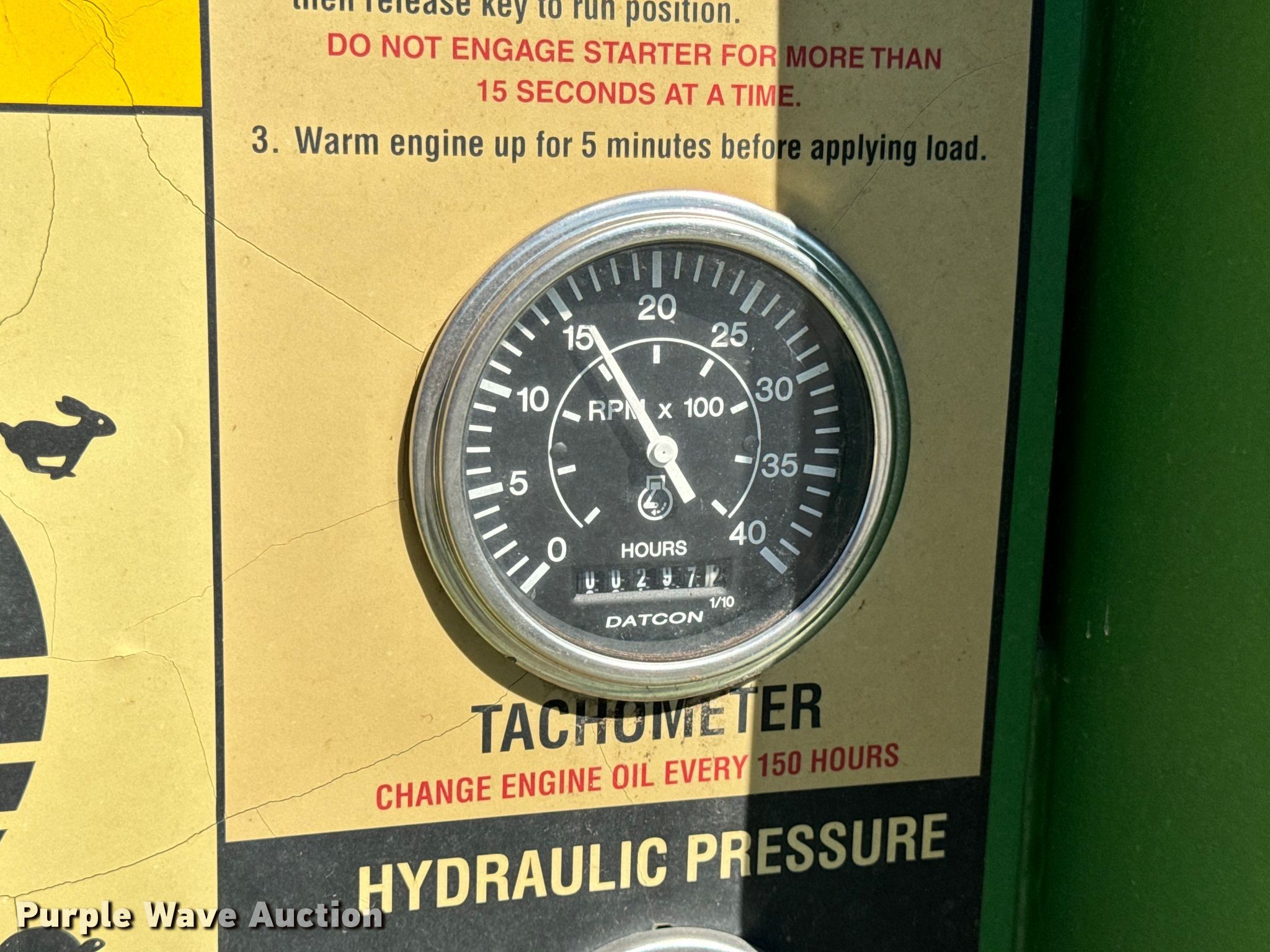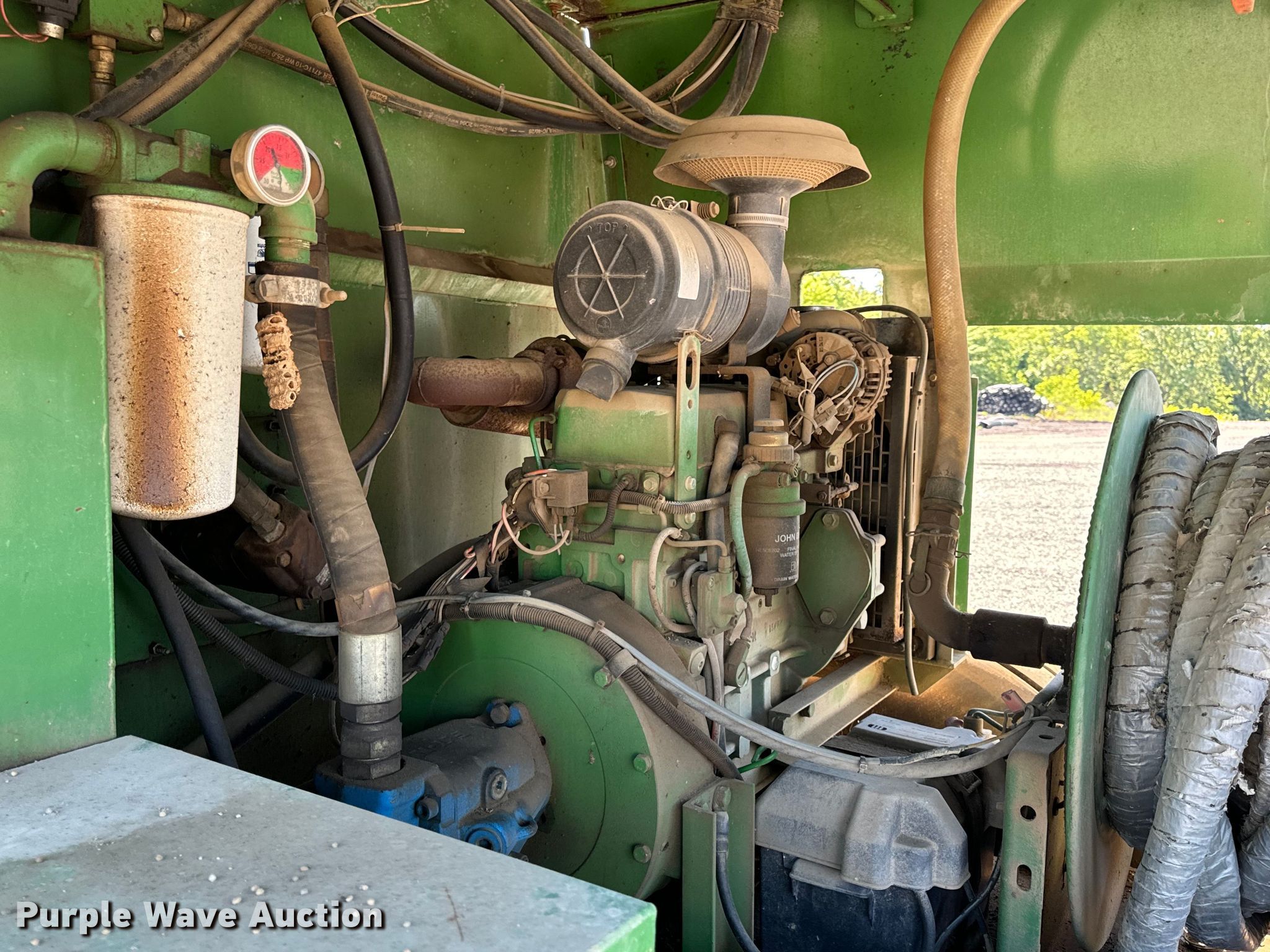 Easy Lawn C95 hydroseeder. Hours: 297 on meter, Serial: 23761. Engine John Deere, Cylinders: 4, Fuel type: Diesel. Features Hydraulic reservoir, Work platform, Hose reel Diameter: 26", Hose Diameter: 1.5". Trailer 22' 6" L x 108" W, Hitch: Pintle, Axles: Tandem, Tire size: 19L-16.1SL. Notes Dead battery, Oil leak, Hose damaged, Unknown operating condition. This is worksite support equipment and will not come with a title. Transfer of ownership documentation will be a bill of sale. Superior Bowen Asphalt. Blue springs, MO 64014