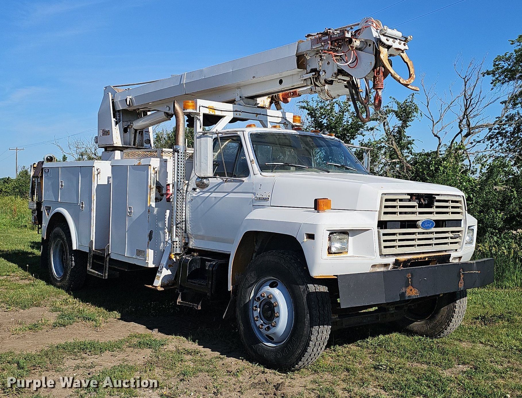 Purple Wave is selling a used Digger Derrick Truck in Nebraska. This item is a 1988 Ford F800 digger derrick truck with the following: Miles: 106,023 on odometer, Hours: 3,211 on meter, VIN: 1FDXK84A6JVA48712