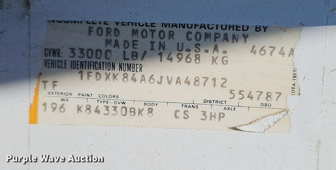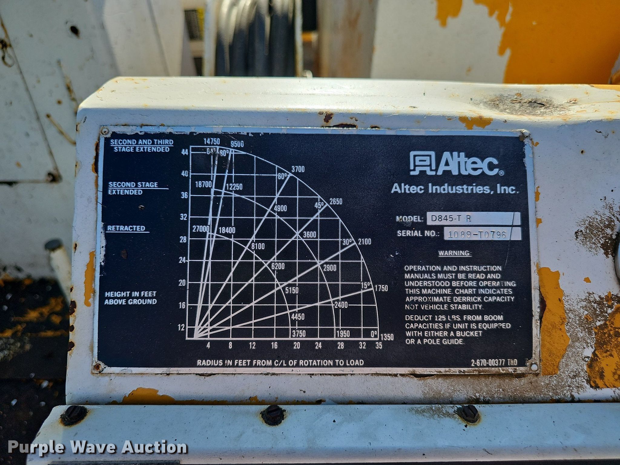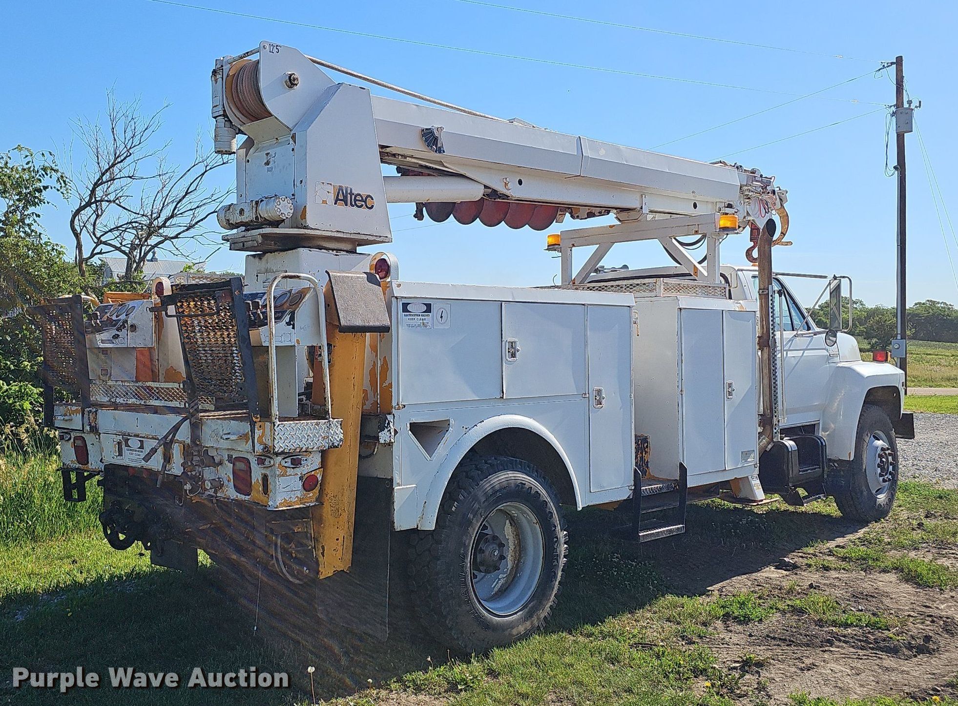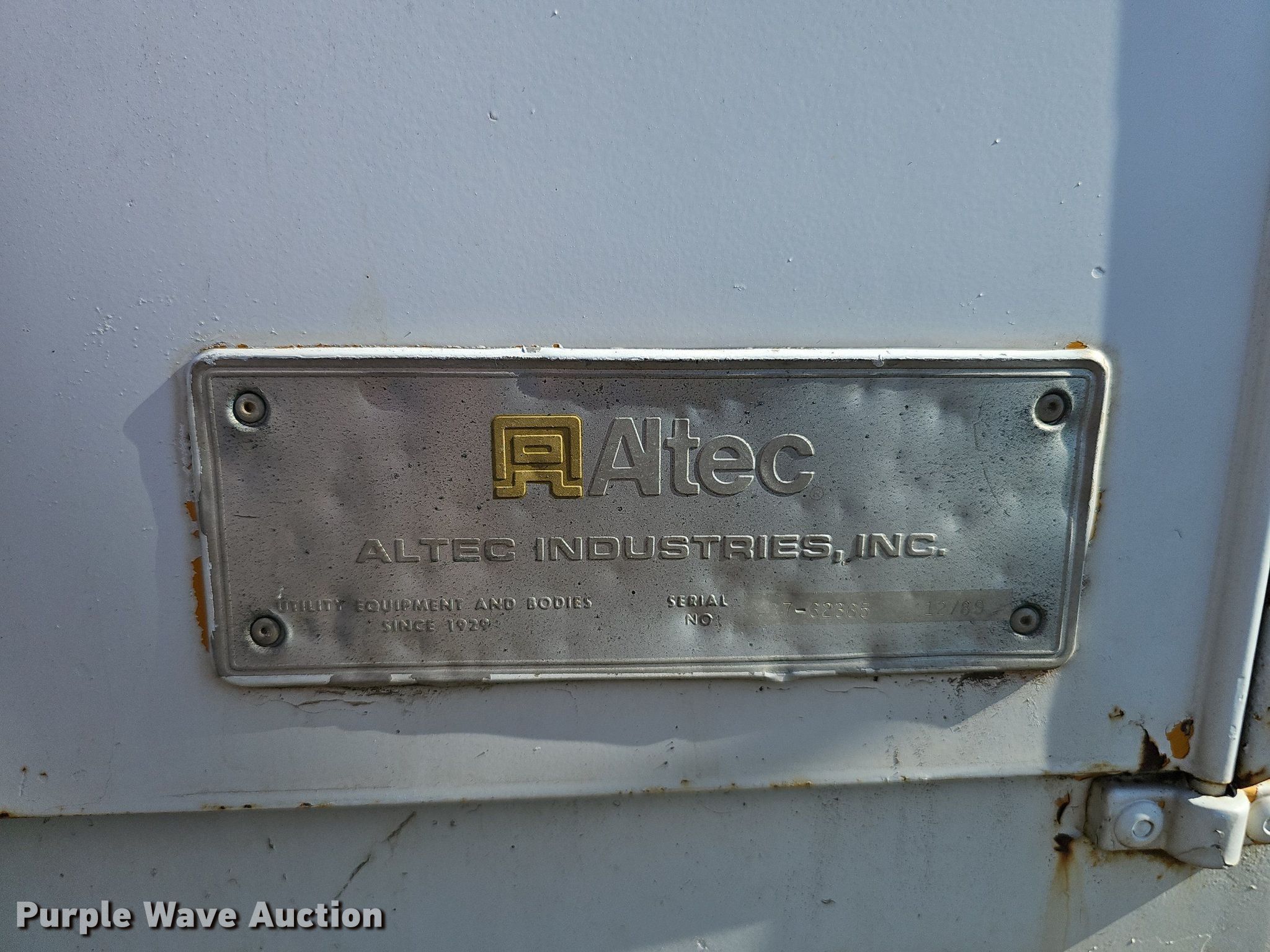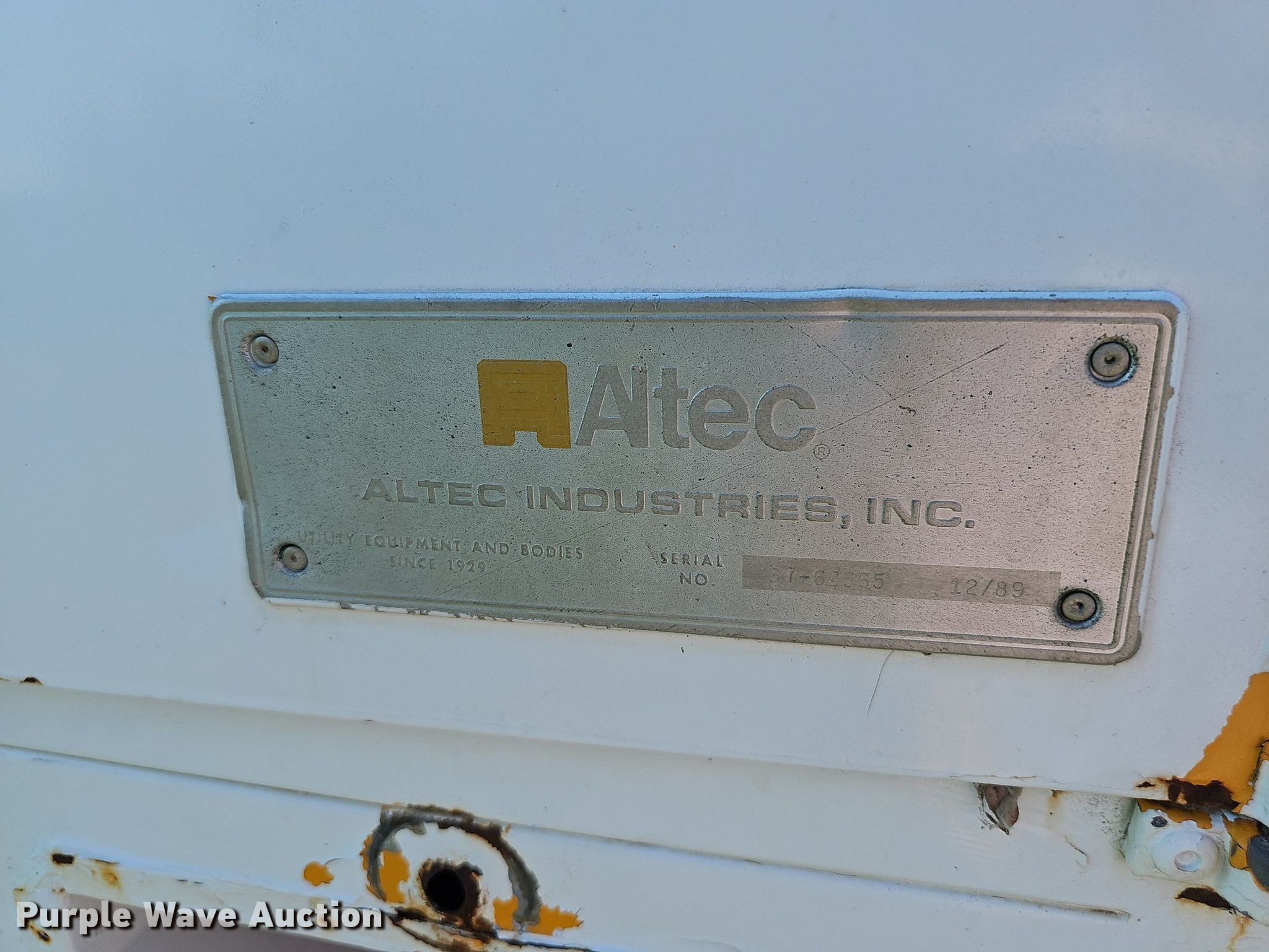 1988 Ford F800 digger derrick truck. Miles: 106,023 on odometer, Hours: 3,211 on meter, VIN: 1FDXK84A6JVA48712. Engine Ford 210, Displacement: 7.8L, Cylinders: 6, Fuel type: Diesel. Transmission Manual, Speed: 5, plus 2. Chassis Axles: Single, Suspension: Spring, Brakes: Air, PTO, GVWR: 33,000 lbs, Wheelbase: 198". Interior Heat, Brake controller. Features Bed Altec, Serial: 37-62365, 14' L x 94" W, Boom Altec D845-TR, Serial: 1089-T0796, Boom length: 45', Maximum lift capacity: 27,000 lbs, Boom type: Telescopic, Man basket, Boom controls Ground, Material handler, Pole guide, Auger Diameter: 20".. Tires Size: 11R22.5. Notes Rear differential repaired in May 2024, Hydraulic leak. View repairs. Nebraska title. 2370 County Road K. Wilber, NE 68465