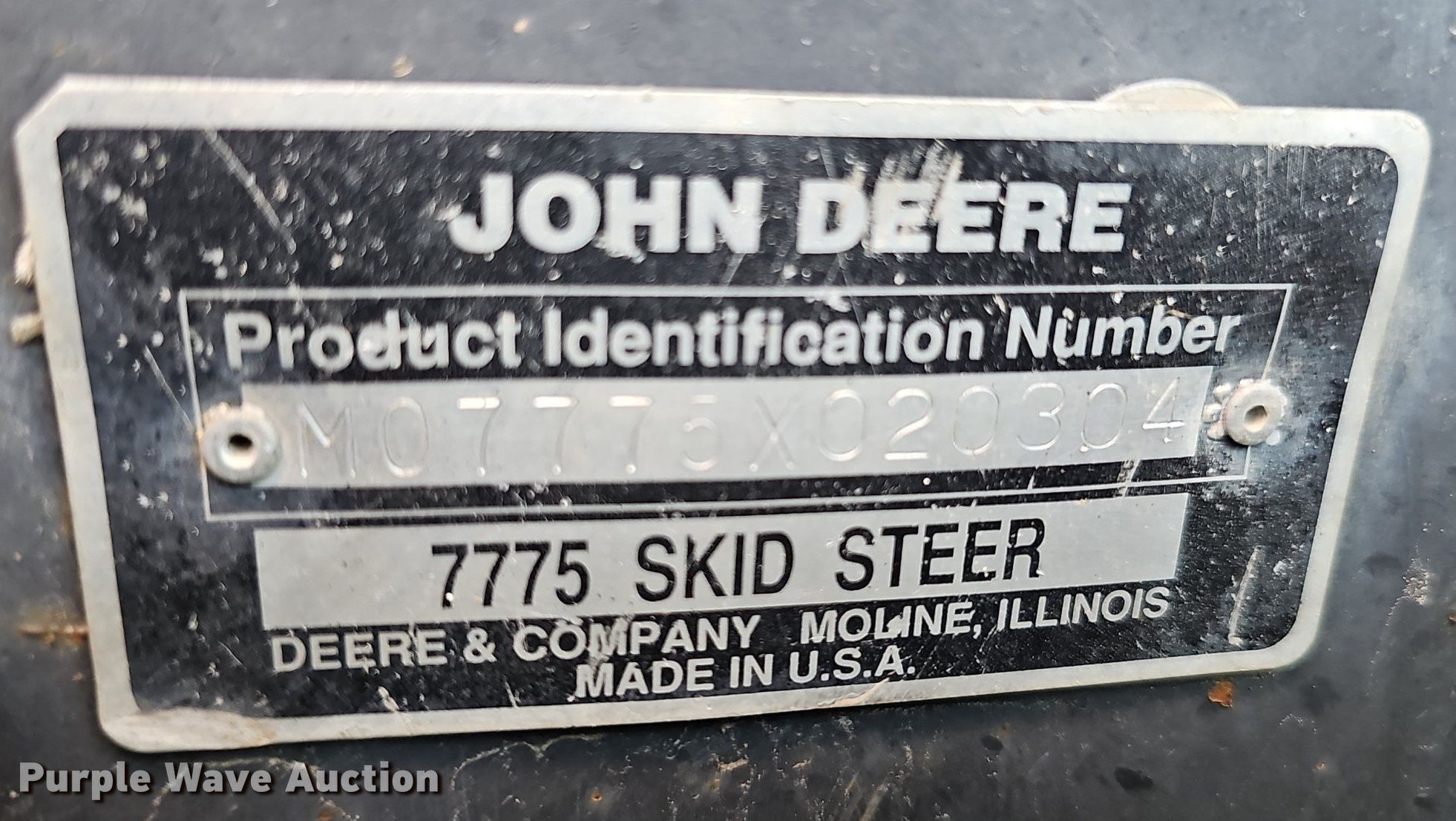 Purple Wave is selling a used Skid Steer Loader in Nebraska. This item is a 1995 John Deere 7775 skid steer loader with the following: Hours: Unknown, Serial: M07775X020304
