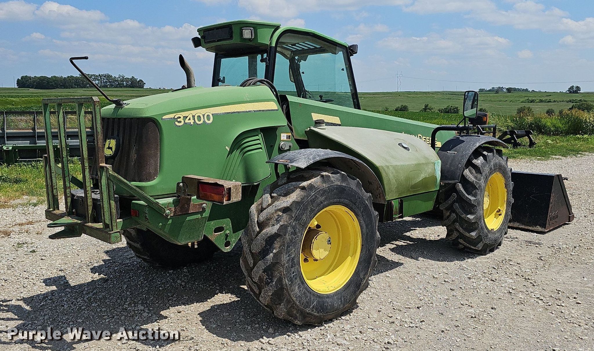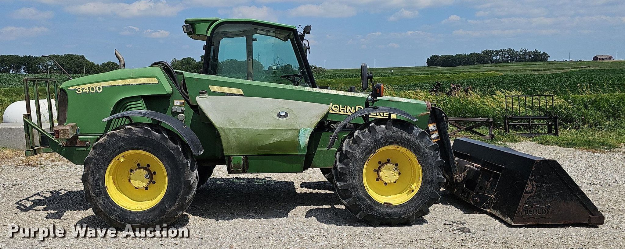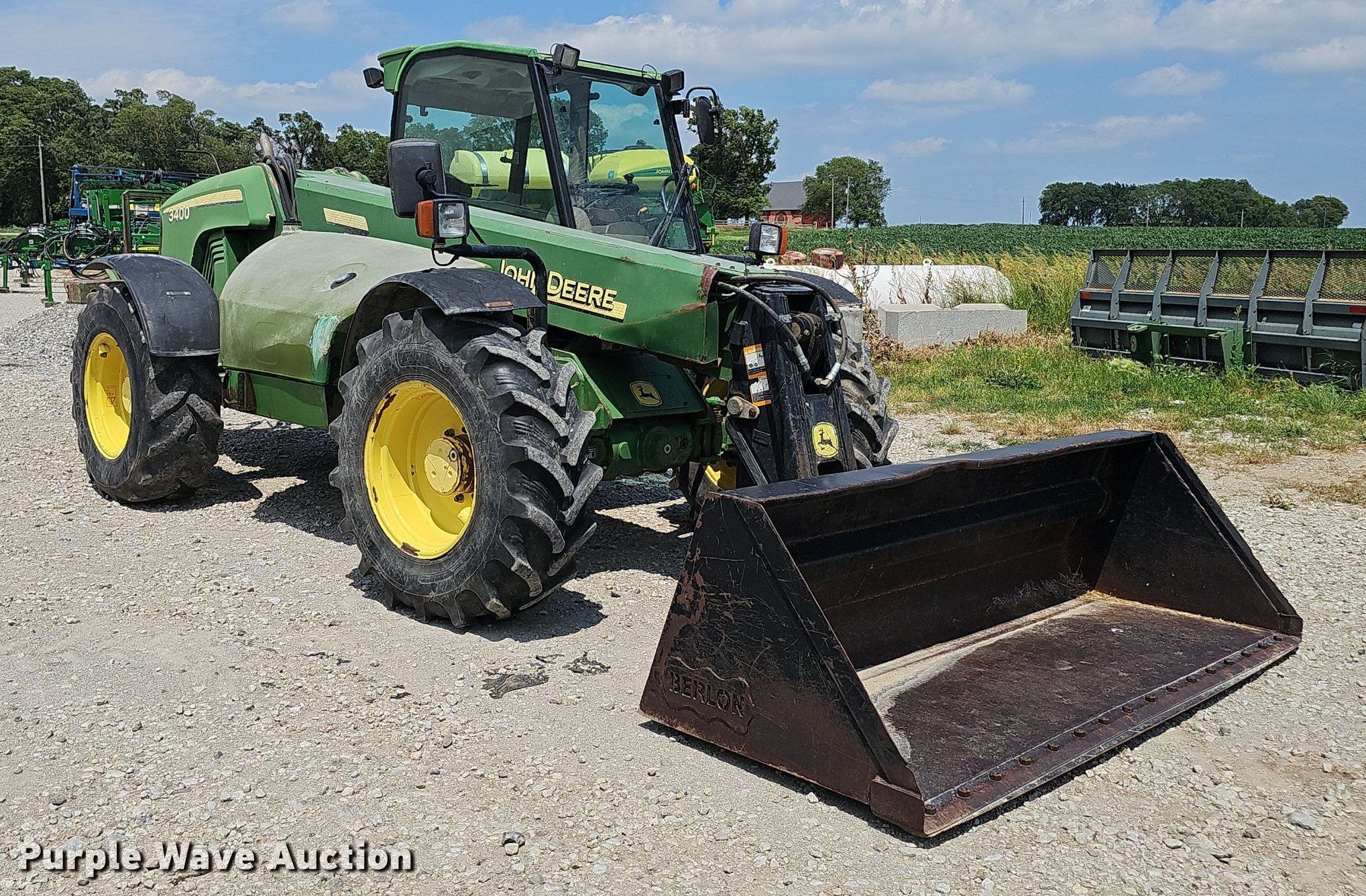 Purple Wave is selling a used Telehandler in Iowa. This item is a 2002 John Deere 3400 telehandler with the following: Hours: 492 on meter, Serial: Z03400X201635