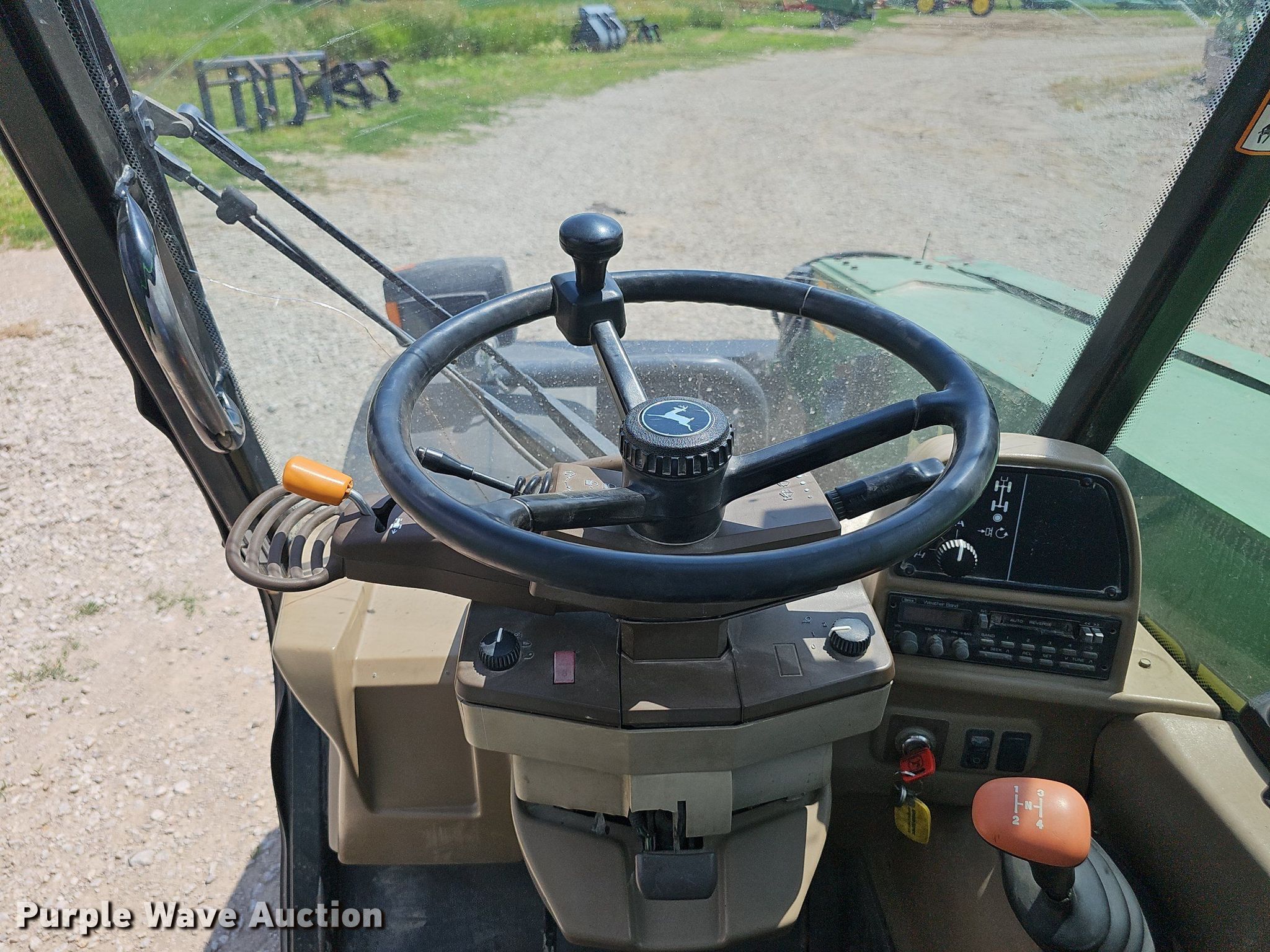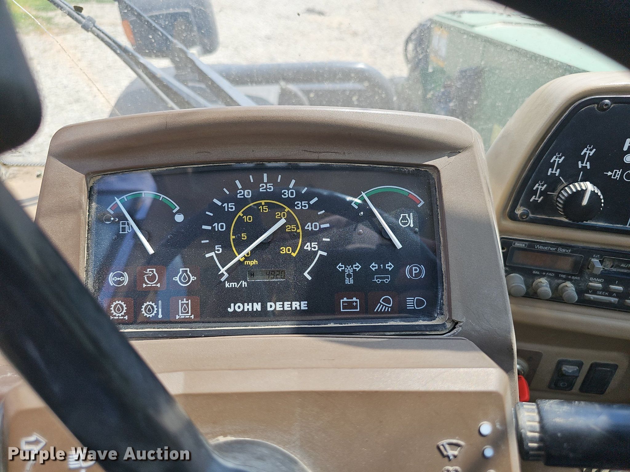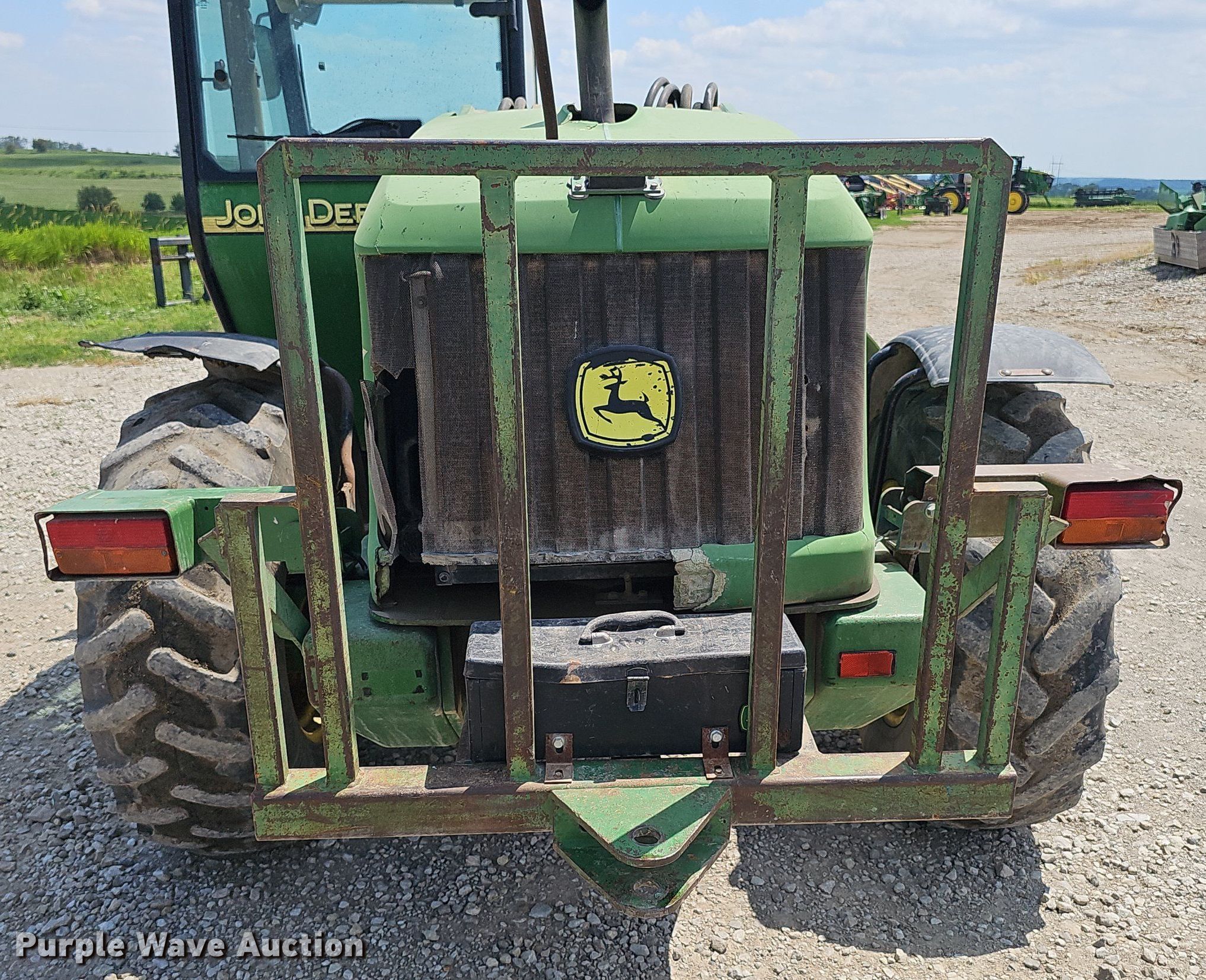 2002 John Deere 3400 telehandler. Hours: 492 on meter, Serial: Z03400X201635. Engine John Deere, Cylinders: 4, Fuel type: Diesel. Transmission Shuttle shift, 4F - 4R, Four wheel drive. Operators station Enclosed cab, AC, Heat, Steering: Crab, Four wheel. Features Boom stages: 2, Side shift, Fork length: 48", Auxiliary hydraulics, Quick attach: Hydraulic, Bucket size: 98", Truss boom. Tires Size: 380/85R24. Notes Additional tire and wheel, Glass cracked. AVE-PLP Inc.. 40794 Pioneer Trail. Macedonia, IA 51549