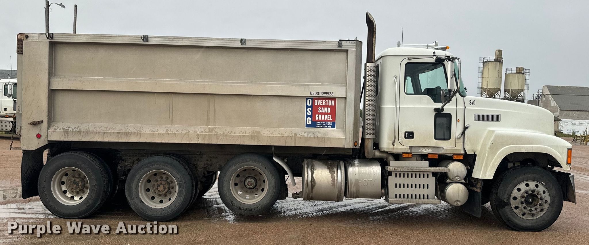 2011 Mack CHU dump truck. Miles: 888,029 on odometer, Miles or hours may vary, unit still in use, VIN: 1M1AN07Y7BM007458. Engine Mack MP8, Displacement: 12.7L, Cylinders: 6, Fuel type: Diesel, Engine brake. Transmission Mack Maxitorque ES, Manual. Chassis Axles: Triple, Pusher axle, Differential lock: Inter-axle, Suspension: Air Dump valves, Brakes: Air, PTO, FAWR: 14,600 lbs, IAWR: 20,000 lbs, RAWR: 20,000 lbs. Interior AC, Heat, Heated mirrors, Power windows, Cruise control. Features Dump bed 17' L x 96" W, Side height: 60", Bed type: Aluminum, Ram: Single, End gate: Air operated. Tires Size: 11R22.5, Lift axle: 295/75R22.5. Notes Windshield chipped or cracked, Decals will be removed prior to auction. Nebraska electronic title. Title has a lien that will be released following the close of the auction. A paper title will be printed once the lien is released. Title distribution may be delayed up to 60 days from verification of funds. Overton Sand & Gravel Co.. Overton, NE 68863