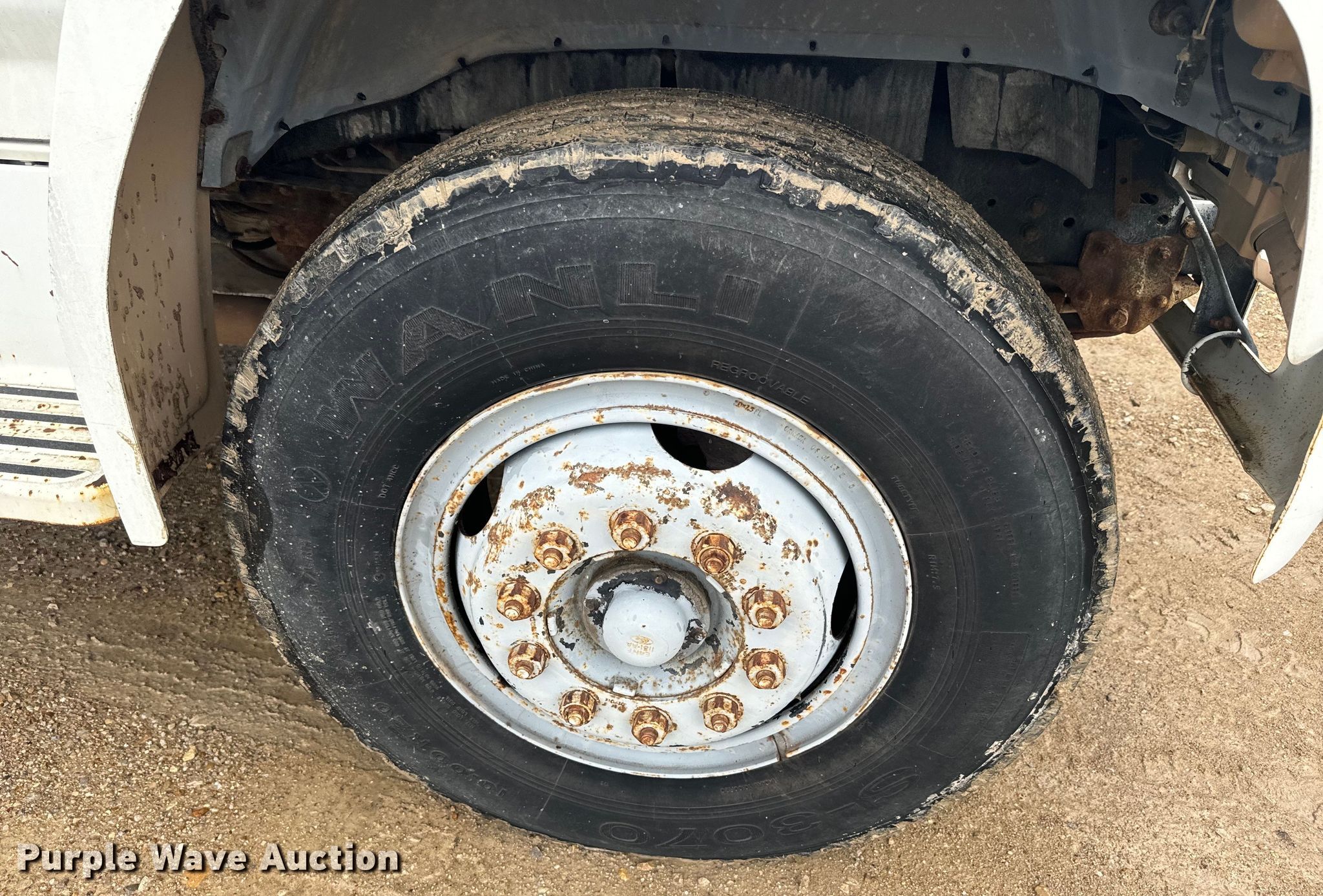 1993 Ford F700 dump flatbed truck. Miles: 52,686 on odometer, VIN: 1FDPK74C7PVA37111. Engine Cummins, Displacement: 5.9L, Cylinders: 6, Fuel type: Diesel. Transmission Automatic. Chassis Axles: Single, Suspension: Spring, Brakes: Hydraulic, PTO, GVWR: 26,500 lbs FAWR: 9,000 lbs, RAWR: 17,500 lbs. Interior Heat. Features Dump bed 16' L x 96" W, Side height: 34", Bed type: Steel, Ram: Dual, End gate: Manual. Tires Size: 10.00R20. Notes Non-operational scissor function on bed, Brake buzzer issues. Kansas title. Title distribution may be delayed up to 30 days from verification of funds. Manhattan, KS 66502