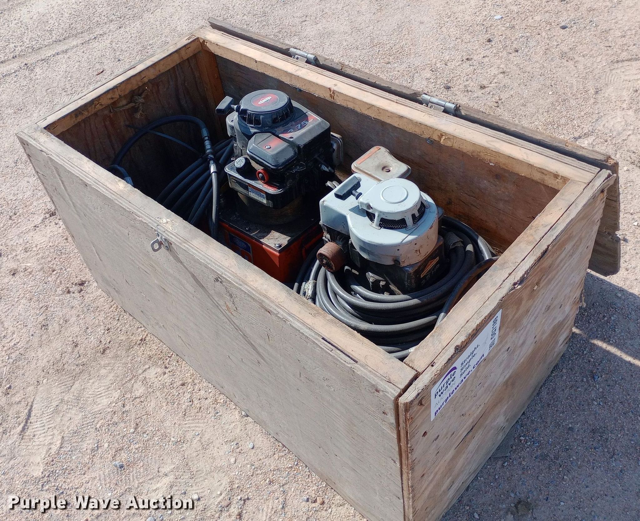 Purple Wave is selling a used Tools in Kansas. This item is a Elco hydraulic power unit with breaker with the following: Briggs & Stratton, Cylinders: 1, Fuel type: Gas, HP: 3.75, Briggs & Stratton, Cylinders: 1, Fuel type: Gas, HP: 3.5