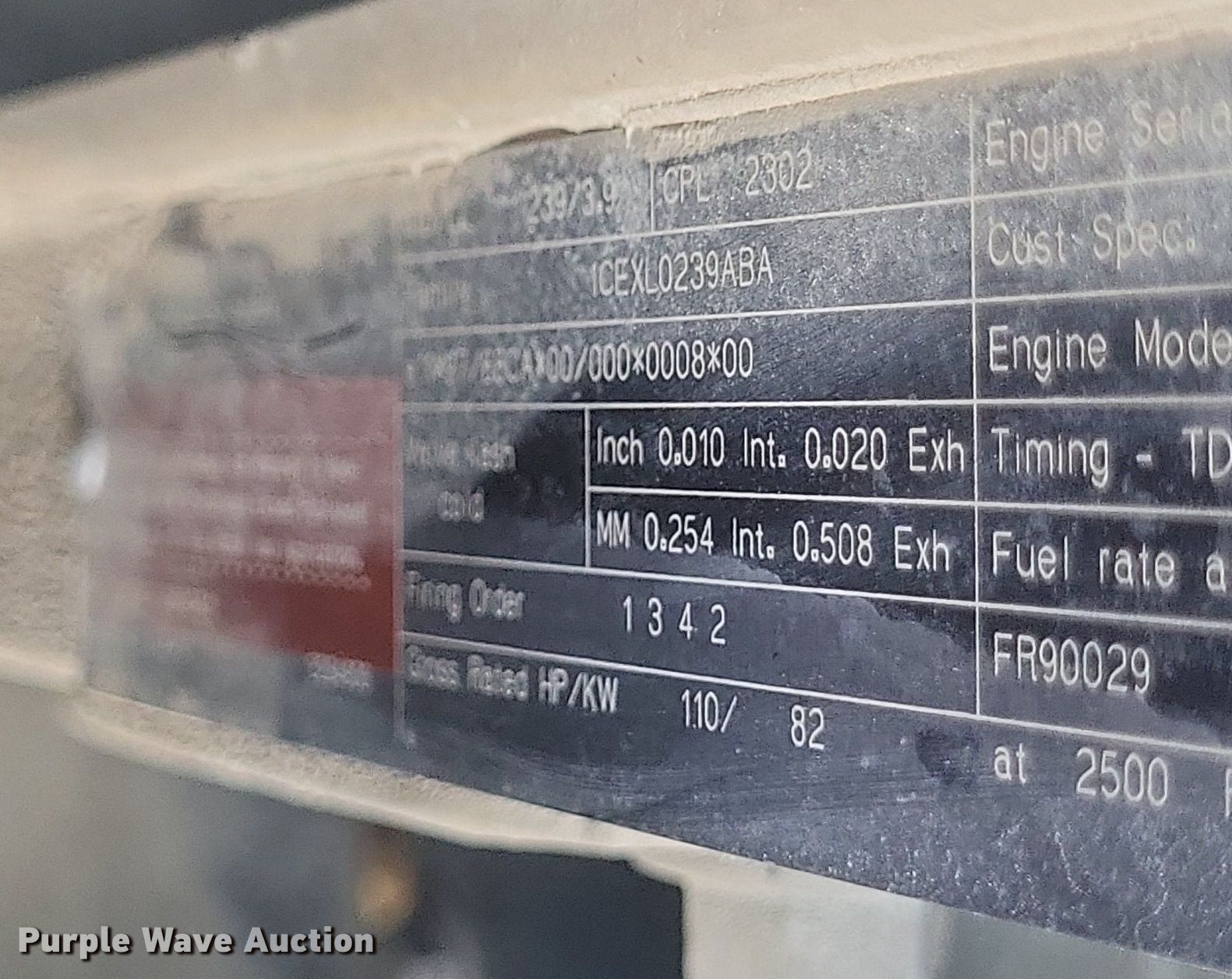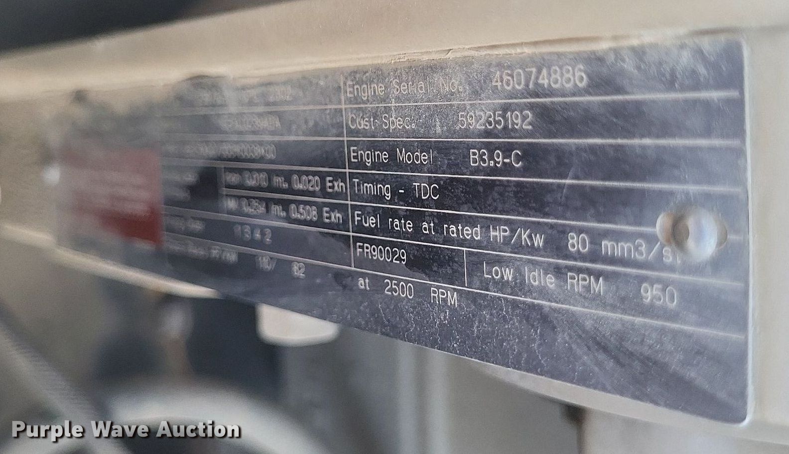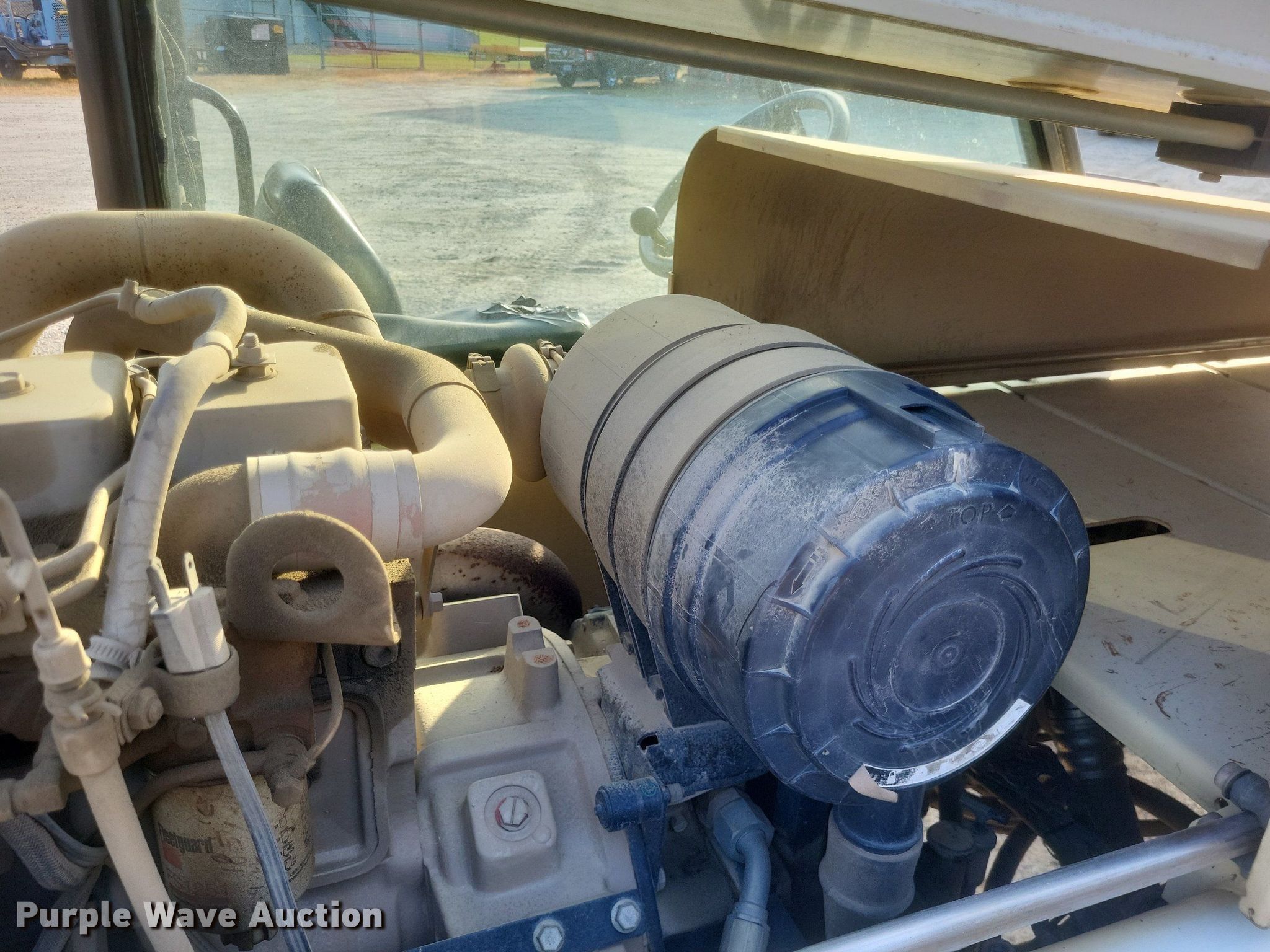 2001 Ingersoll-Rand VR-1044 telehandler. Hours: 2,011 on meter, Serial: 167245, Unit #: 5950. Engine Cummins B3.9-C, Displacement: 3.9L, Cylinders: 4, Fuel type: Diesel. Transmission Powershift, Four wheel drive. Operators station Canopy, Steering: Crab, Four wheel. Features Maximum lift capacity: 8,000 lbs, Maximum lift height: 45', Boom stages: 3, Fork length: 59", Hydraulic leveling. Tires Size: 13.00-24. Willow Construction Inc. Powder Springs, GA 30127