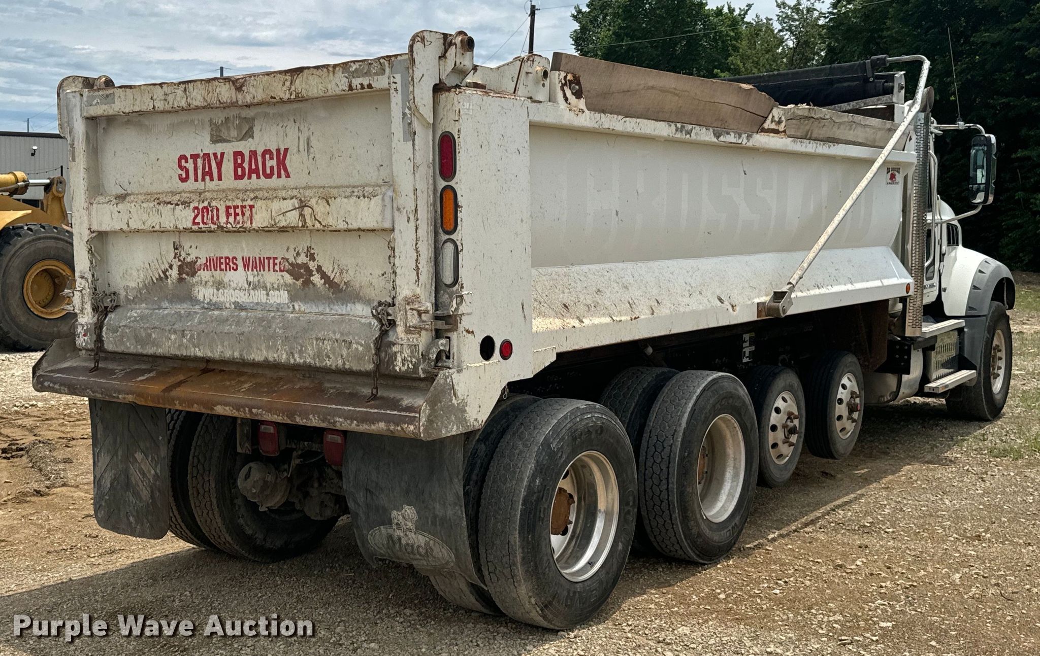2017 Mack GU713 dump truck. Miles: 313,907 on odometer, VIN: 1M2AX04C9HM034815. Engine Mack MP7, Displacement: 10.8L, Cylinders: 6, Fuel type: Diesel, Engine brake. Transmission Allison, Automatic. Chassis Axles: 4, Pusher axle Steerable, Differential lock: Full, Suspension: Spring over walking beam, Brakes: Air, PTO, GVWR: 66,000 lbs FAWR: 23,000 lbs, RAWR: 23,000 lbs. Interior AC, heat, Heated mirrors, Cruise control, Brake controller. Features Dump bed Ox Bodies, 18' L x 96" W, Side height: 42", Side board height: 9", Bed type: Steel, Barrel, Roll tarp, Ram: Single, End gate: Air operated. Tires Front: 425/65R22.5, Rear: 11R22.5, Lift axle: 215/75R17.5. Oklahoma title. Crossland Heavy Contractors Inc.. Columbus, KS 66725