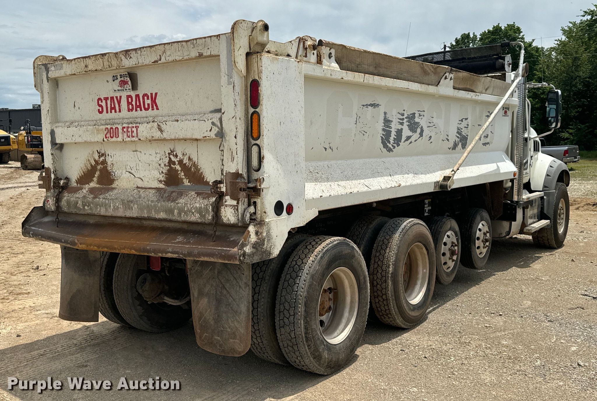 2017 Mack GU713 dump truck. Miles: 290,253 on odometer, VIN: 1M2AX04C7HM034814. Engine Mack MP7, Displacement: 10.8L, Cylinders: 6, Fuel type: Diesel. Transmission Allison, Automatic. Chassis Axles: 4, Pusher axle Steerable, Differential lock: Full, Suspension: Spring over walking beam, Brakes: Air, PTO, GVWR: 66,000 lbs FAWR: 20,000 lbs, RAWR: 23,000 lbs, Lift axle GAWR: 23,000 lbs. Interior AC, heat, Heated mirrors, Cruise control, Brake controller. Features Dump bed Ox Bodies, 18' L x 96" W, Side height: 42", Side board height: 8", Bed type: Steel, Barrel, Roll tarp, Ram: Single, End gate: Air operated. Tires Front: 425/65R22.5, Rear: 11R22.5, Lift axle: 215/75R17.5. Oklahoma title. Crossland Heavy Contractors Inc.. Columbus, KS 66725