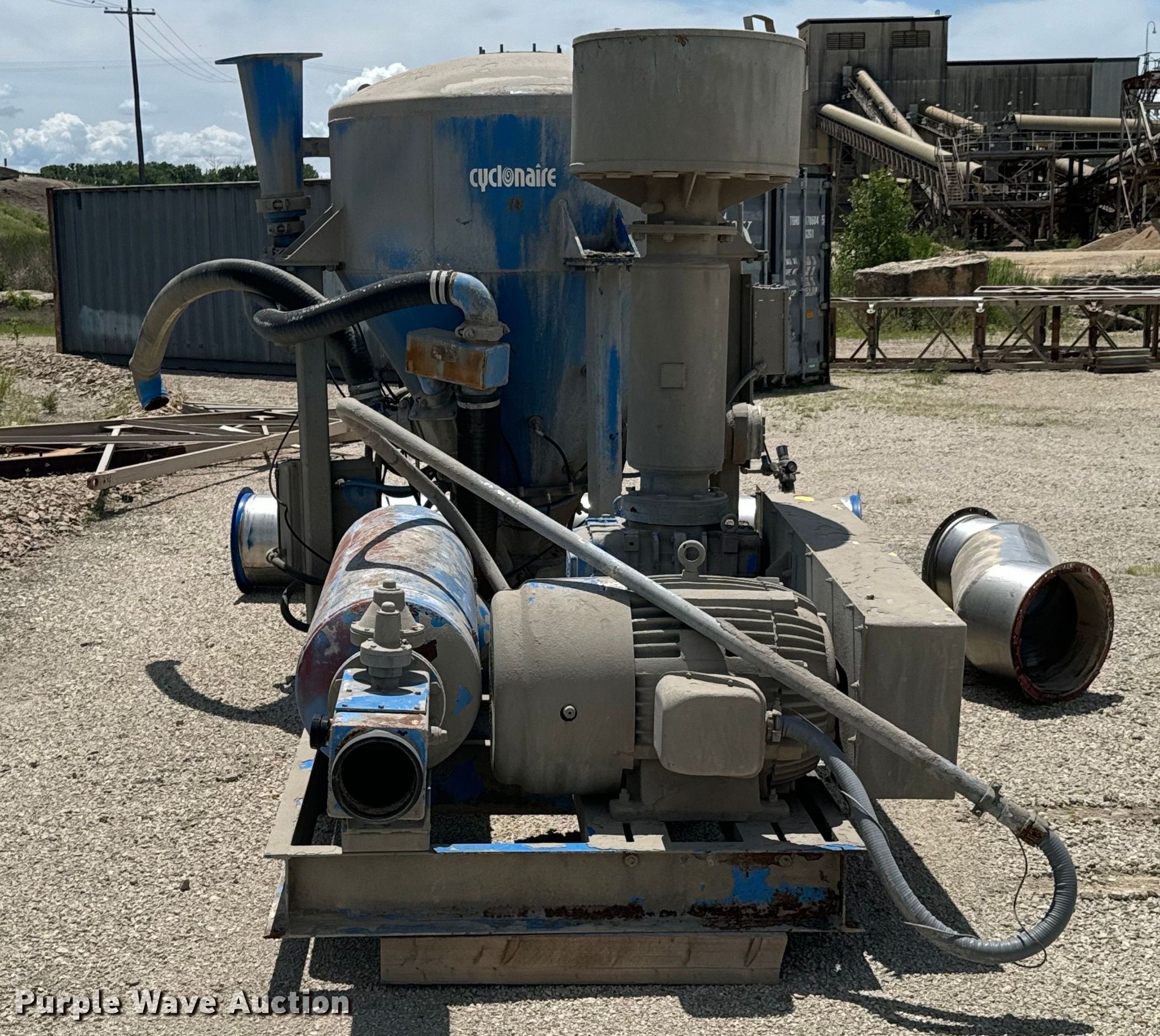 Purple Wave is selling a used Conveyor in Kansas. This item is a Cyclonaire pneumatic rail car unloader with the following: World Motor, HP: 125, Volts: 380/480, Phase: Three