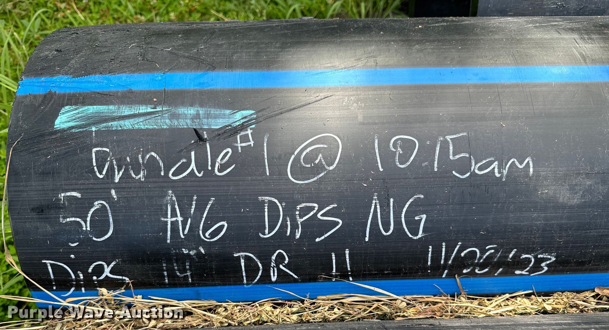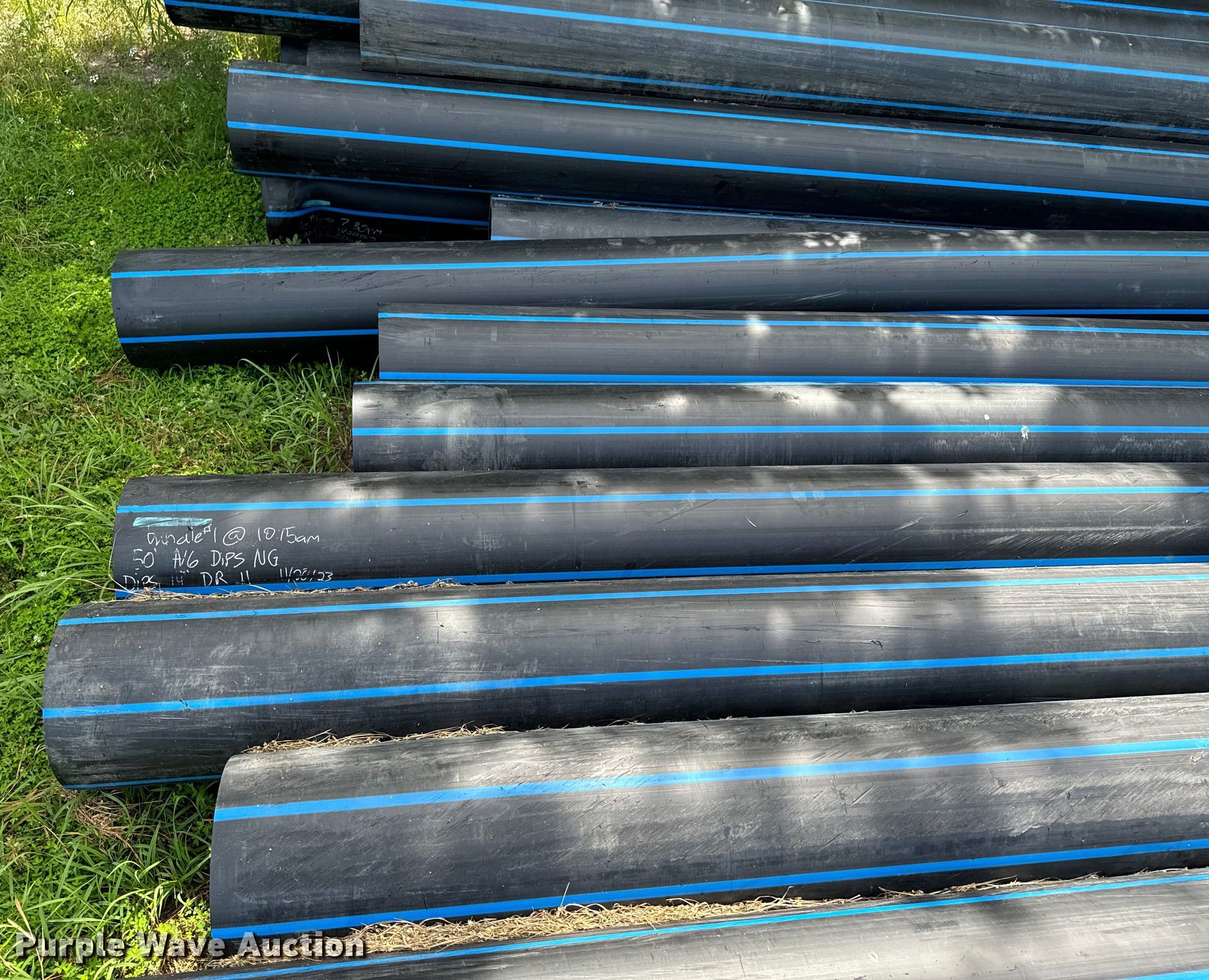 Purple Wave is selling a used Pipe in Oklahoma. This item is a (16) joints of DR11 poly pipe with the following: 50'L x 14" diameter, Total linear feet: 800'