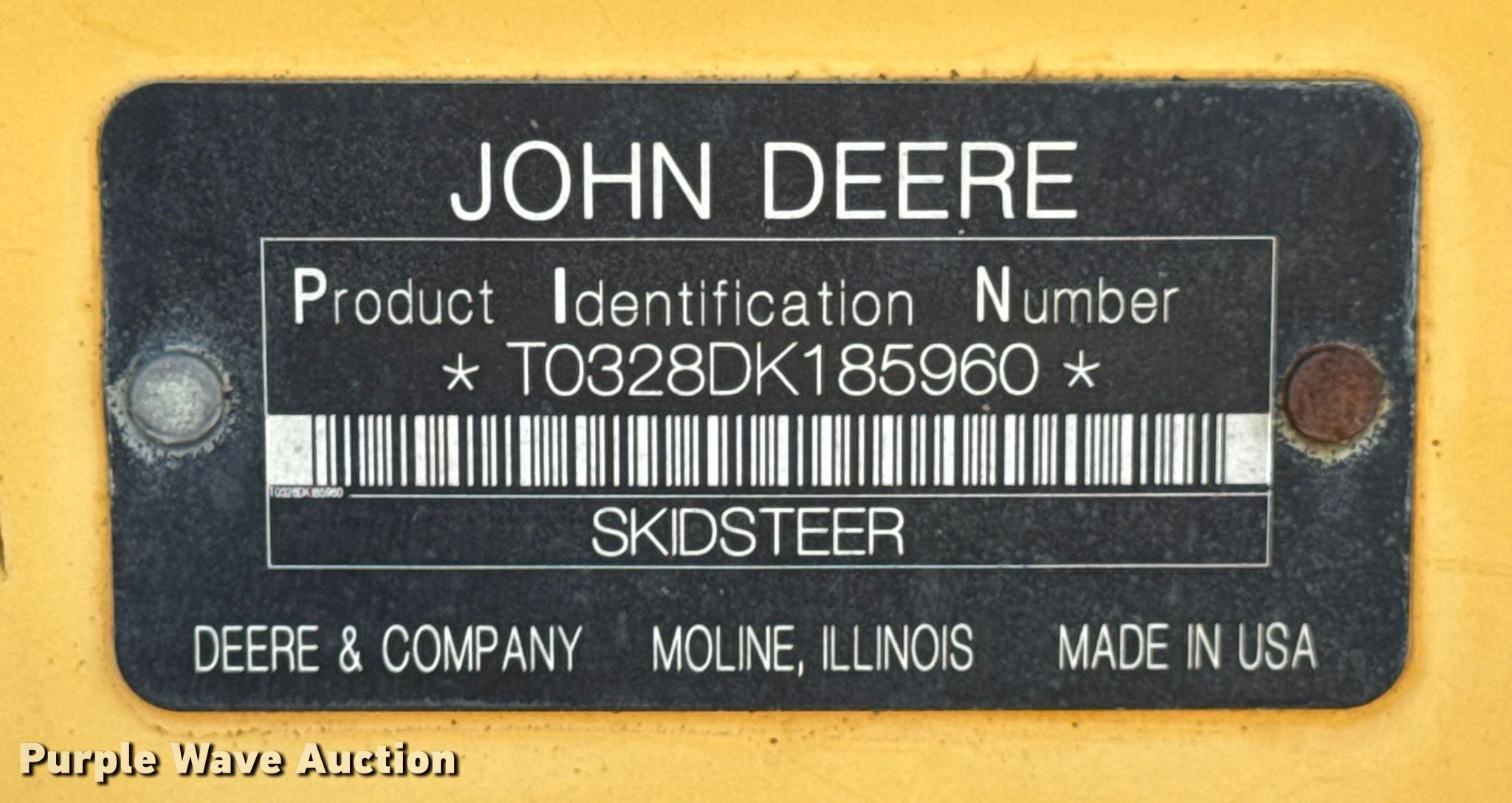 Purple Wave is selling a used Skid Steer Loader in Kansas. This item is a 2010 John Deere 328D skid steer loader with the following: Hours: 947 on meter, Hour meter replaced at approx. 1,200 hours, Serial: T0328DK185960