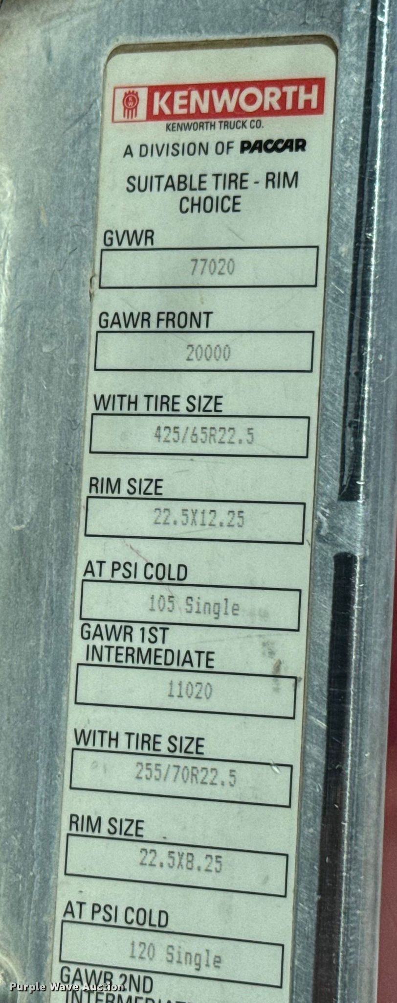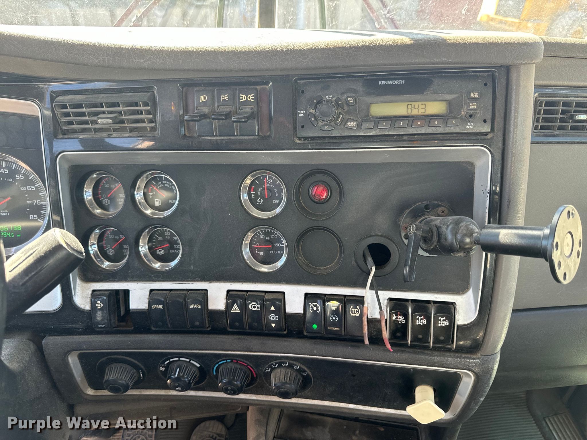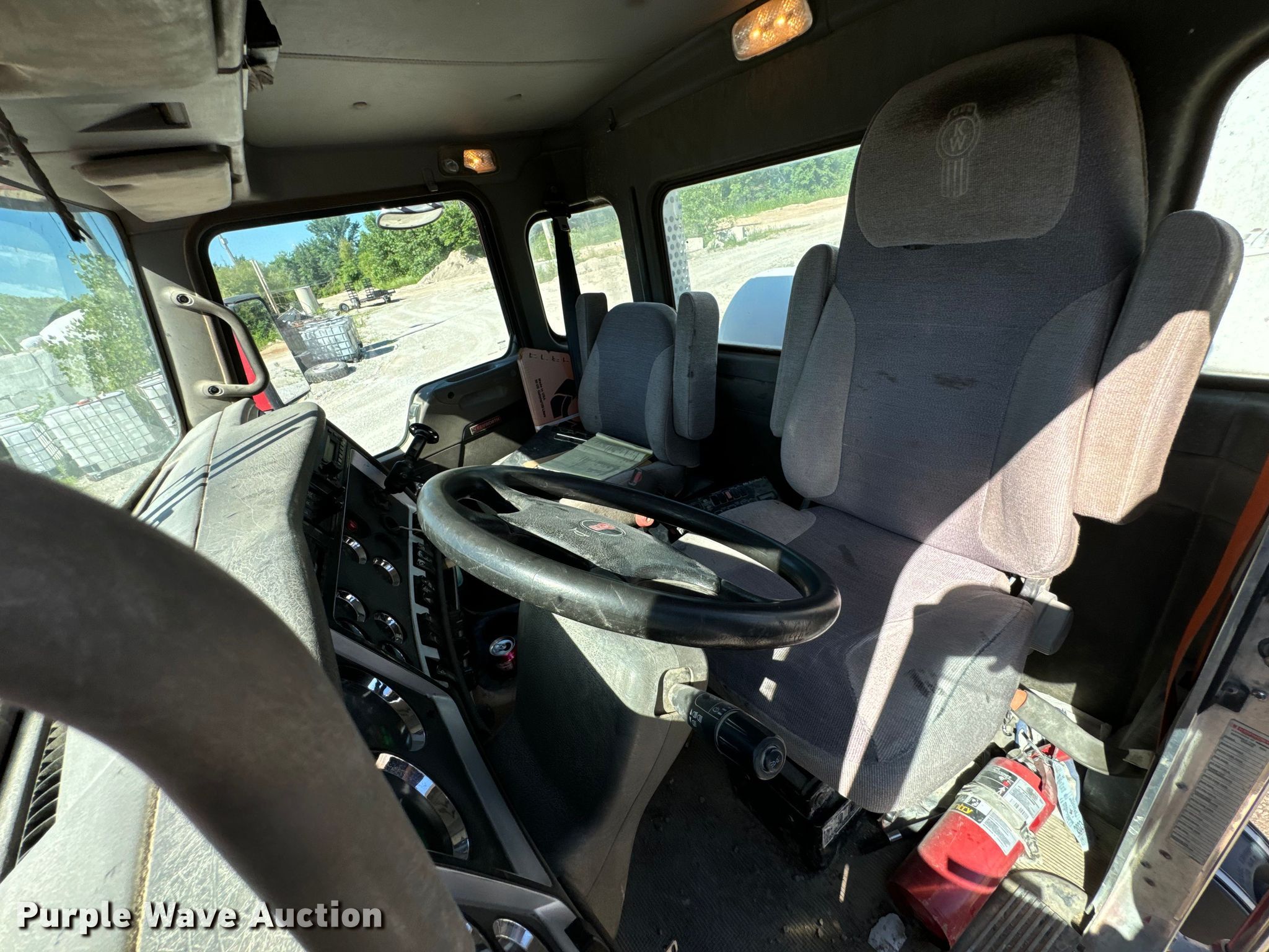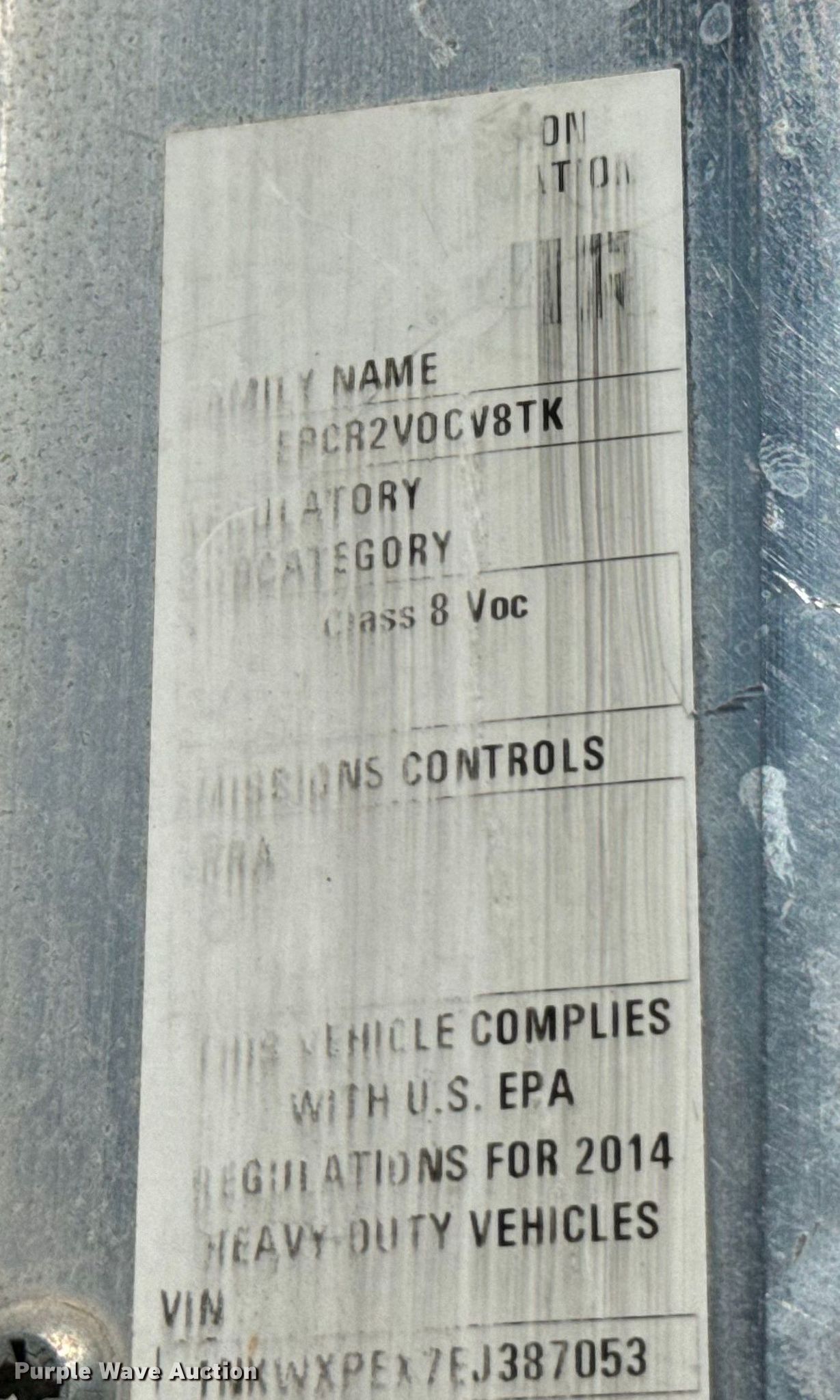 2014 Kenworth W900 ready mix truck. Miles: 106,138 on odometer, Hours: 11,776 on meter, VIN: 1NKWXPEX7EJ387053. Engine Paccar MX-13, Displacement: 12.9L, Cylinders: 6, Fuel type: Diesel, Engine brake. Transmission Eaton Fuller, Manual, Speed: 11. Chassis Axles: 4, Pusher axle Steerable, Tag axle, Differential lock: Full, Suspension: Spring over walking beam, Brakes: Air, PTO, GVWR: 77,020 lbs FAWR: 20,000 lbs, IAWR: 23,000 lbs, RAWR: 23,000 lbs, Lift axle GAWR: 11,020 lbs. Interior AC, Heat, Power windows, Power locks, Cruise control. Features Mixer TMMB, Capacity: 11 cu.yd., Discharge: Rear, In-cab controls, Rear drum controls, Chute Extensions: 3, Chute type: Aluminum.. Tires Front: 425/65R22.5, Rear: 11R22.5, Lift axle: 255/70R22.5. Missouri title. Joplin Concrete Company Inc. Joplin, MO 64801