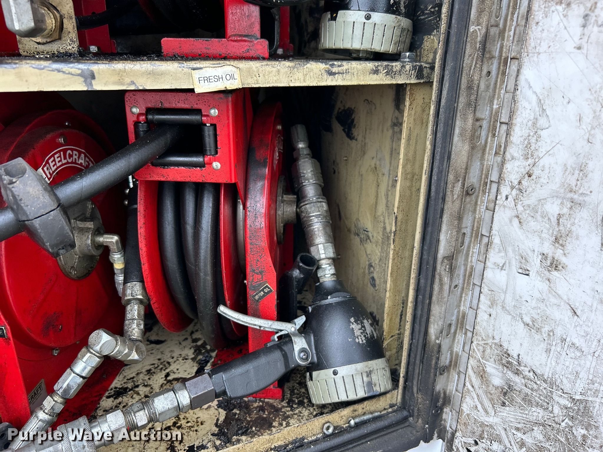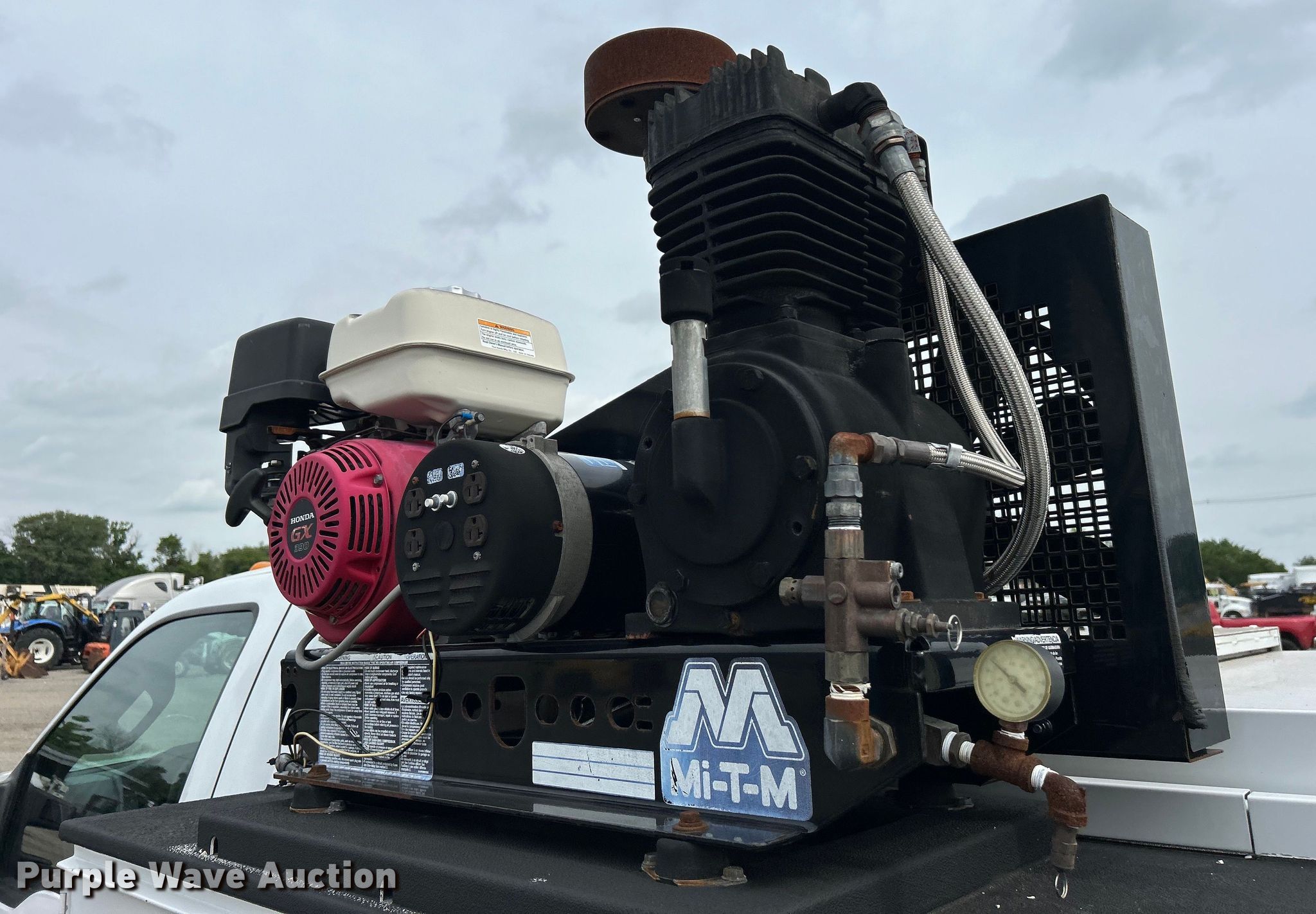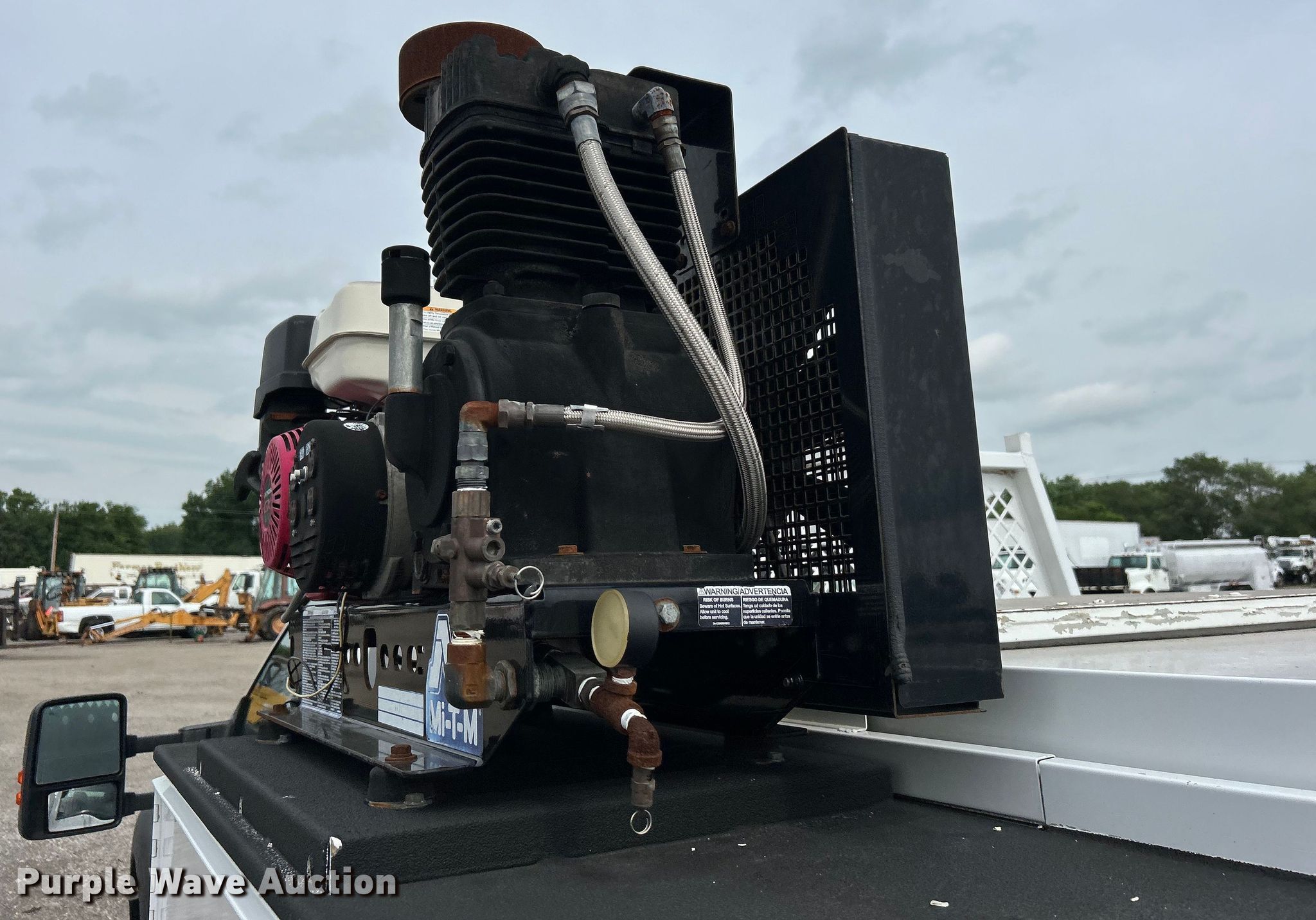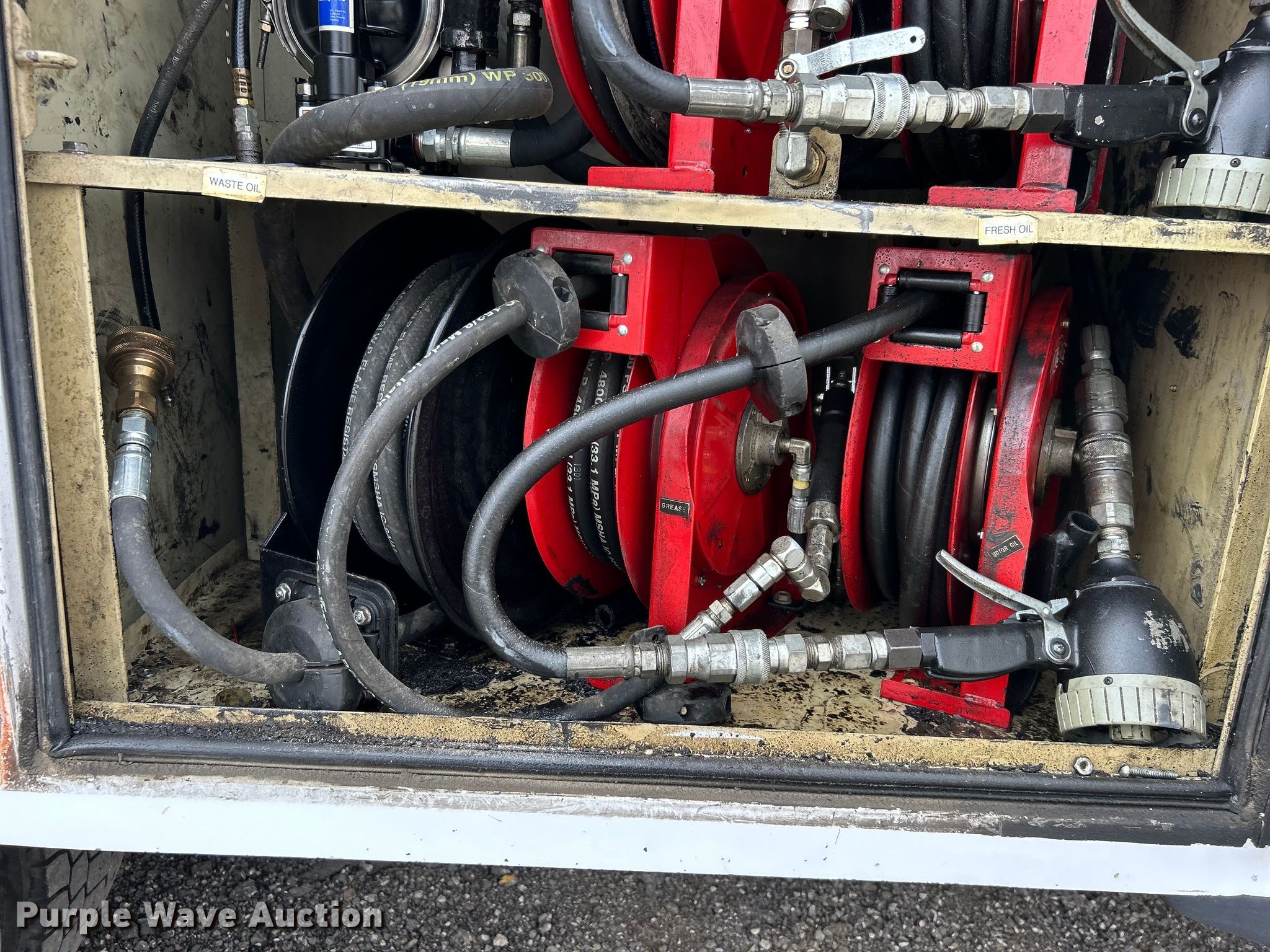2014 Ford F450 Super Duty utility / service truck. Miles: 139,930 on odometer, VIN: 1FDUF4GY5EEA61868. Engine Displacement: 6.8L, Cylinders: 10, Fuel type: Gas. Transmission Automatic. Chassis Axles: Single, Suspension: Spring, Brakes: Hydraulic, GVWR: 16,500 lbs, Wheelbase: 141". Interior AC, Heat, Heated mirrors, Power windows, Power locks, Cruise control, Auxiliary controls, Brake controller. Features Bed Knapheide, 107" L x 95" W, Air compressor Mi-T-M, Honda GX390, Oil/lube system Hose reels, Nozzles, Pump. Tires Size: 225/70R19.5. Notes Windshield chipped or cracked. Oklahoma title. 15107 North 137th East Avenue. Collinsville, OK 74021