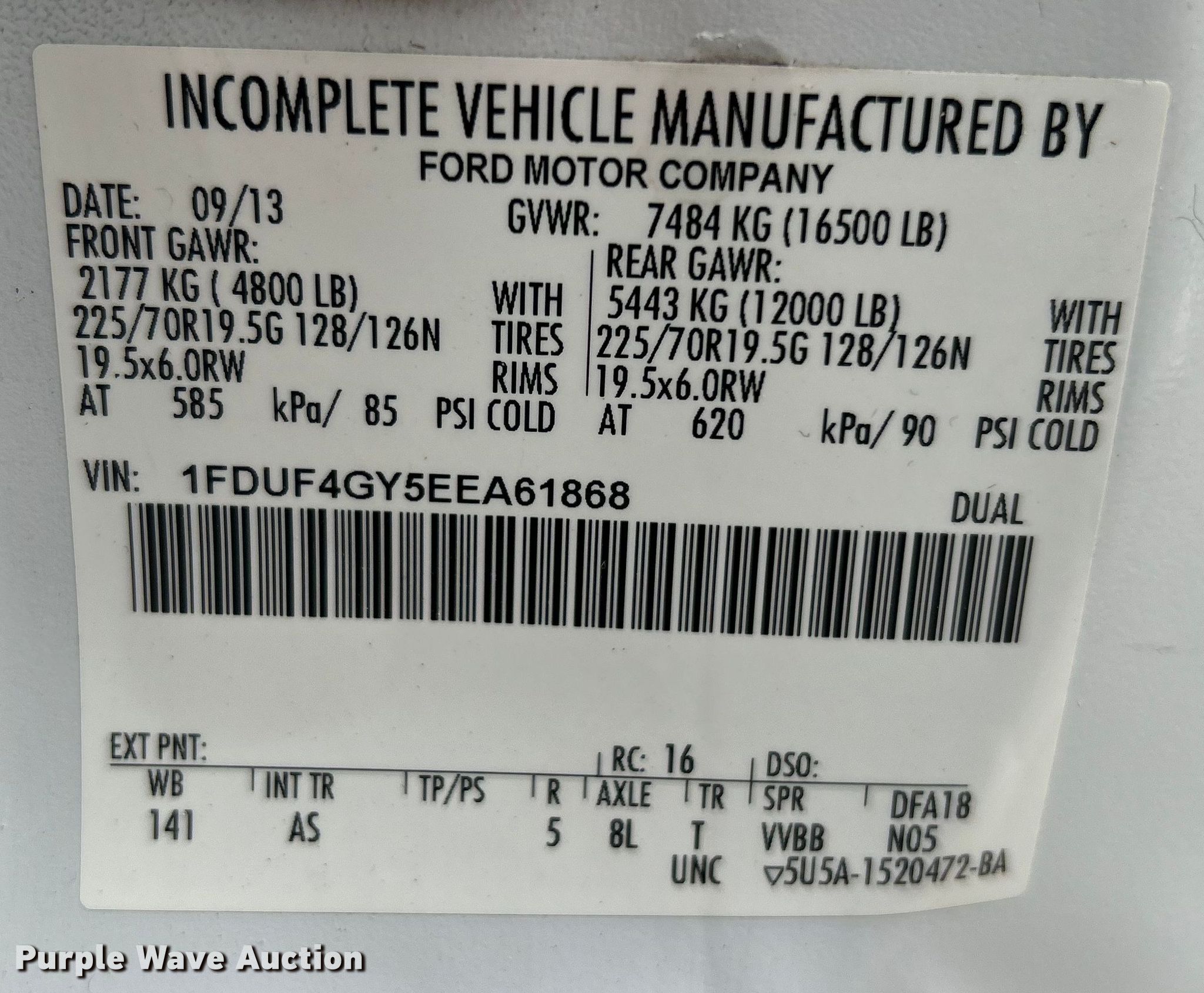 • VIN: 1FDUF4GY5EEA61868
