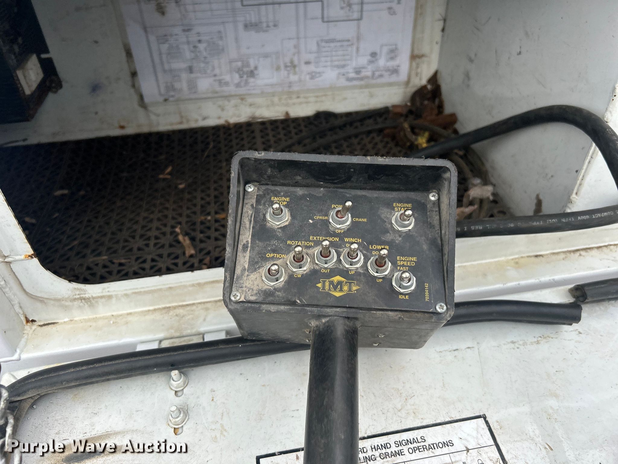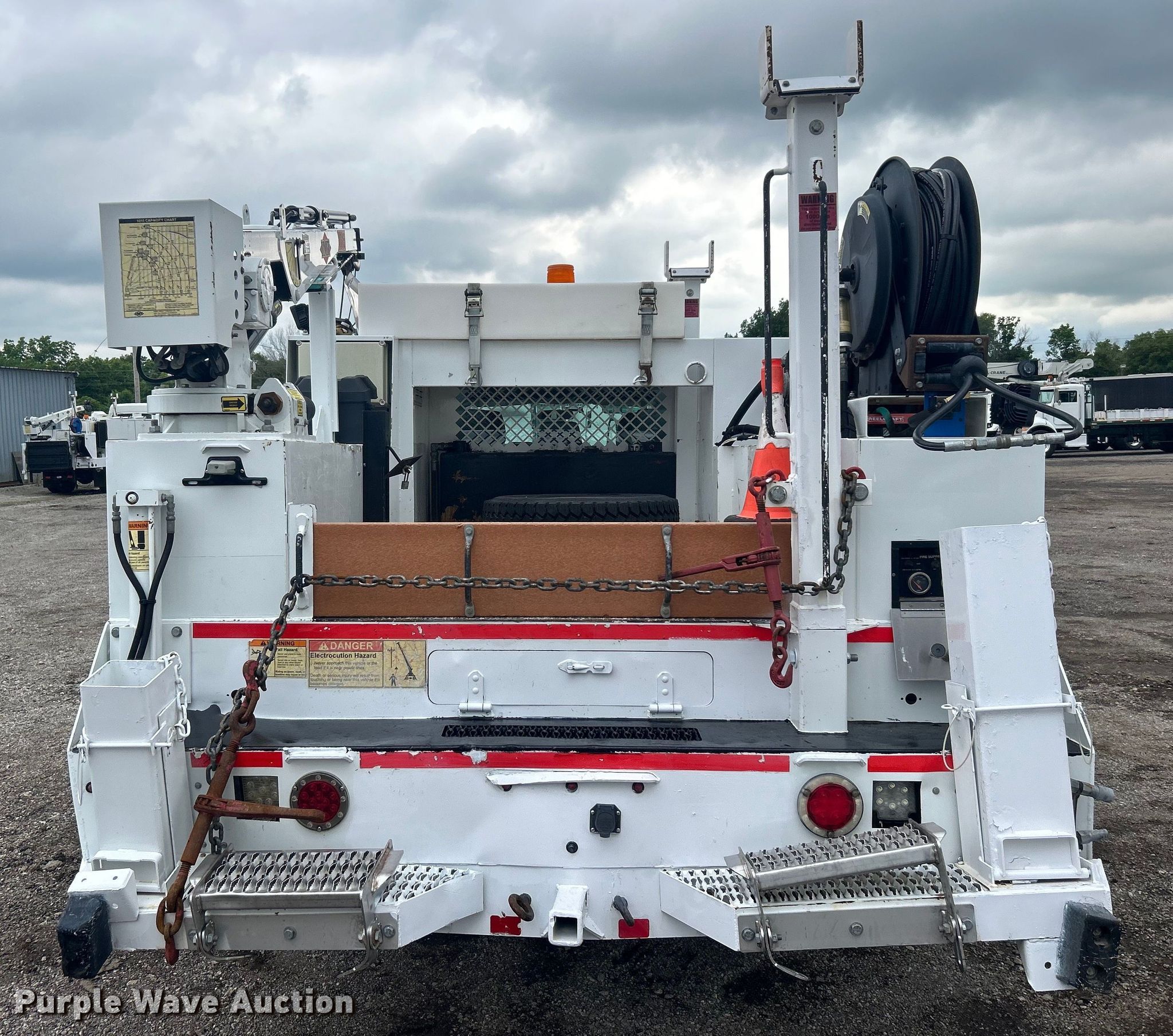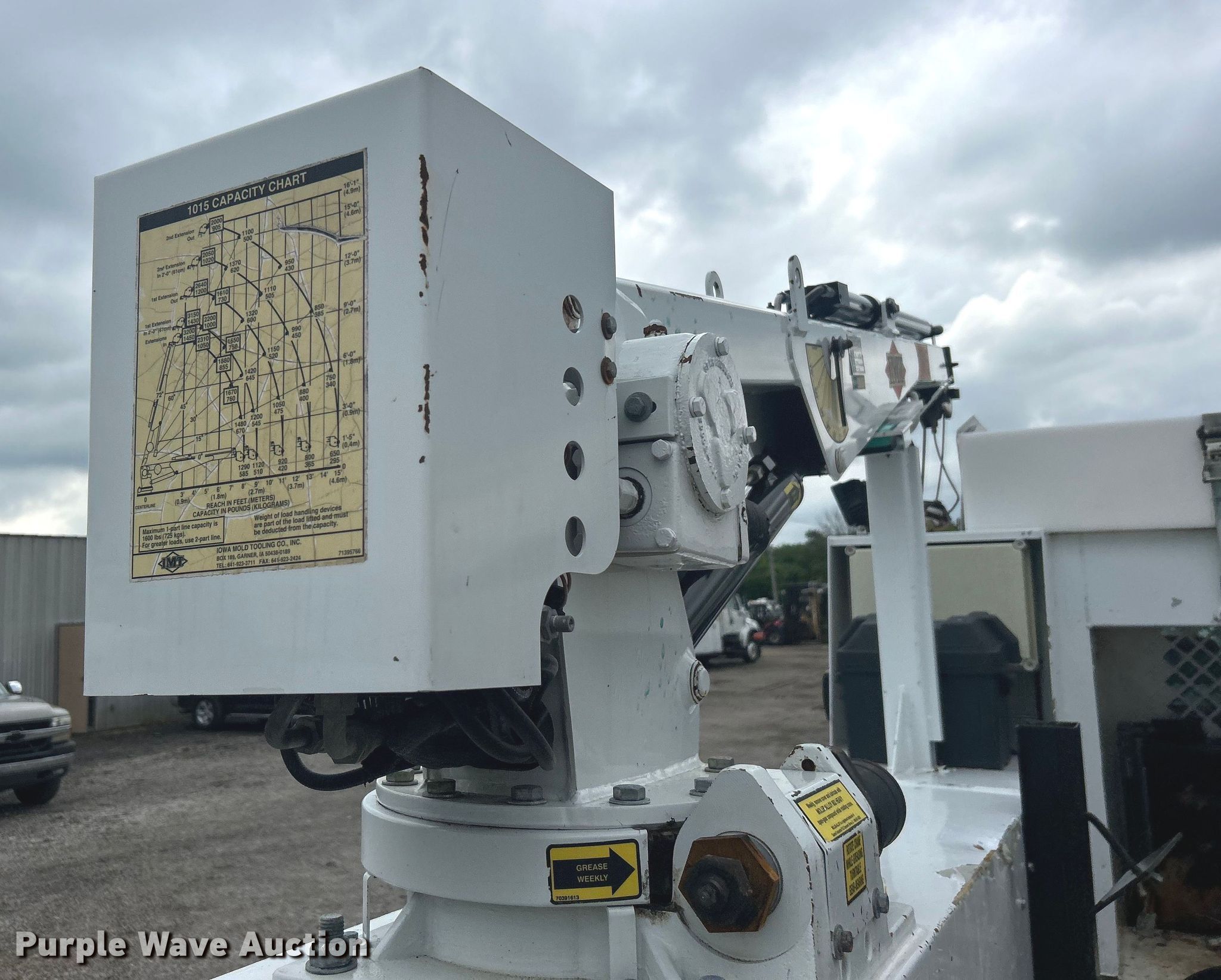 2015 Ford F550 Super Duty Crew Cab utility / service truck. Miles: 105,578 on odometer, VIN: 1FD0W5HT7FED00362. Engine Displacement: 6.7L, Cylinders: 8, Fuel type: Diesel. Transmission Automatic. Chassis Four wheel drive, Axles: Single, Suspension: Spring, Brakes: Hydraulic, PTO, GVWR: 19,500 lbs, Wheelbase: 176". Interior AC, Heat, Cruise control, Auxiliary controls, Brake controller, Back up camera. Features Bed 9' 2" L x 94" W, Oil/lube system Hose reels, Crane IMT 1015, Maximum boom length: 16' Maximum lift capacity: 3,200 lbs.. Tires Size: 225/70R19.5. Notes Windshield chipped or cracked. Oklahoma title. 15107 North 137th East Avenue. Collinsville, OK 74021