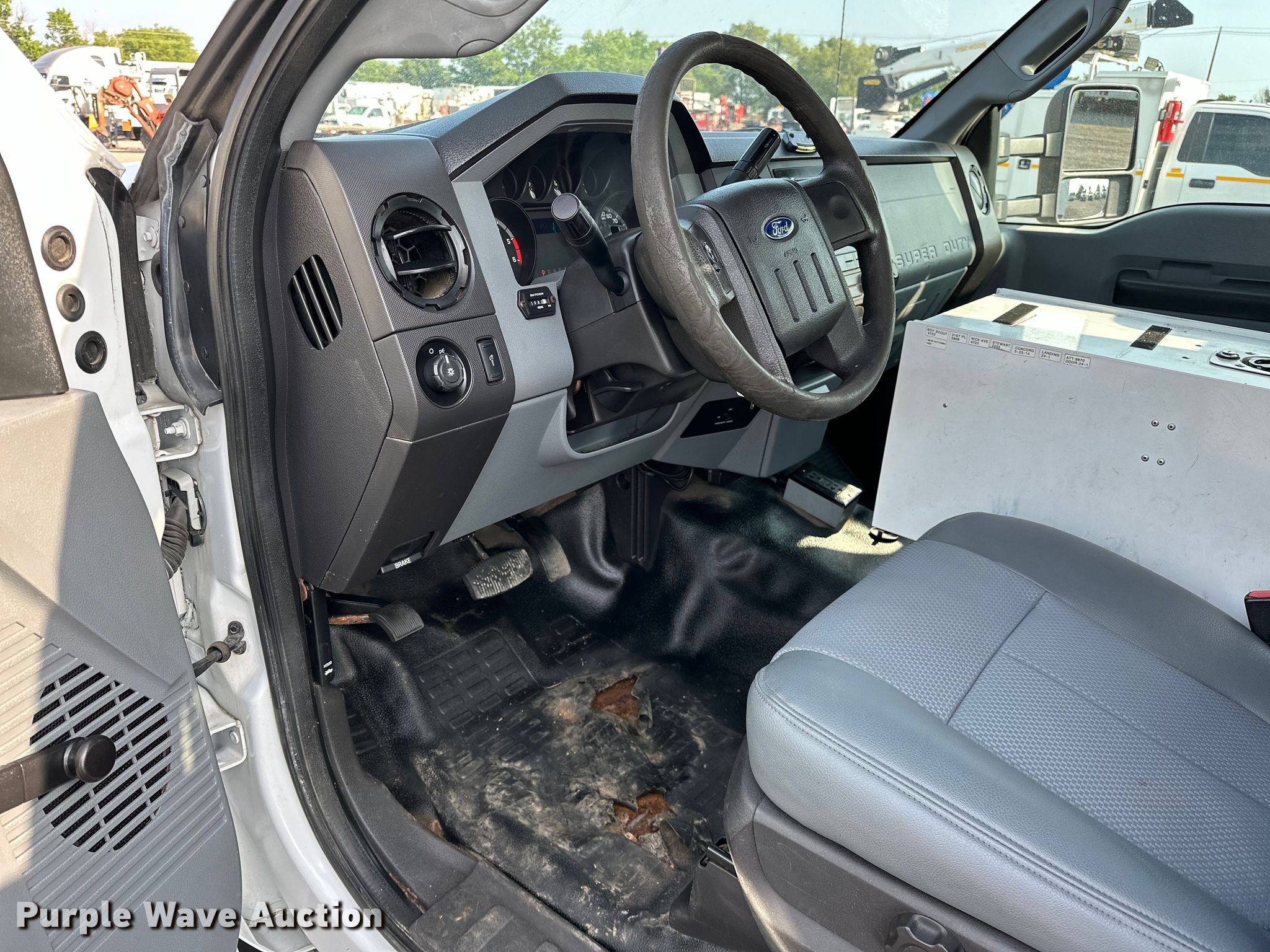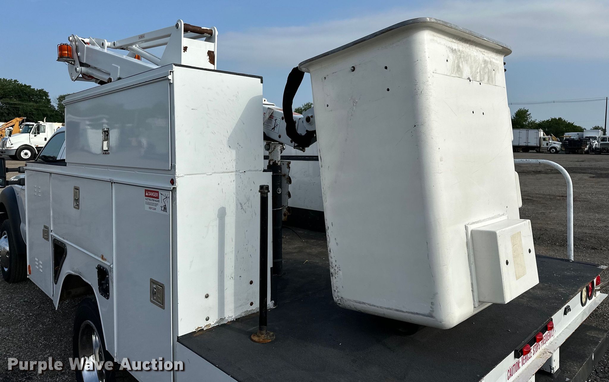 Purple Wave is selling a used Bucket Truck in Oklahoma. This item is a 2012 Ford F450 Super Duty bucket truck with the following: Miles: 188,621 on odometer, VIN: 1FDUF4GY2CED19759