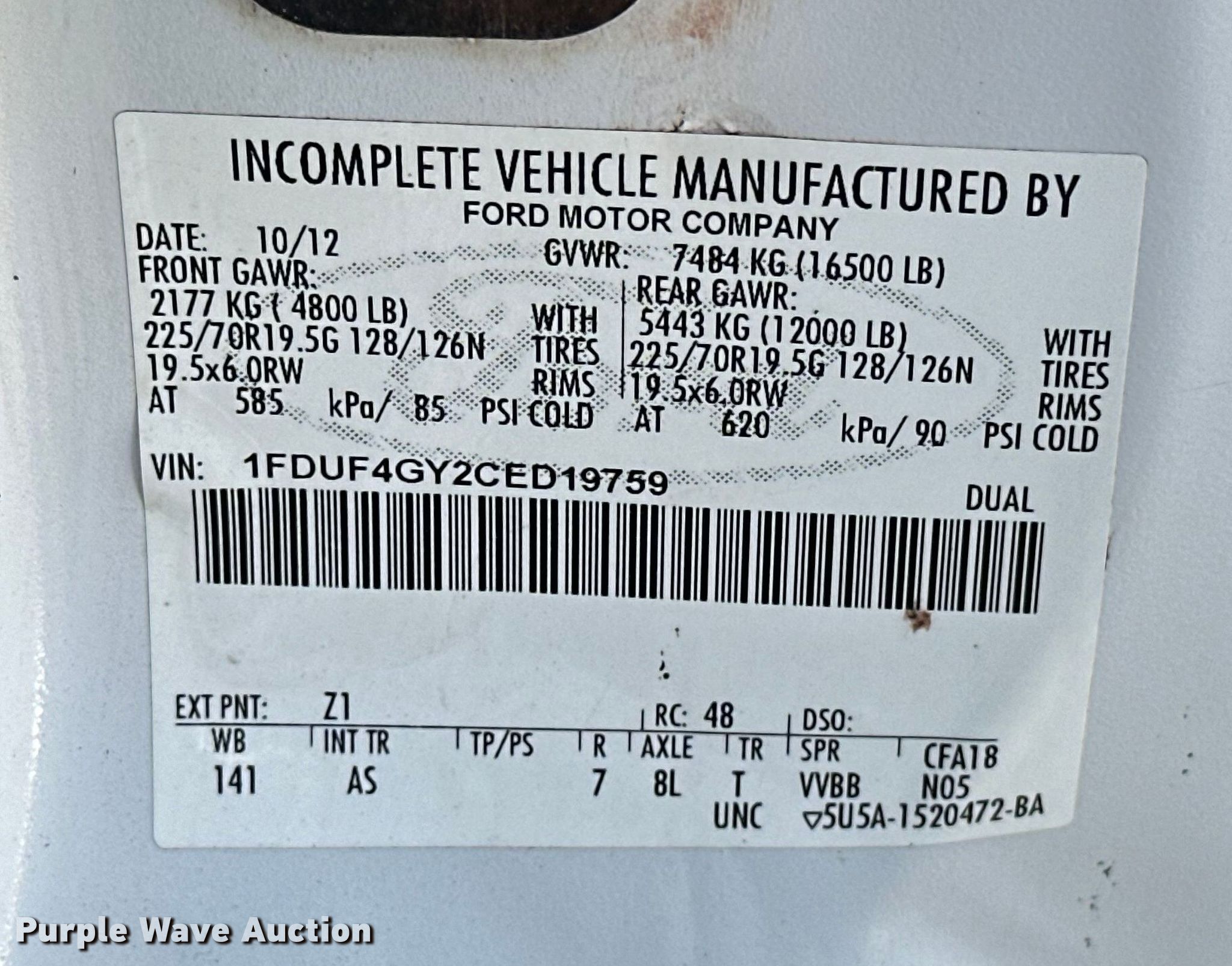 - VIN: 1FDUF4GY2CED19759