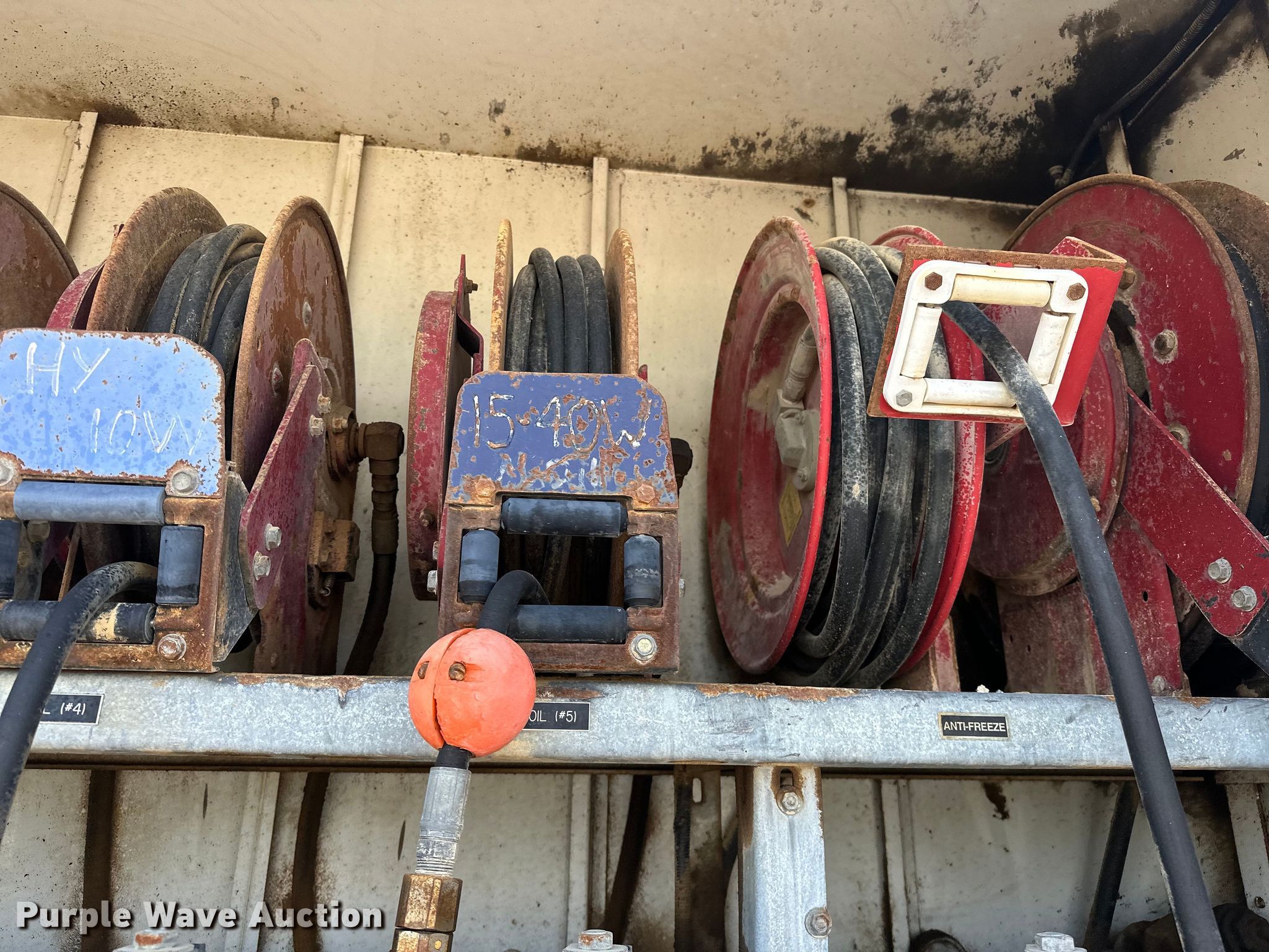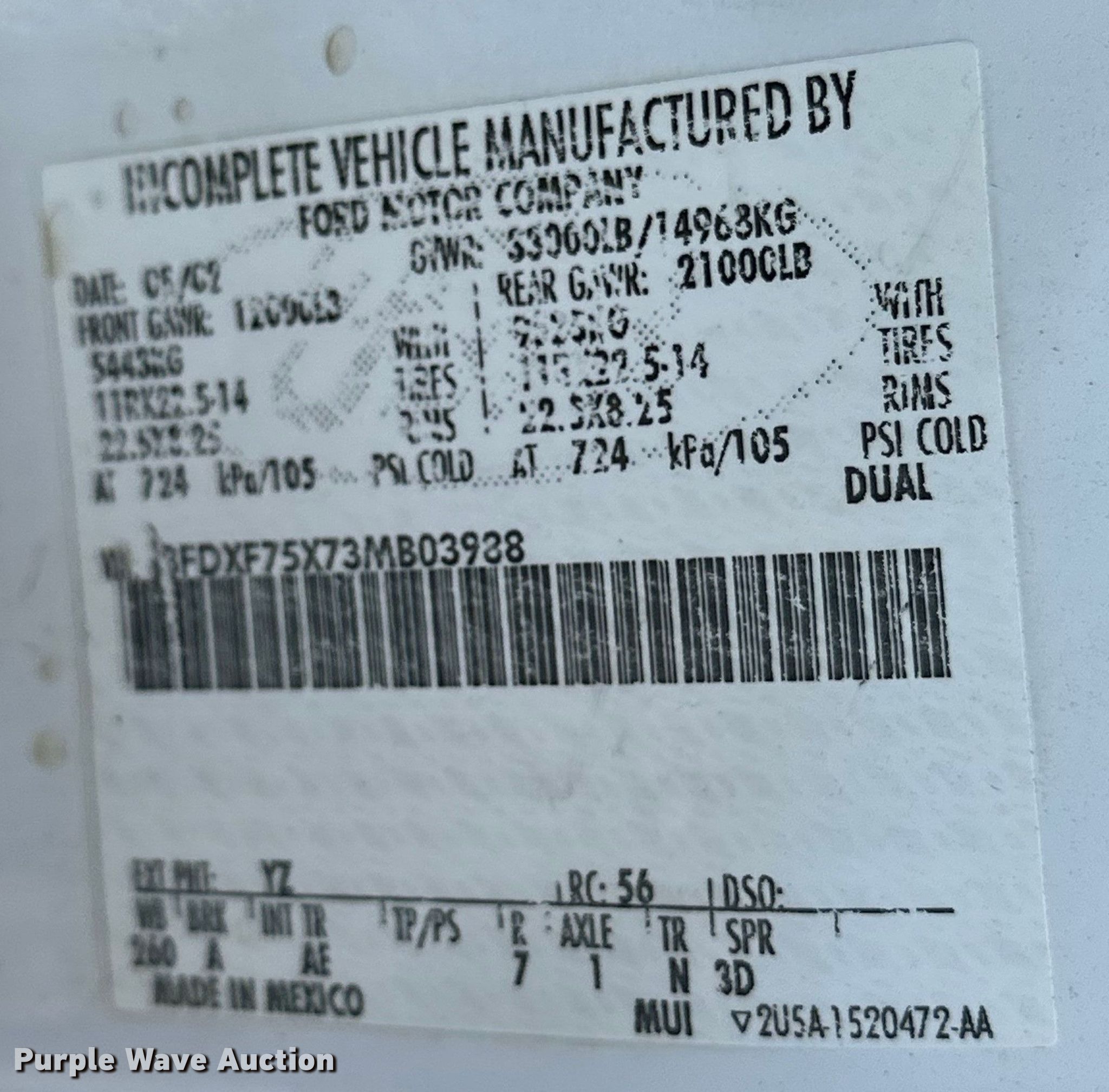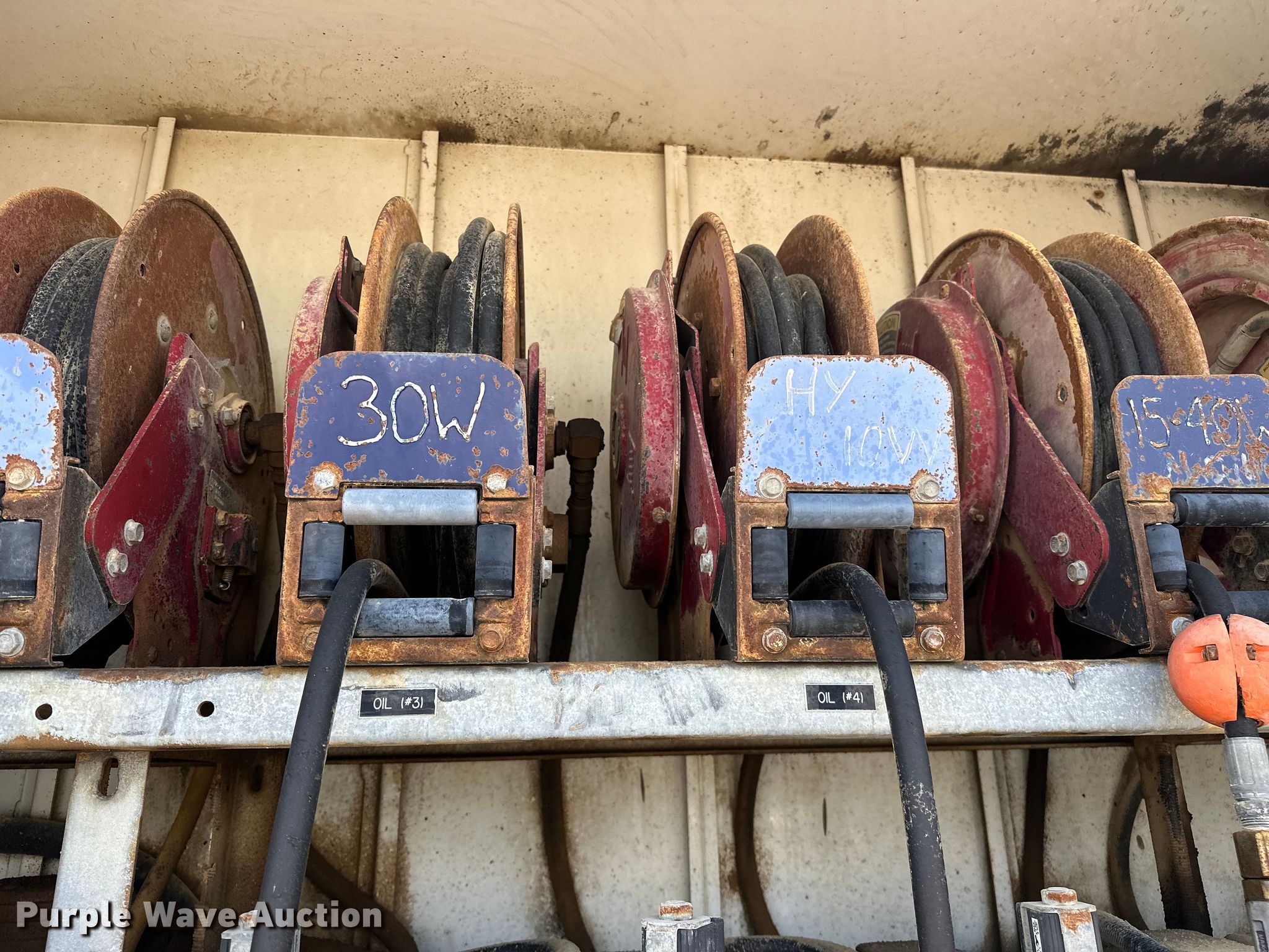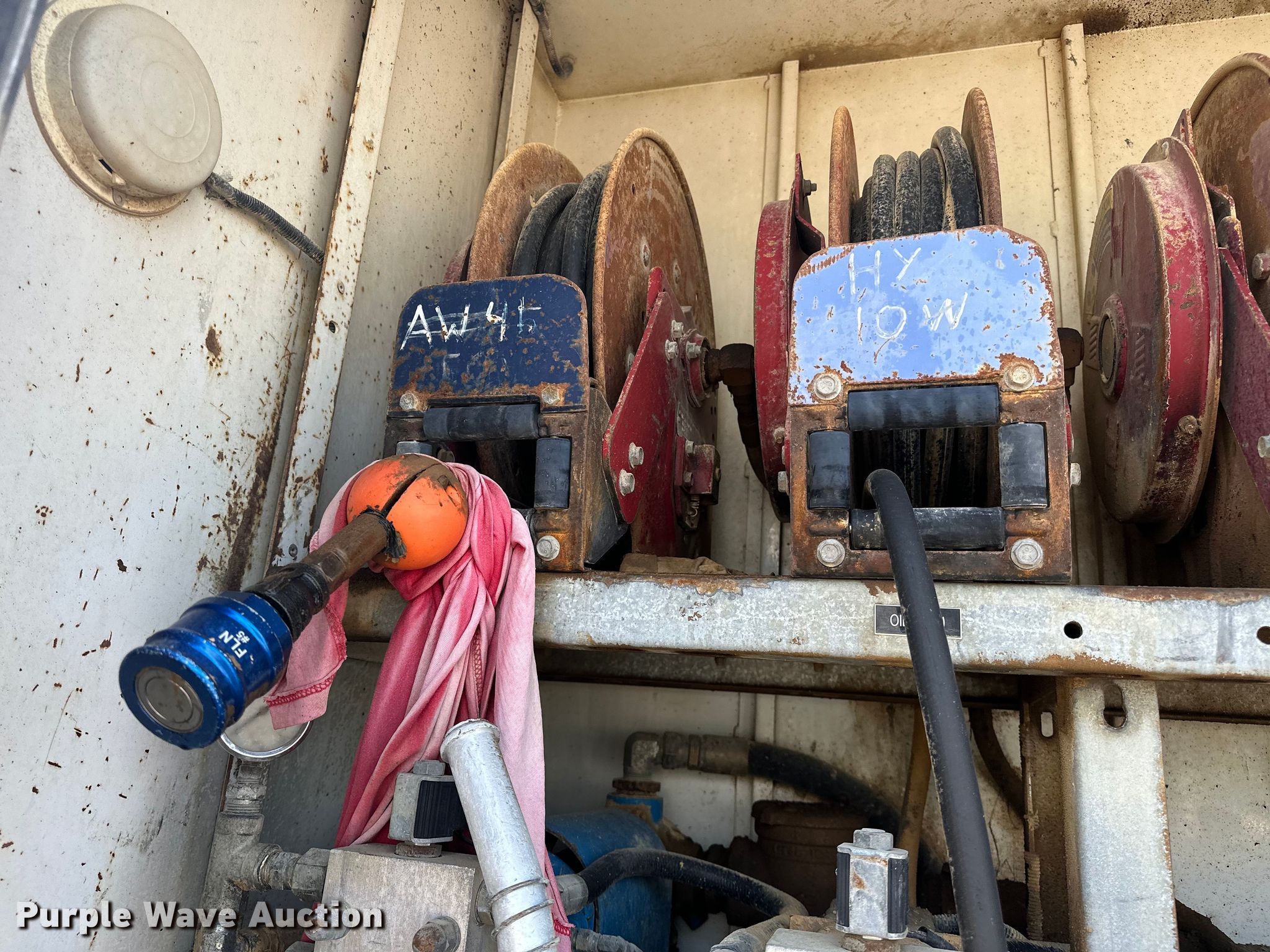 2003 Ford F750 Super Duty fuel / lube truck. Miles: 92,248 on odometer, VIN: 3FDXF75X73MB03988. Engine Cummins ISB 260, Displacement: 5.9L, Cylinders: 6, Fuel type: Diesel, HP: 260. Transmission Manual, Speed: 5. Chassis Axles: Single, Suspension: Spring, Brakes: Air, PTO, GVWR: 33,000 lbs. Interior AC, Heat, Cruise control. Features Bed Lube Lube2K1017, 16' 9" L x 92" W, Oil/lube system Hose reels, Nozzles, Reservoirs Hydraulic fluid, Grease, Motor oil, Used oil, Fuel tank Nozzles, Pump.. Tires Size: 11R22.5. Oklahoma title. 15107 North 137th East Avenue. Collinsville, OK 74021