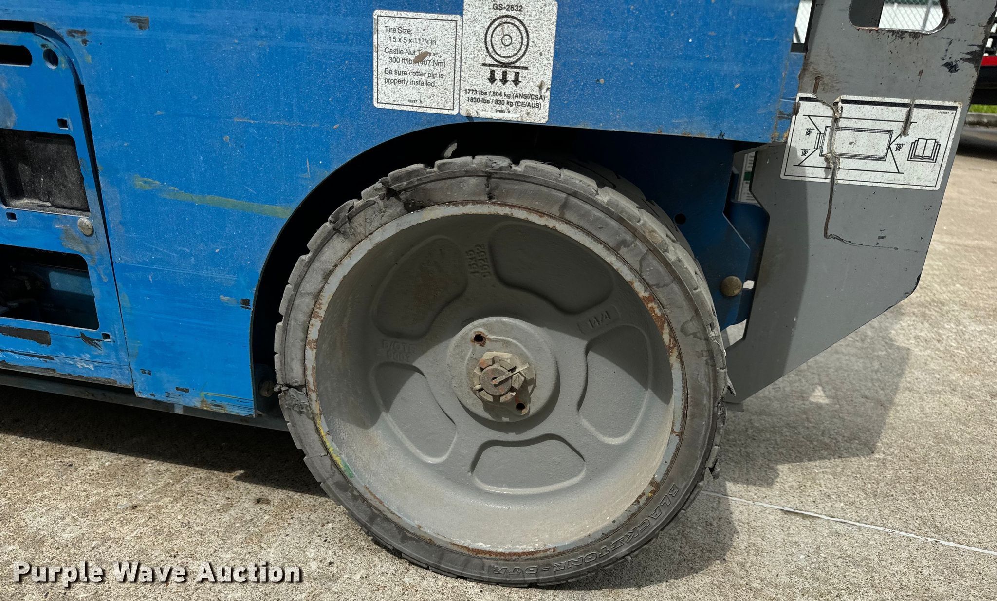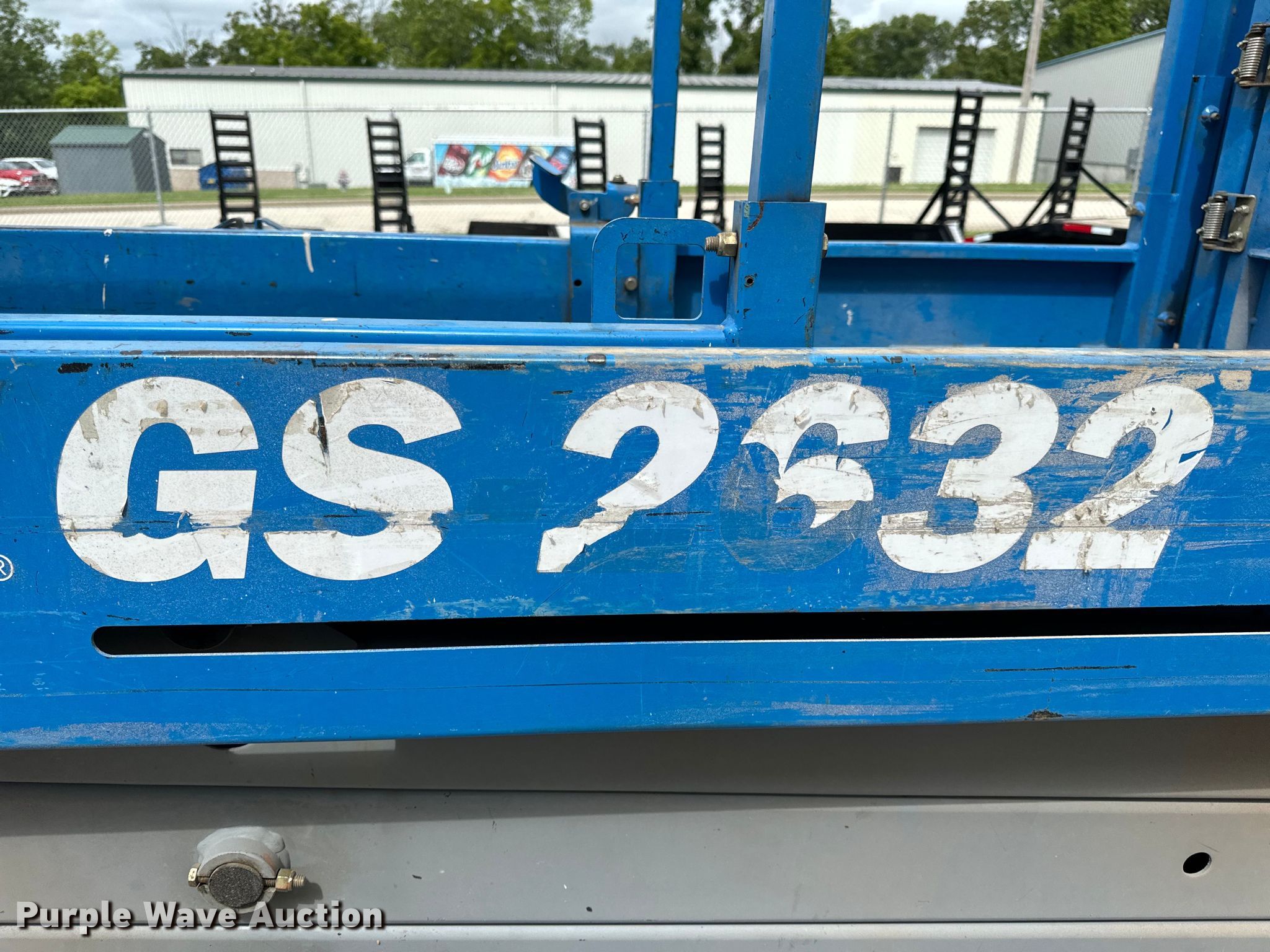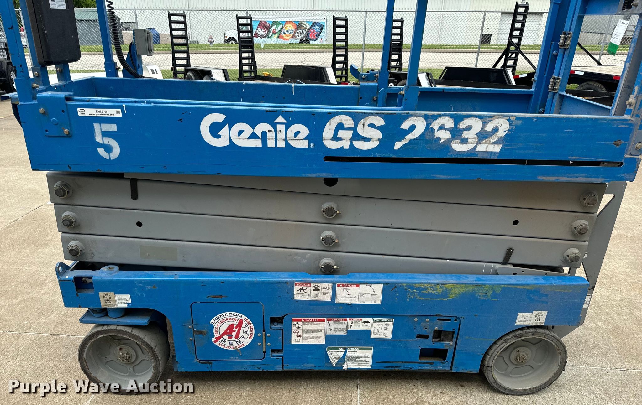 2015 Genie GS2632 scissor lift. Hours: 257 on meter, Serial: GS3215A-138123. Electric Motor Volts: 24. Features Maximum lift capacity: 500 lbs, Maximum lift height: 26', Platform: 125" L x 32" W, AC power outlet, Controls: Remote Control, Ground, Platform extensions: Manual, Safety alarm. Tires Tire size: 15X5, Solid, Non-marking. A-1 Tool & Equipment Rental. Jefferson City, MO 65101