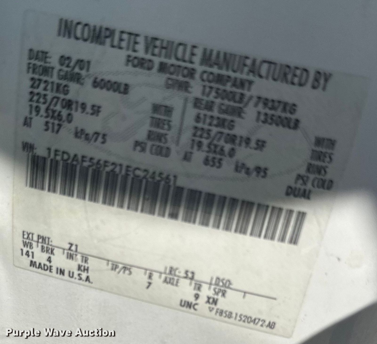 Purple Wave is selling a used Bucket Truck in Kansas. This item is a 2001 Ford F550 Super Duty XL bucket truck with the following: Miles: 140,118 on odometer, Hours: 5,913 on meter, VIN: 1FDAF56F21EC24561