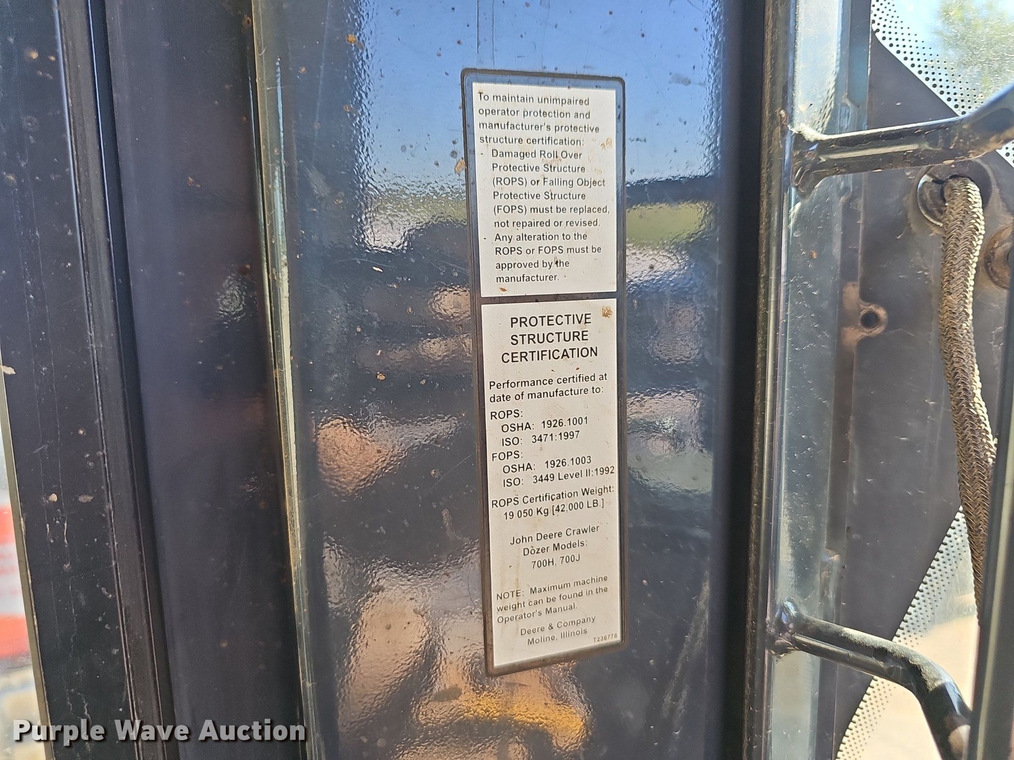 2009 John Deere 700J dozer. Hours: 10,674 on meter, Serial: T0700JX173343. Engine John Deere, Serial: SE6068L128652, Cylinders: 6, Fuel type: Diesel. Transmission Powershift, 3F - 3R. Operators station Enclosed cab, AC, heat, Steering: Joystick. Features Sweeps, Dozer blade Type: 6-way, Straight, Width: 11'. Tracks Width: 24", Grouser pads: Single, Bottom rollers: 7. View repairs. Arco Excavating. Bentonville, AR 72712