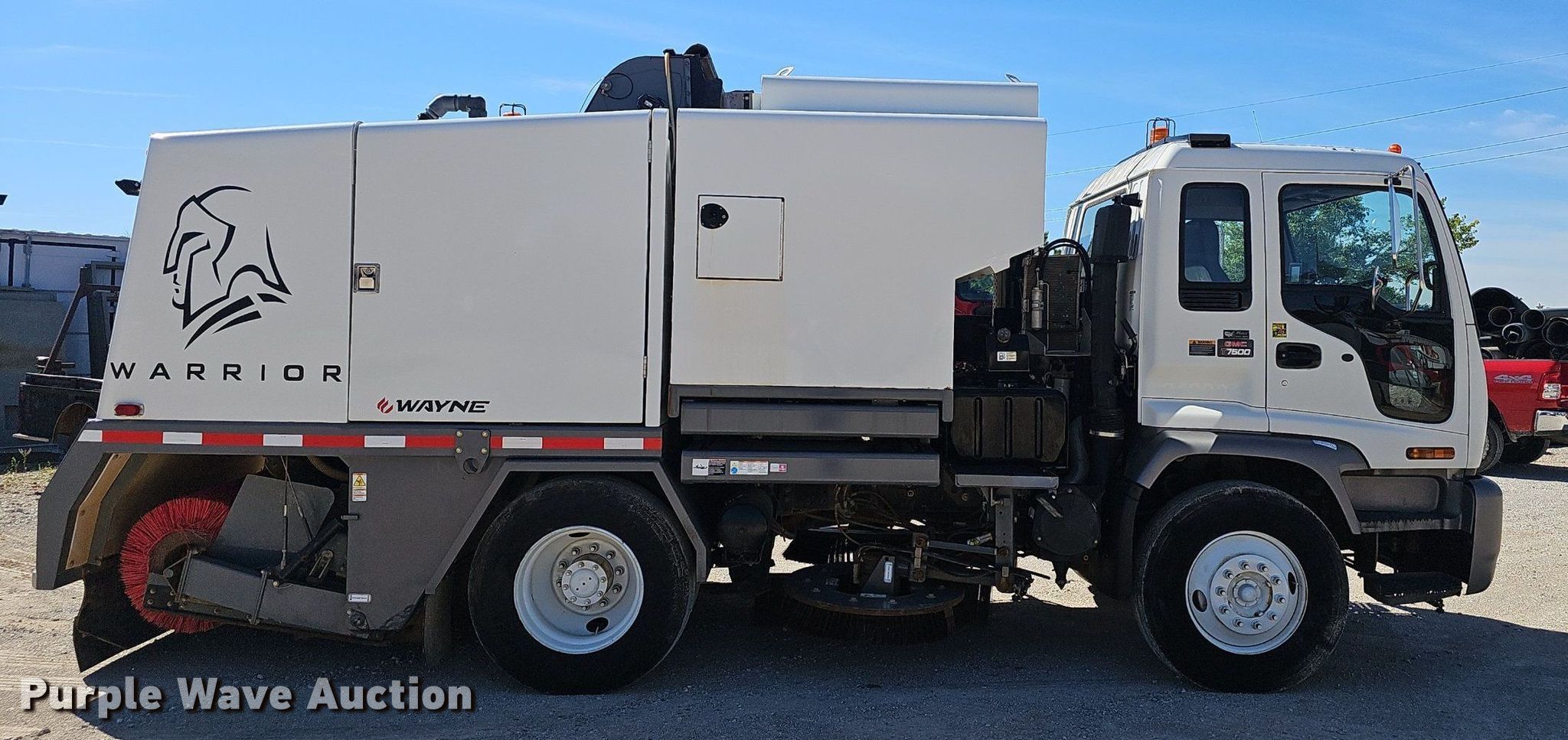 2004 GMC T7500 street sweeper truck. Miles: 35,479 on odometer, VIN: 1GDM7F1354F506155. Engine Cylinders: 6, Fuel type: Diesel. Transmission Automatic. Chassis Suspension: Spring, Brakes: Air, GVWR: 33,000 lbs. Operators station AC, Heat, Dual operating station. Features Broom Width: 66", Water spray system, Sweeper bed Sweeper bed type: Conveyor Wayne Warrior, Serial: 11003, Left gutter broom, Right gutter broom. Tires Size: 11R22.5. Notes When battery dies, sweeper box has to be reprogrammed. Arkansas title. Title distribution may be delayed up to 14 days from verification of funds. Bentonville, AR 72712