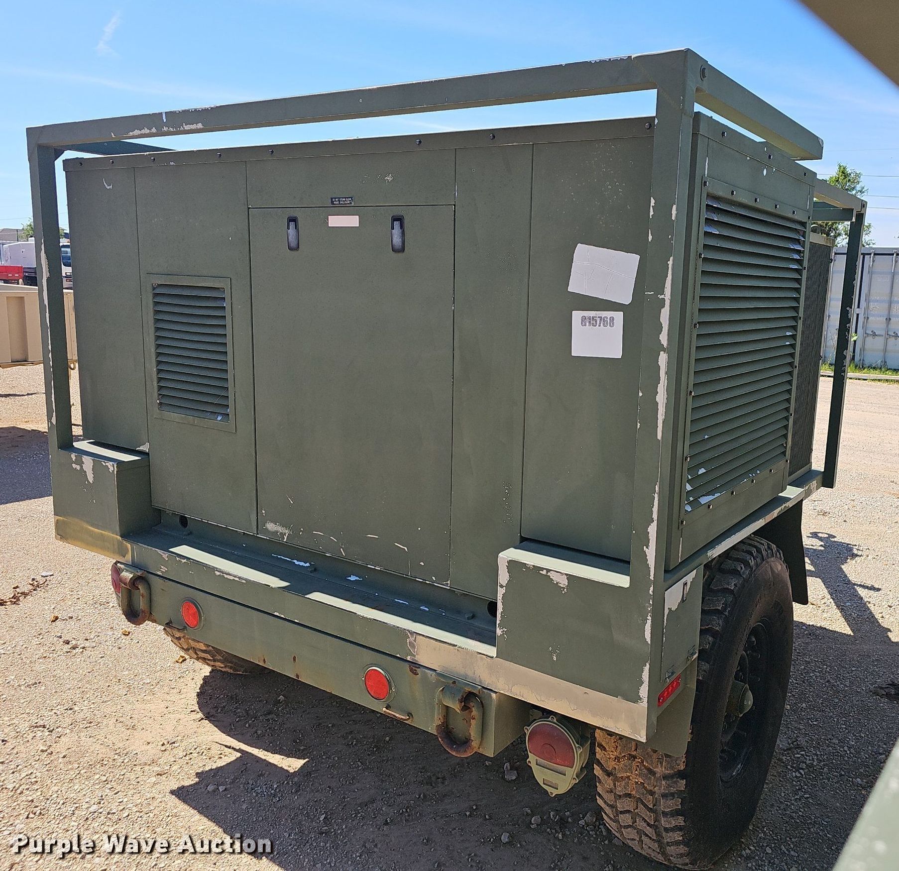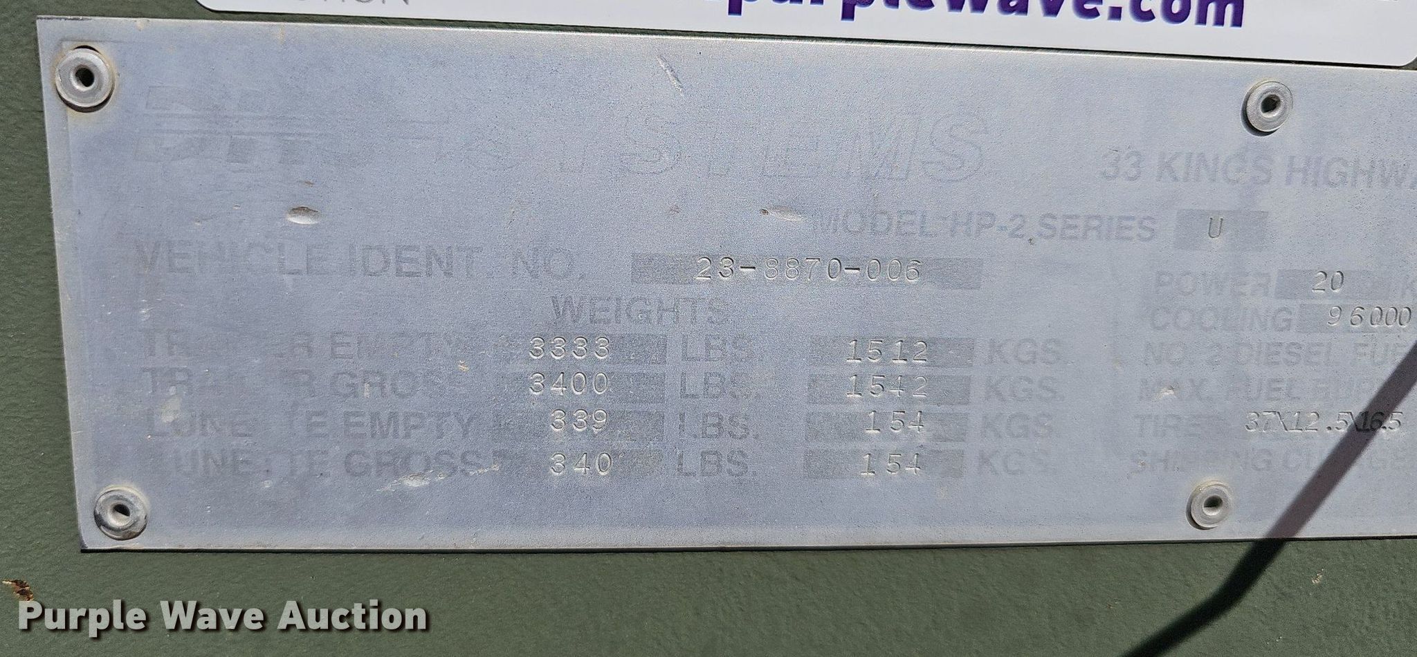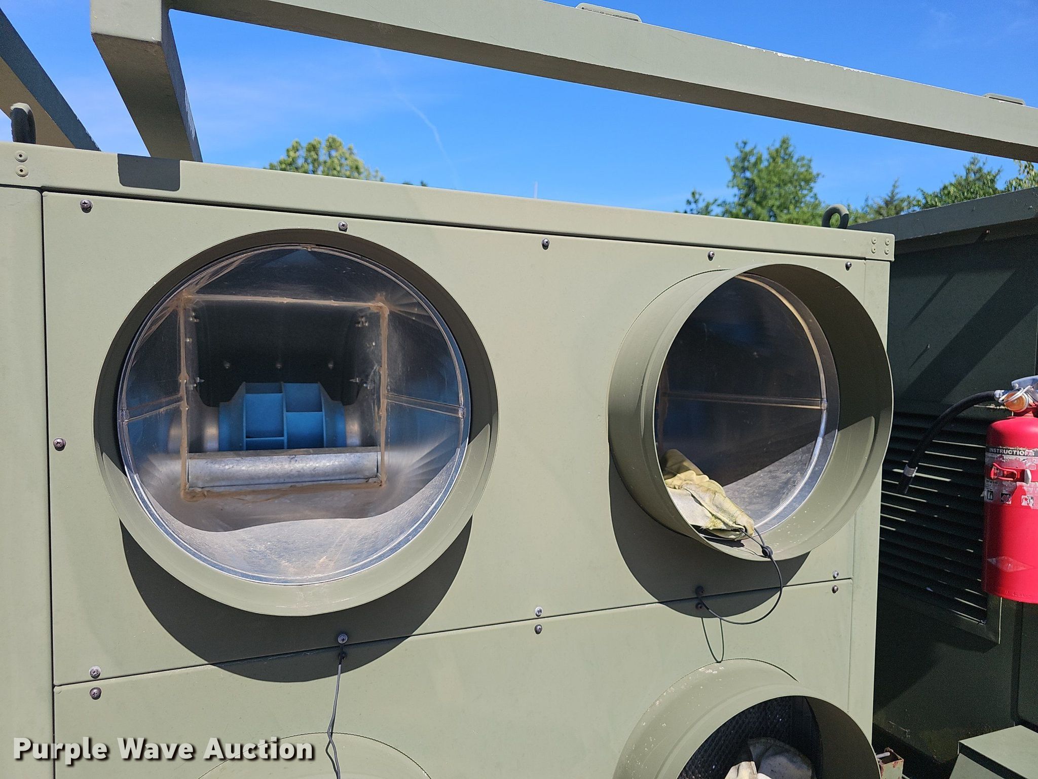 Drash HVAC/generator trailer. Serial: 23-8870-006. Dimensions Overall: 14' L x 85" W, Deck: 8' 6" L x 62" W, Side height: 30". Features Deck type: Aluminum, Generator kW: 20, Volts: 120/208, AC BTU: 96,000, Heater BTU: 45,900, Fuel tank Capacity: 25 gallons, Fuel type: Diesel, Engine Isuzu, Cylinders: 4, Fuel type: Diesel. Chassis Hitch: Pintle, Landing gear: Single. Tires Steel wheels, Size: 37x12.50x16.5. Notes Unknown operating condition. This is worksite support equipment and will not come with a title. Transfer of ownership documentation will be a bill of sale. Bentonville, AR 72712