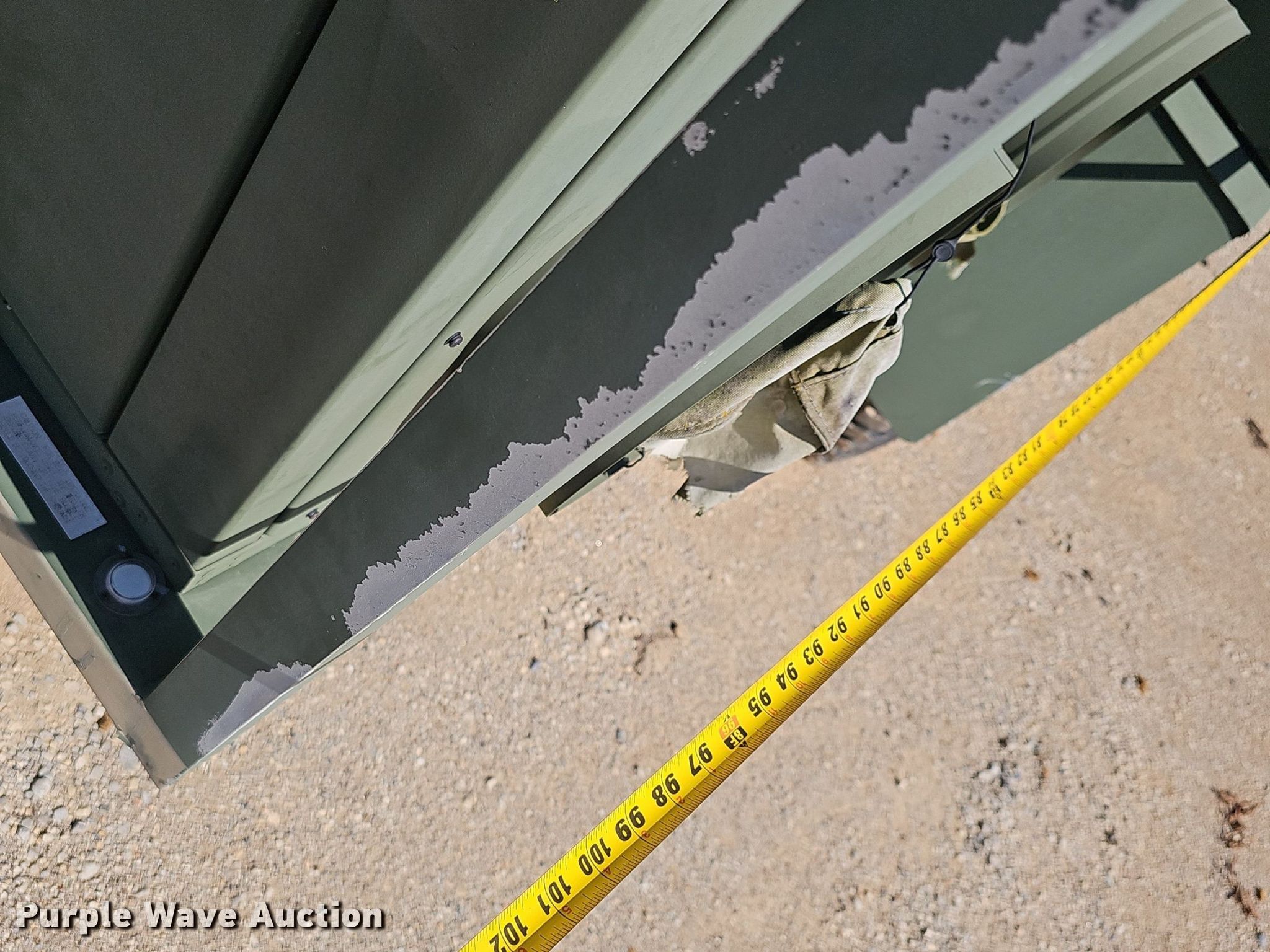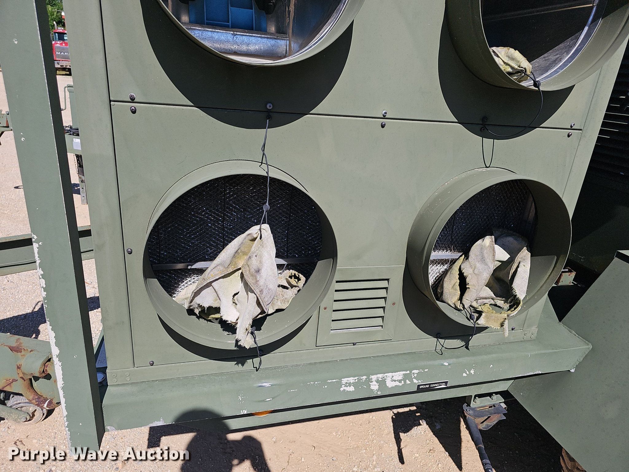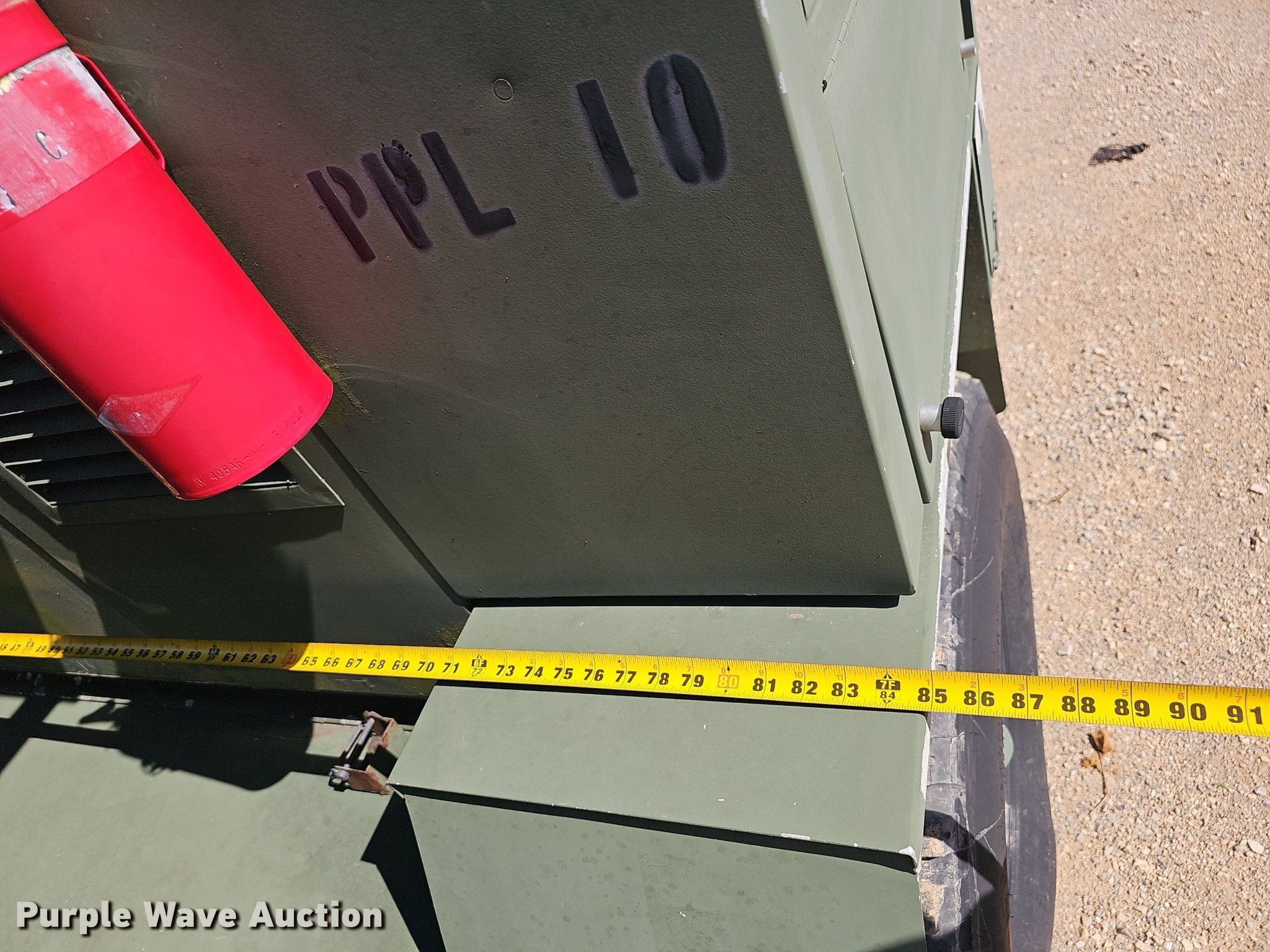 Drash HVAC/generator trailer. Serial: 23-8870-006. Dimensions Overall: 14' L x 85" W, Deck: 8' 6" L x 62" W, Side height: 30". Features Deck type: Aluminum, Generator kW: 20, Volts: 120/208, AC BTU: 96,000, Heater BTU: 45,900, Fuel tank Capacity: 25 gallons, Fuel type: Diesel, Engine Isuzu, Cylinders: 4, Fuel type: Diesel. Chassis Hitch: Pintle, Landing gear: Single. Tires Steel wheels, Size: 37x12.50x16.5. Notes Unknown operating condition. This is worksite support equipment and will not come with a title. Transfer of ownership documentation will be a bill of sale. Bentonville, AR 72712
